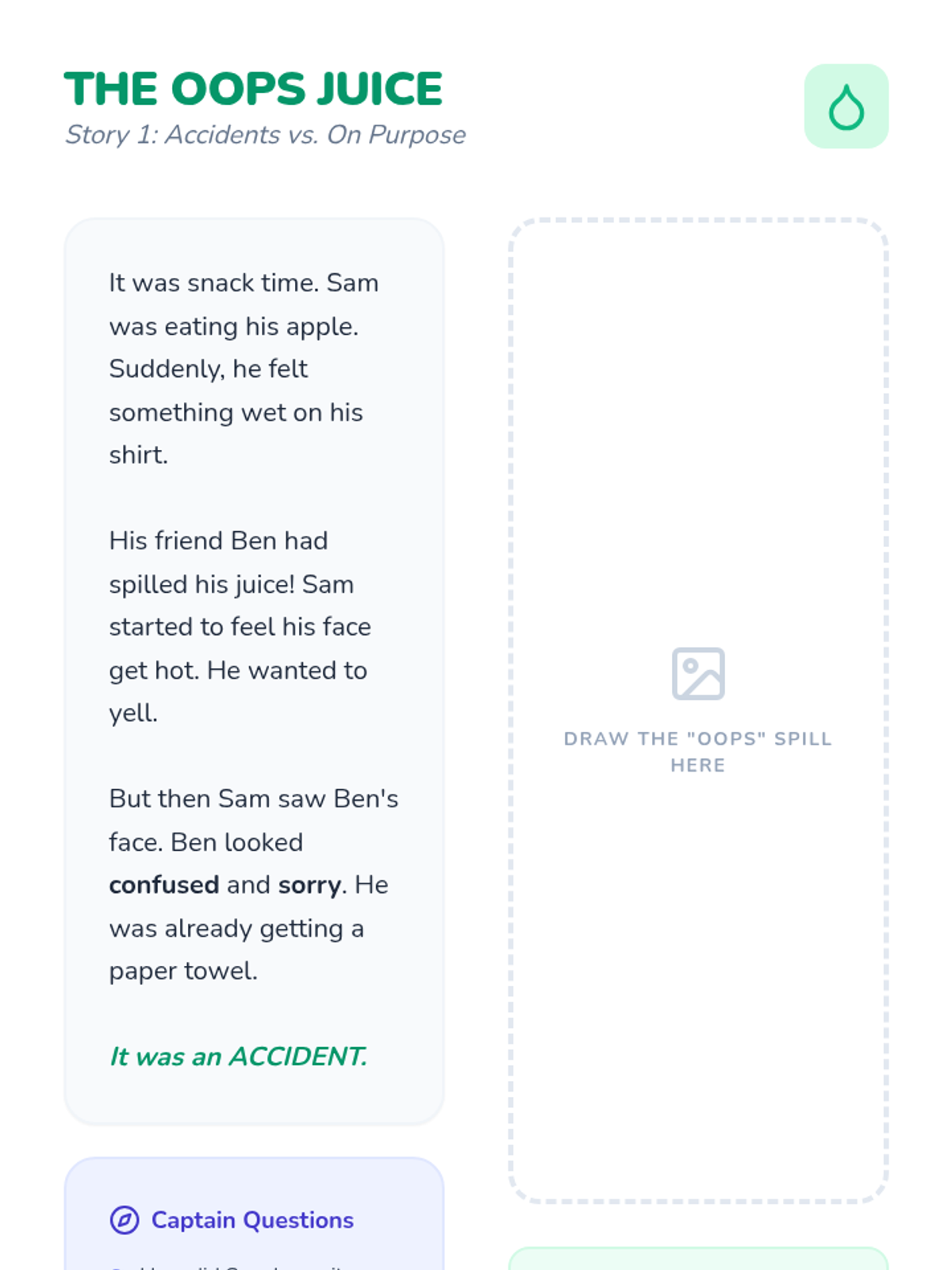 A comprehensive two-week social-emotional intervention designed for a 1st-grade student to improve emotion identification, peer conflict resolution, and coping skill application. The program uses the 'Emotion Explorer' theme to engage the student in identifying feelings in themselves and others while building a toolkit for returning to calm.