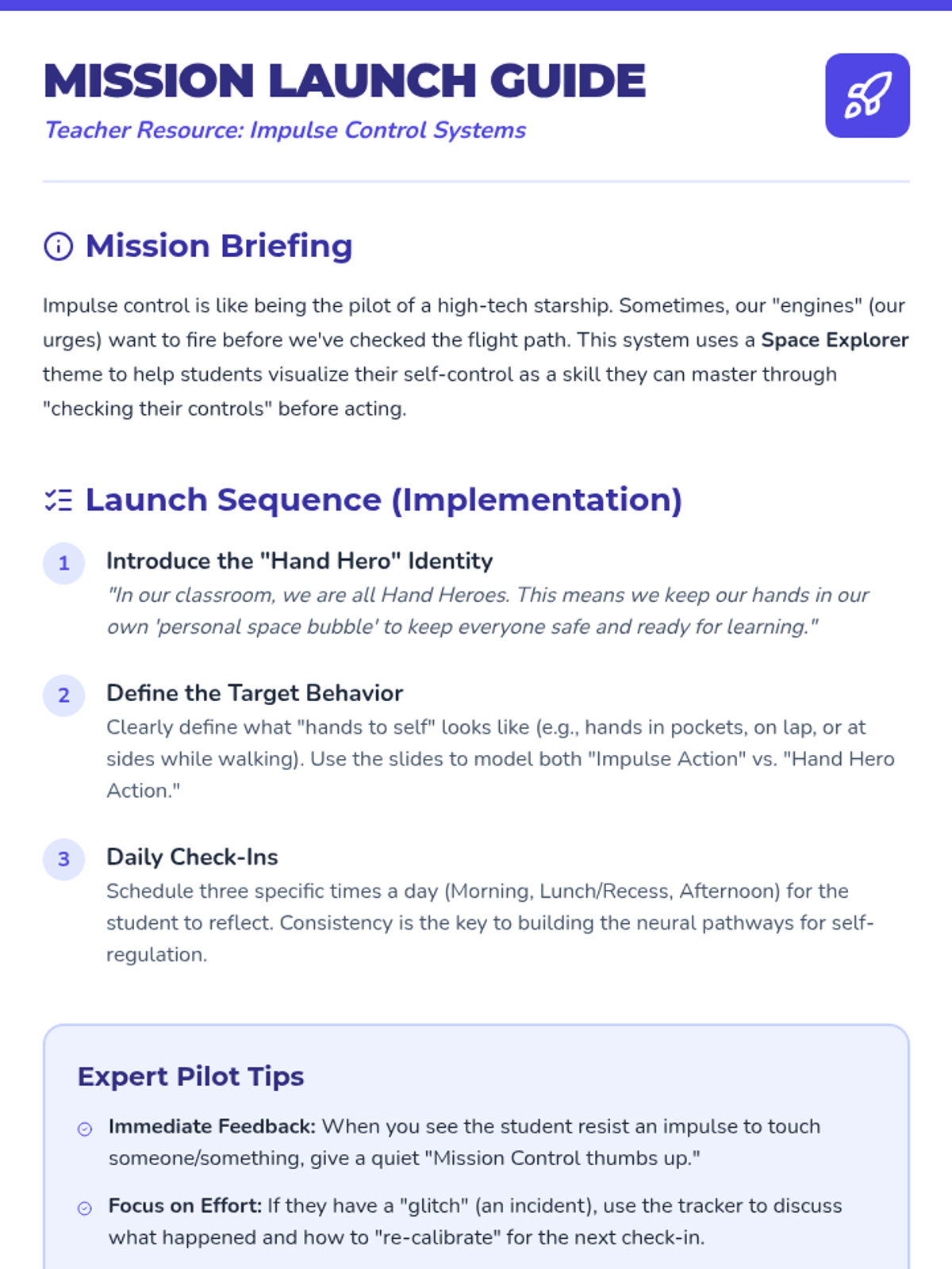 A comprehensive 3-session therapeutic sequence for 3rd grade students struggling with severe emotional dysregulation (DMDD/IED). The sequence focuses on physiological awareness, sensory-based coping strategies, and creating non-verbal safety plans for high-intensity moments.