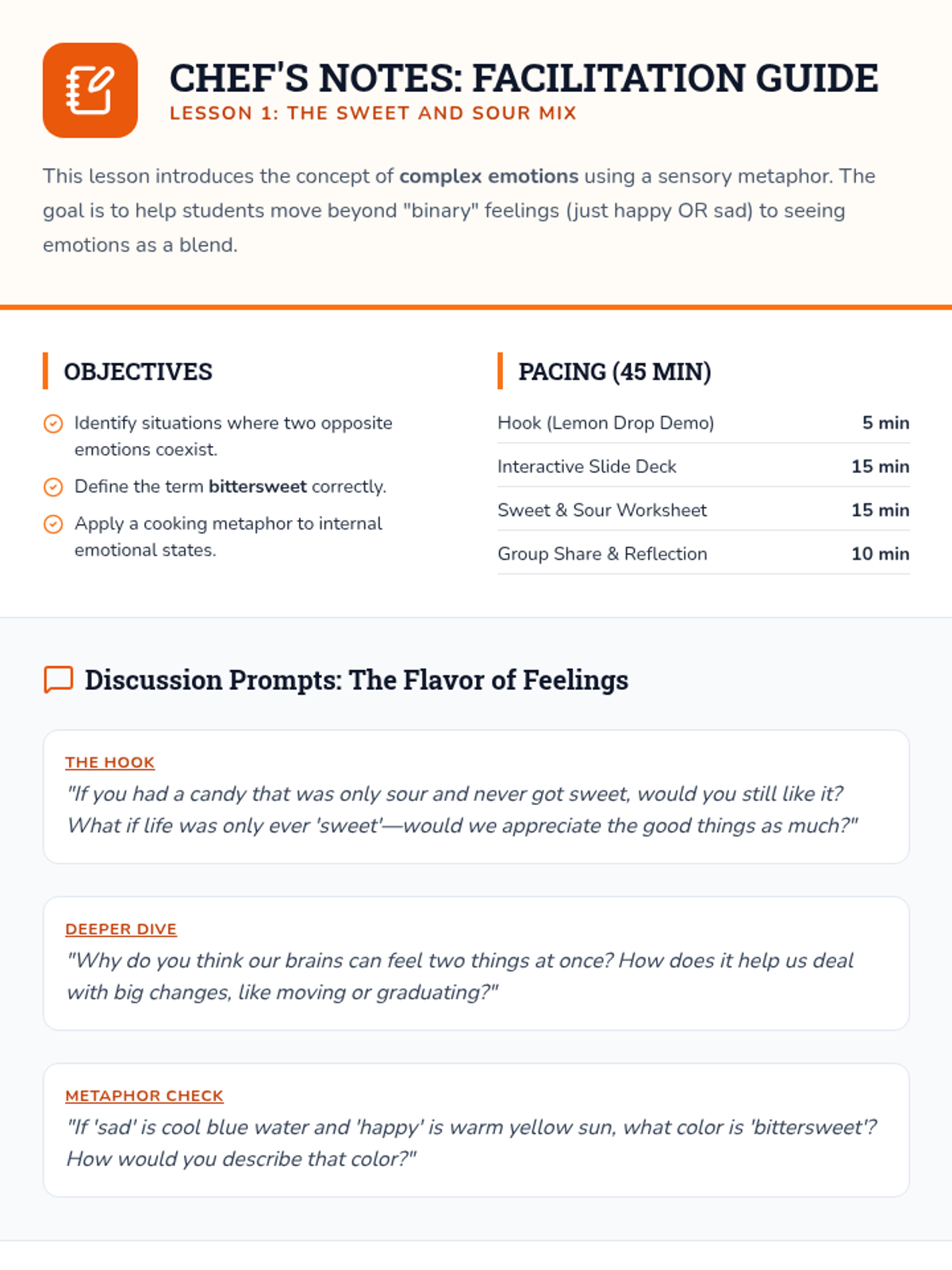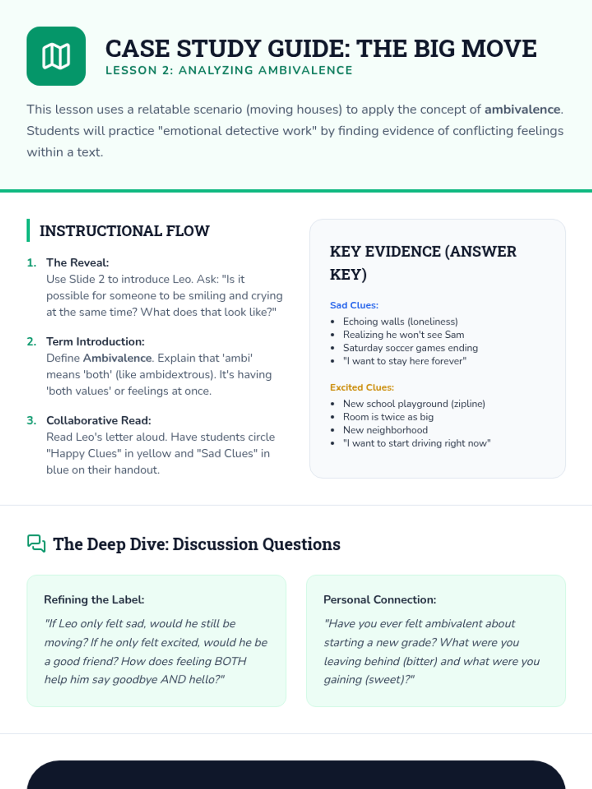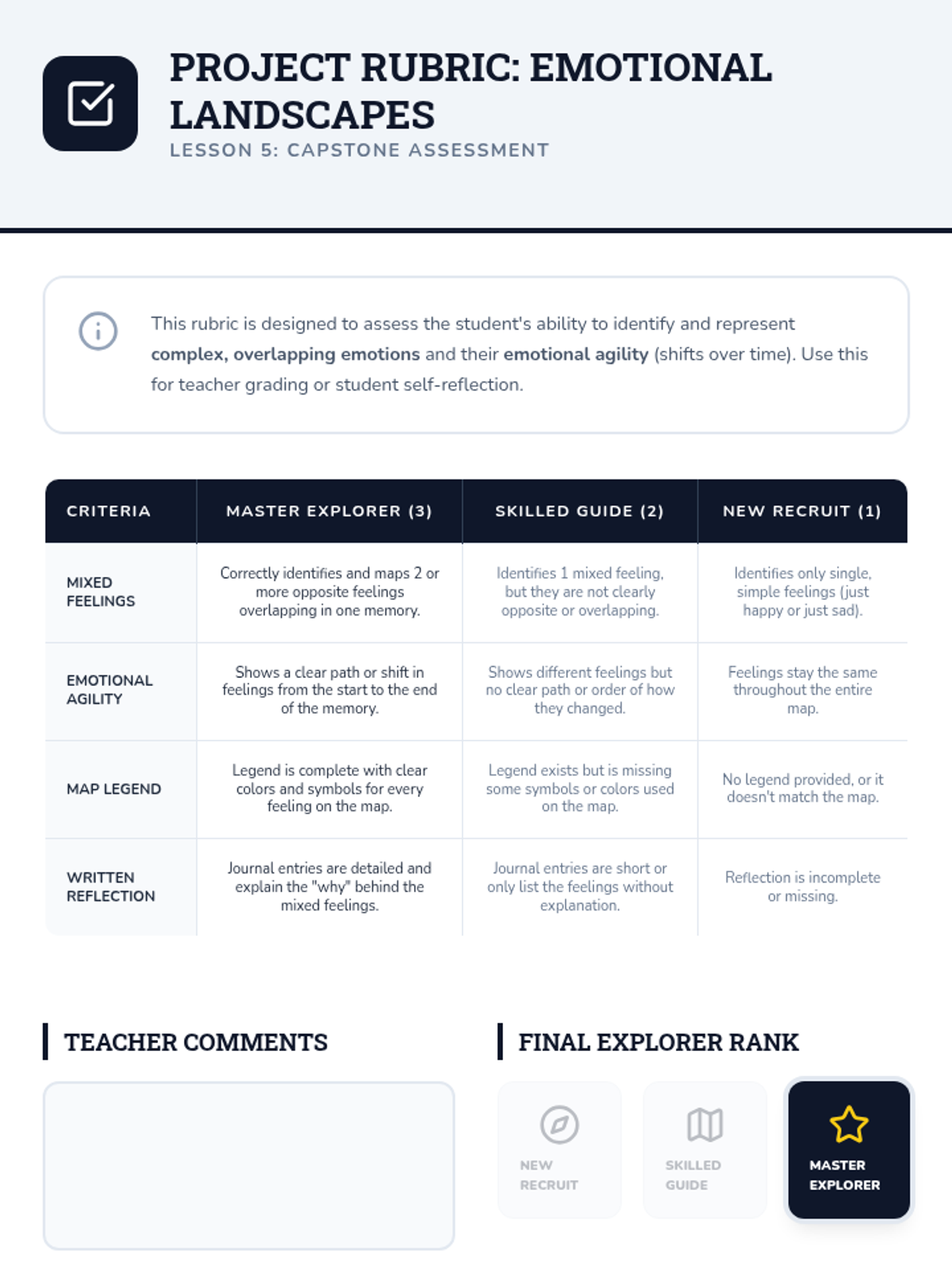 This sequence introduces 3rd-grade students to the concept of complex, mixed, and rapidly shifting emotions. Through the metaphor of an 'Emotional Explorer,' students learn to identify, label, and map experiences where they feel multiple things at once, such as 'bittersweet' or 'nervous-excited.'