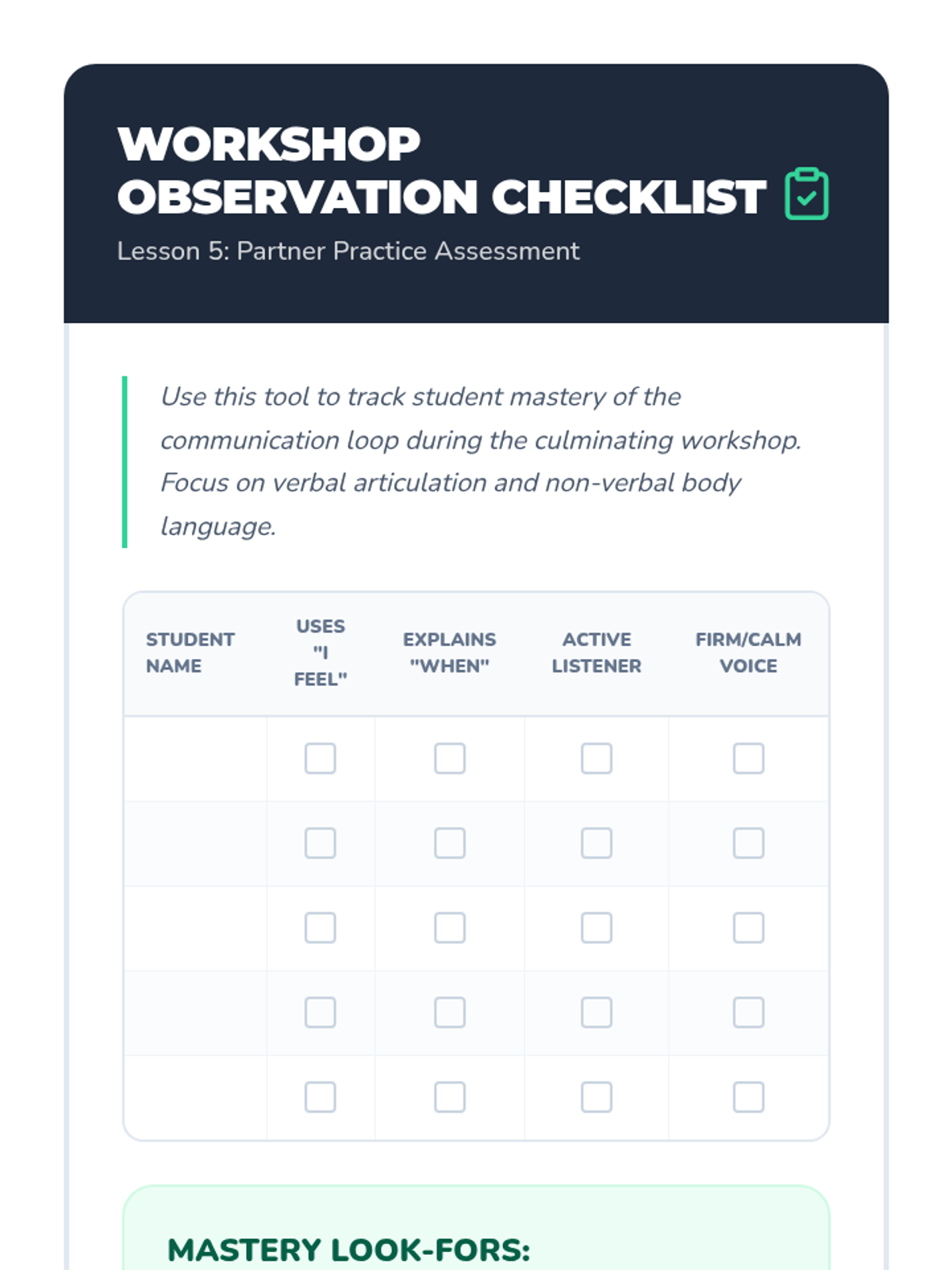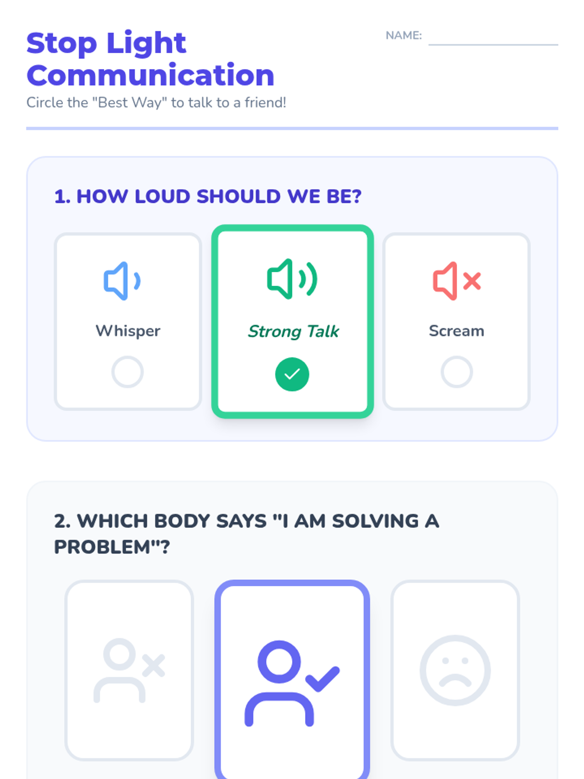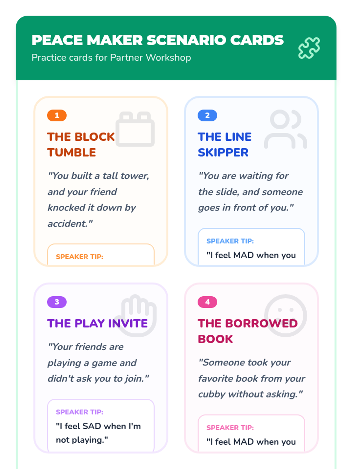 A Kindergarten sequence focused on building emotional literacy and verbal communication skills. Students learn to identify emotions, use I-Statements, regulate tone and body language, and practice active listening to resolve conflicts peacefully.