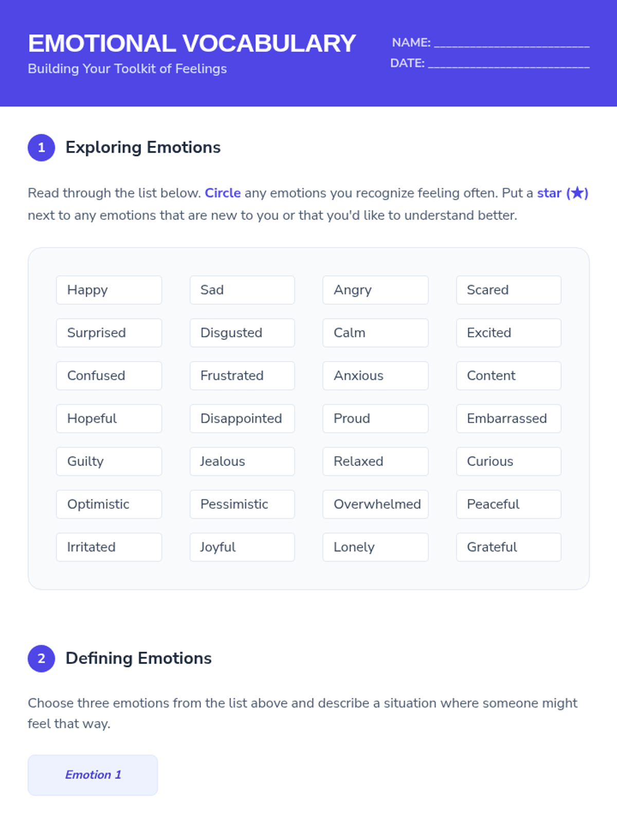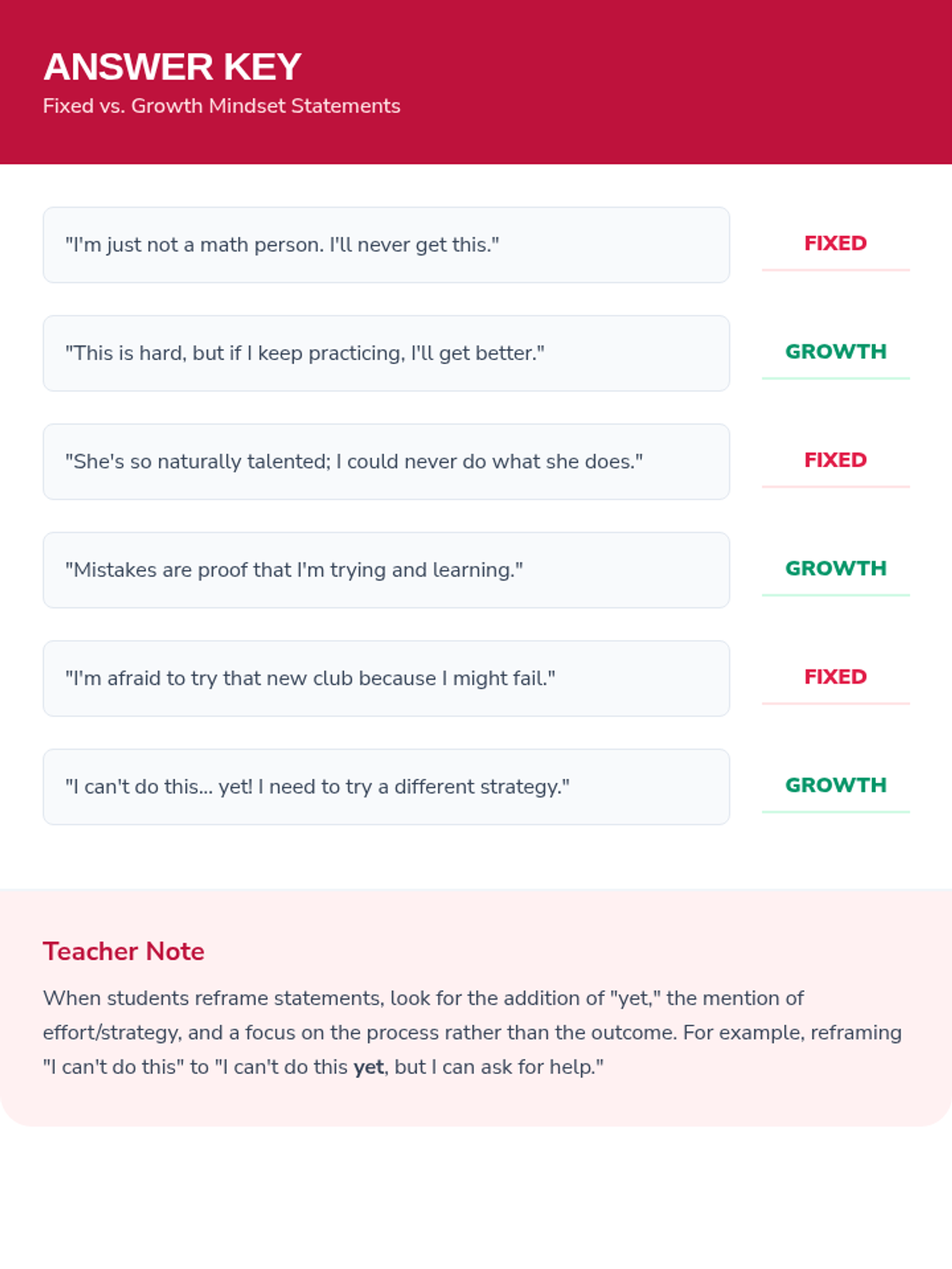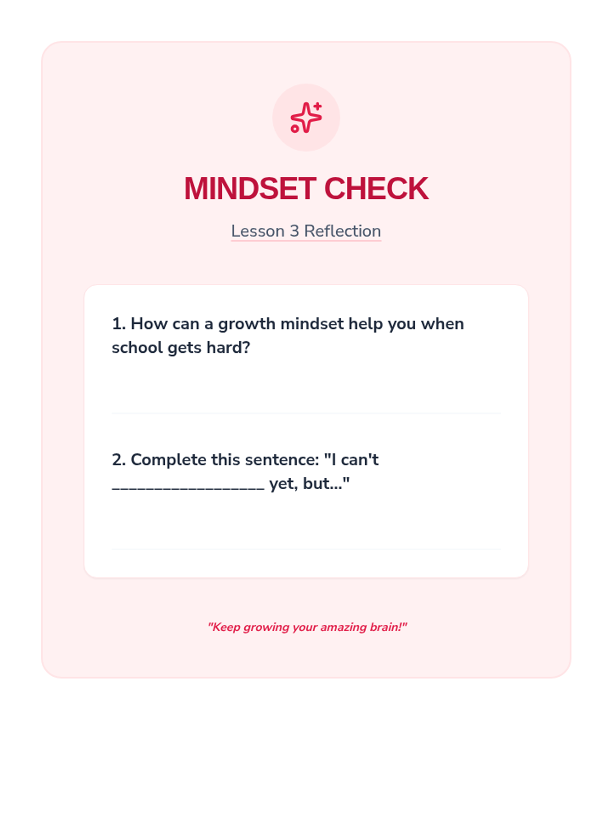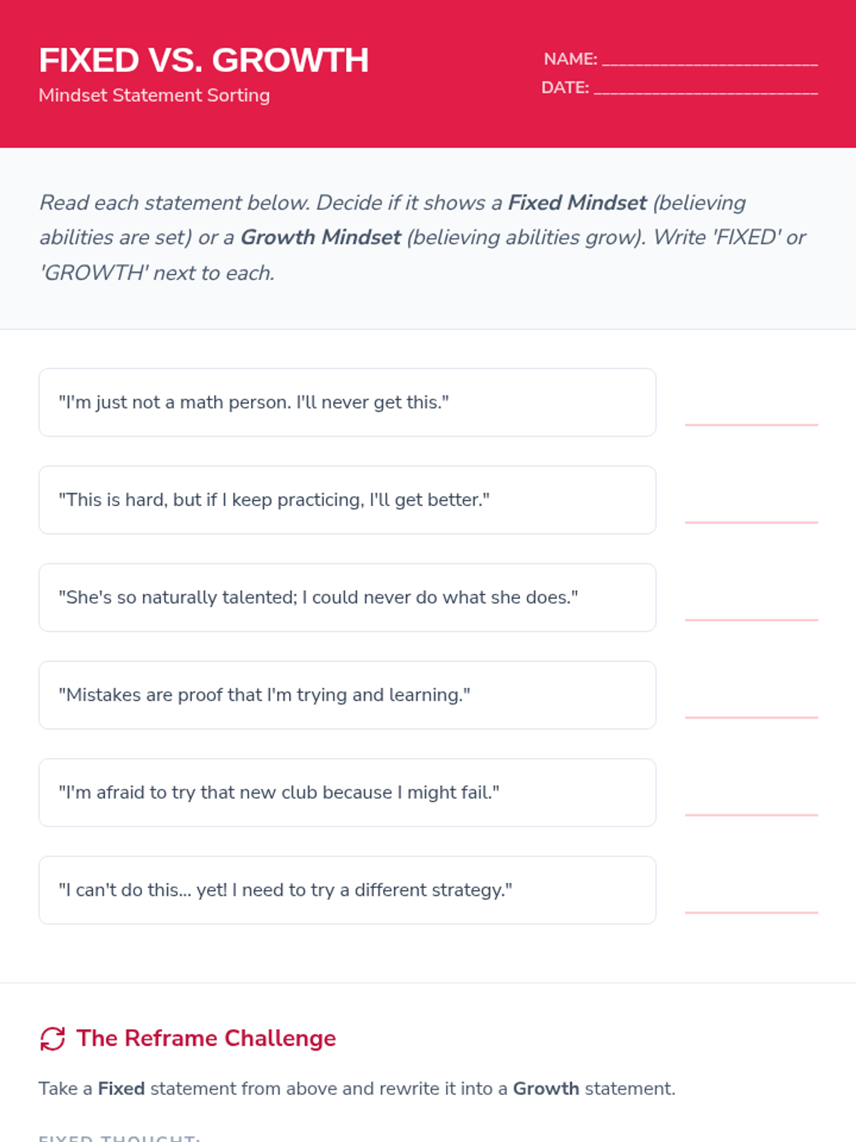 A three-part sequence designed for middle school students to develop foundational social-emotional skills, including emotional identification, stress management, and cultivating a growth mindset.