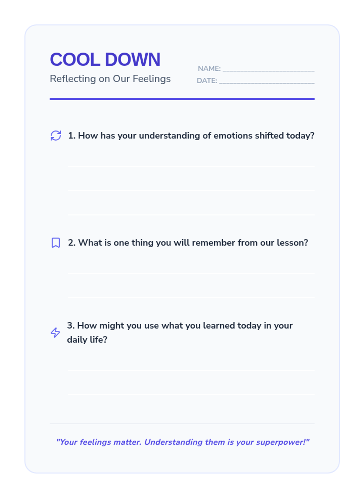 A series of three interactive counseling sessions for middle and high school students, focusing on self-discovery, emotional regulation, and future planning. Using a 'Blueprint' aesthetic, students engage in hands-on activities to map out their internal identities, manage external stressors, and construct actionable goals.