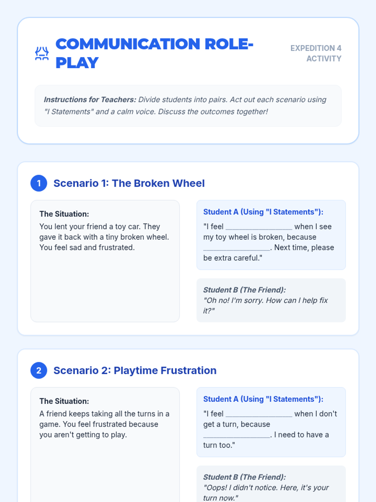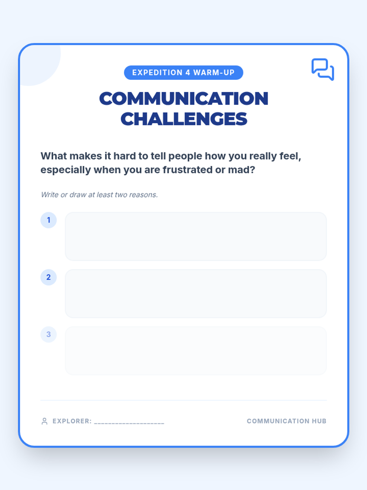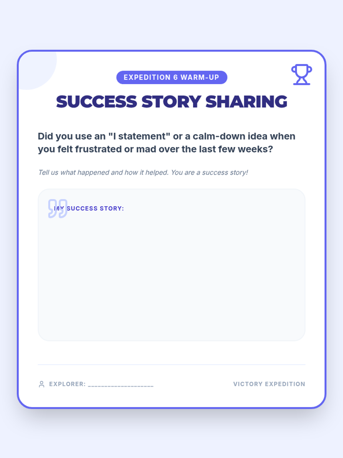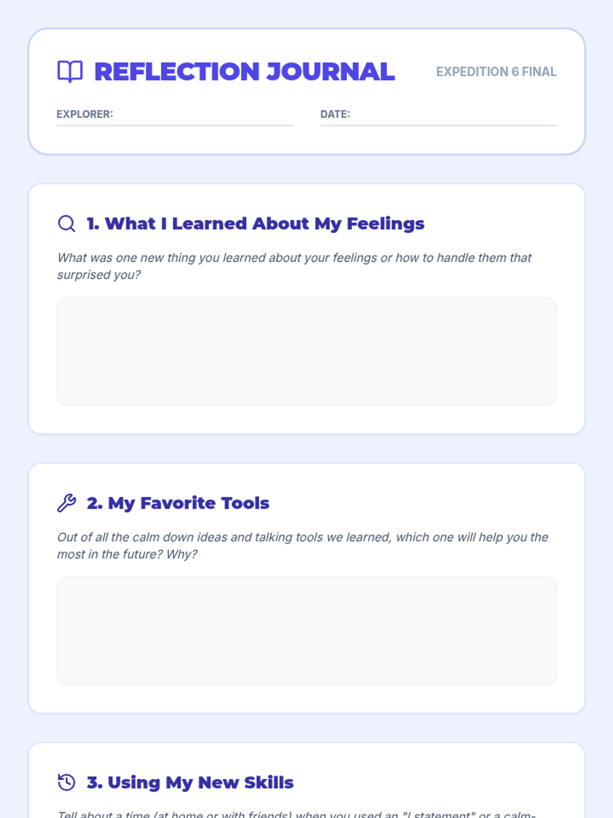 A 6-week social-emotional learning program designed to help students identify emotions, develop regulation skills for frustration and anger, and improve verbal communication through an 'explorer' theme.