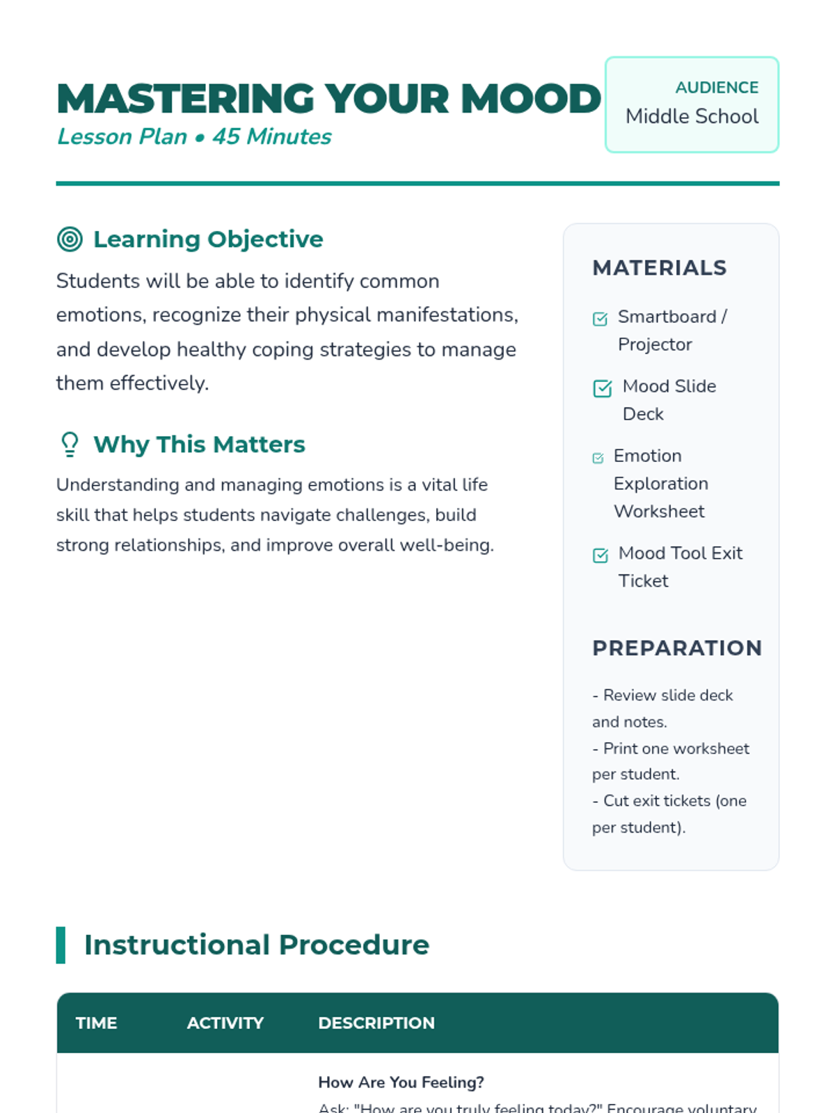 A comprehensive two-part series for middle school students to develop emotional literacy and empathy. Students learn to identify and manage their own emotions before exploring how to understand and support the feelings of others.