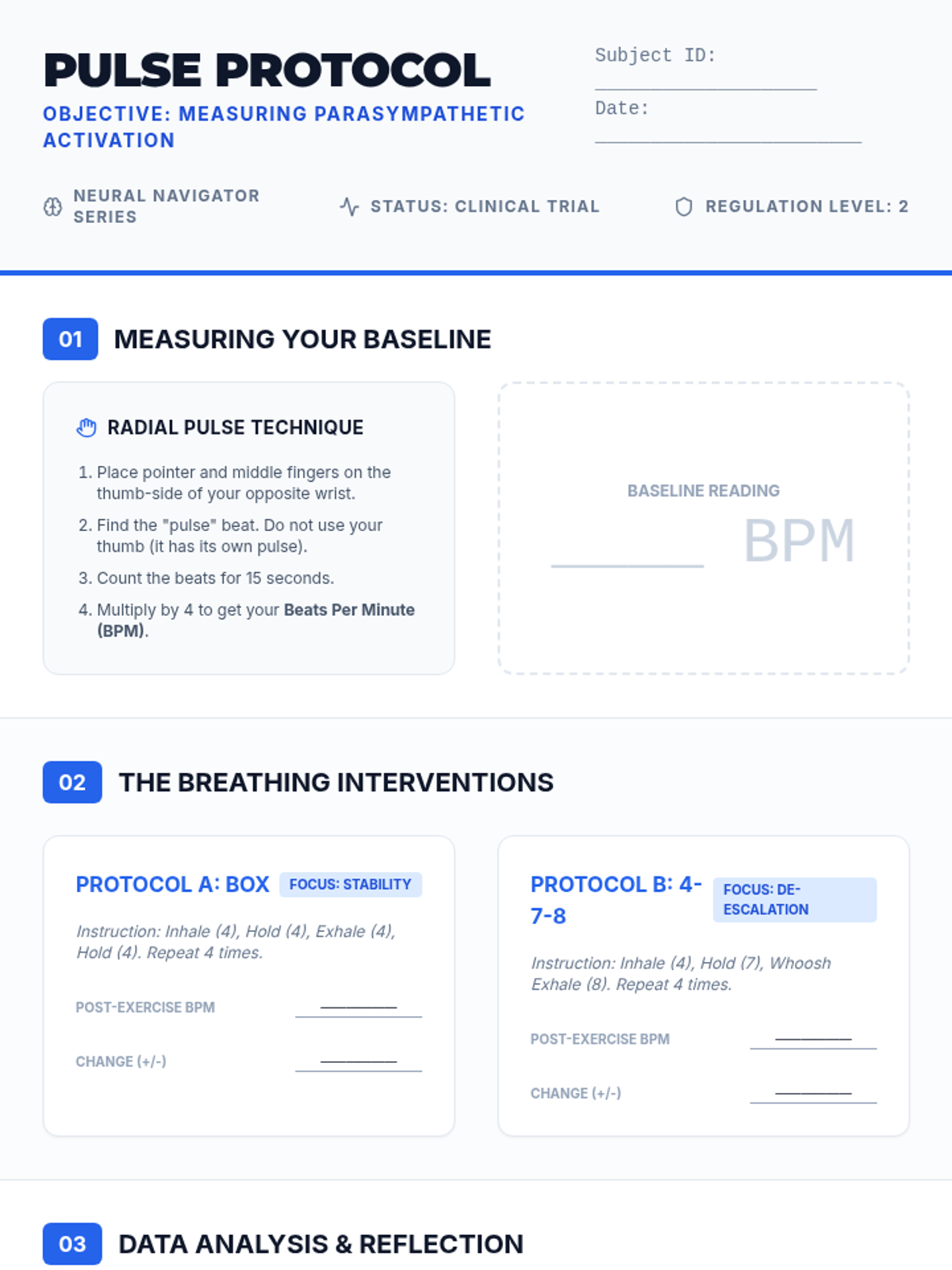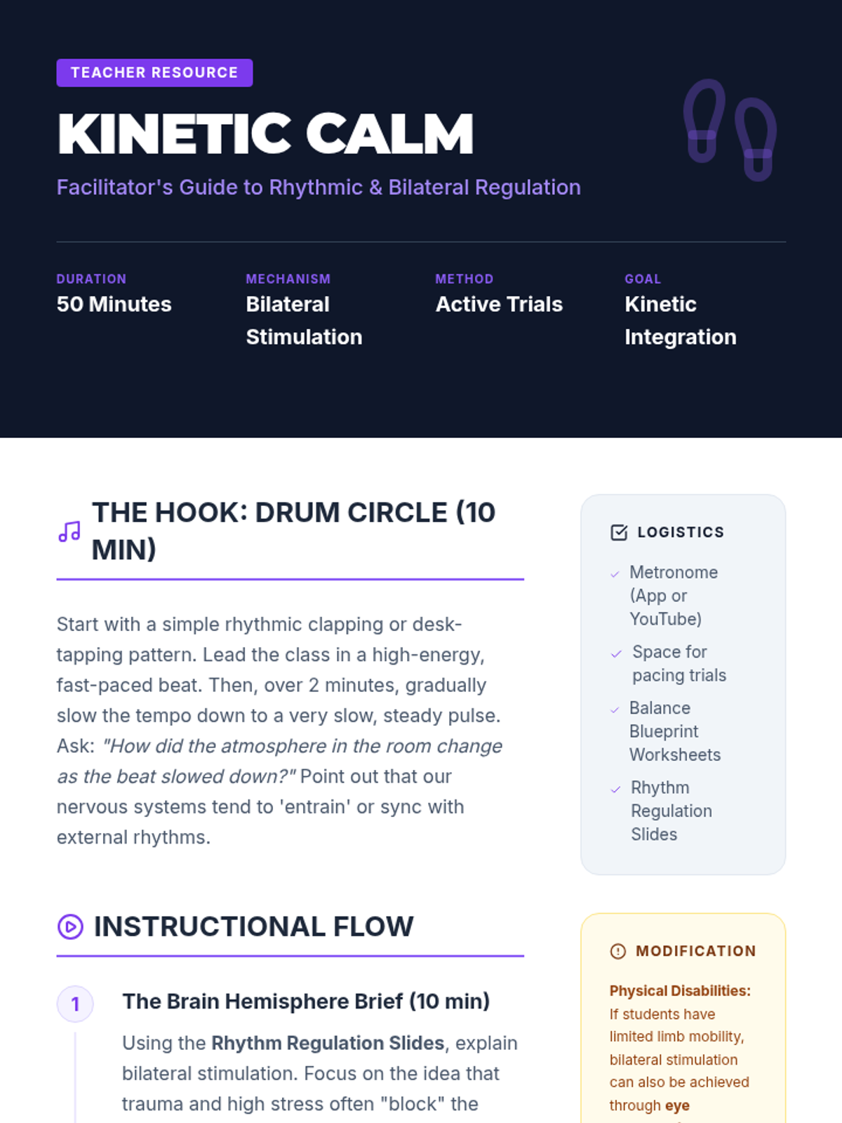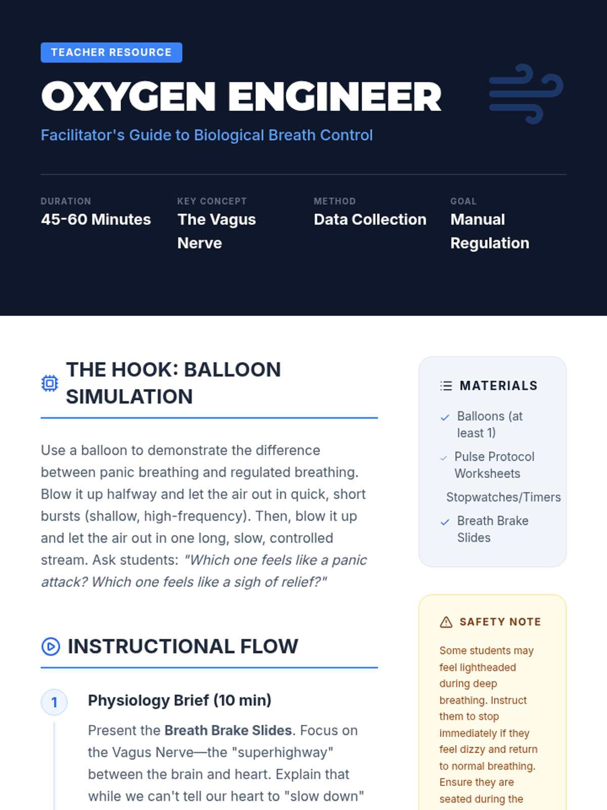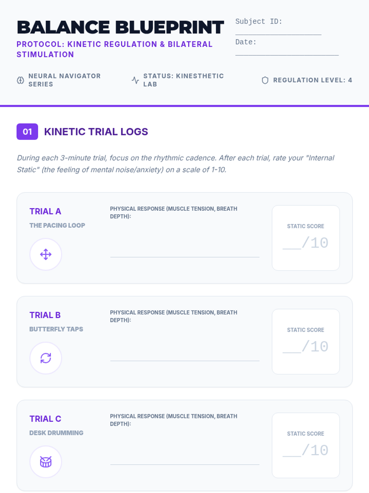 This sequence introduces 9th-grade students to clinical-style emotional regulation and stabilization techniques. Students move from physiological 'bottom-up' approaches (grounding, breathing, movement) to cognitive 'top-down' strategies (reframing), culminating in the creation of a personalized coping toolkit.
