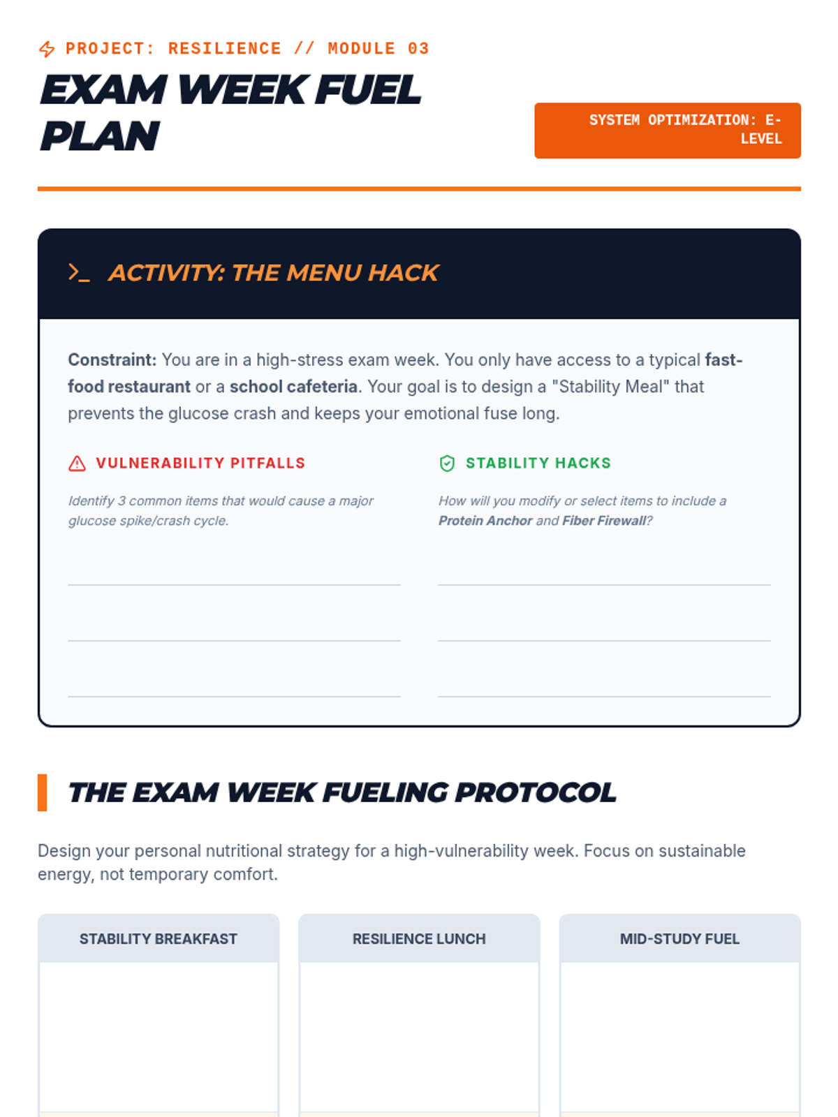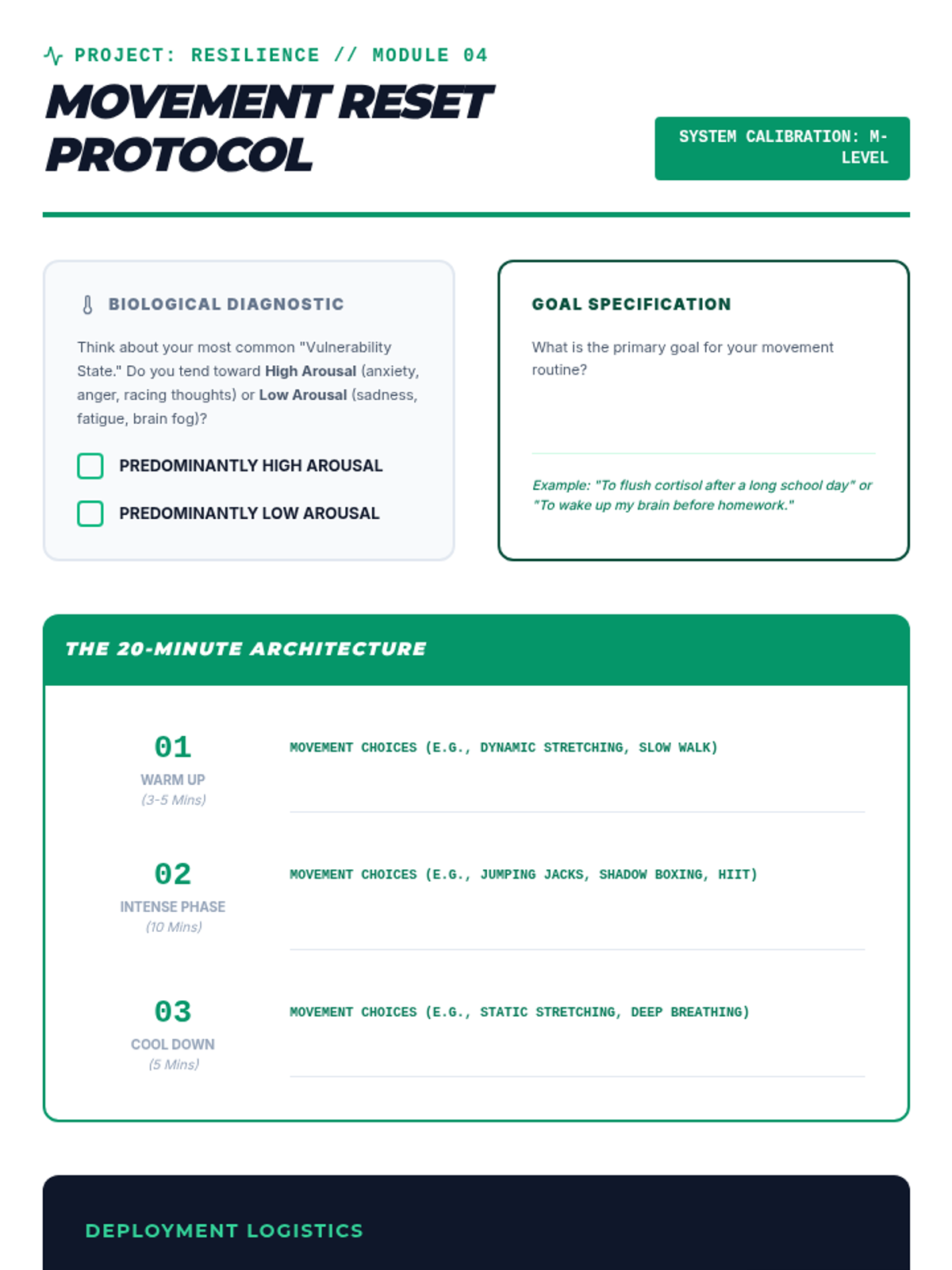 A project-based sequence where 9th-grade students act as 'Lifestyle Architects' to design personalized protocols for reducing emotional vulnerability using the PLEASE acronym. Students audit their habits, research evidence-based strategies, and create a sustainable plan for emotional resilience.