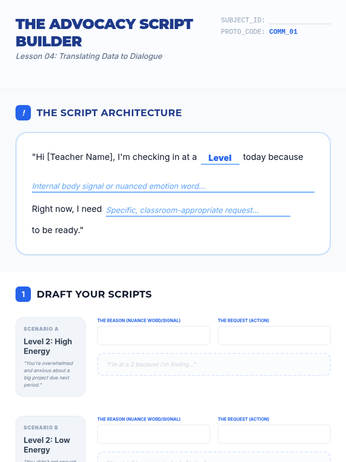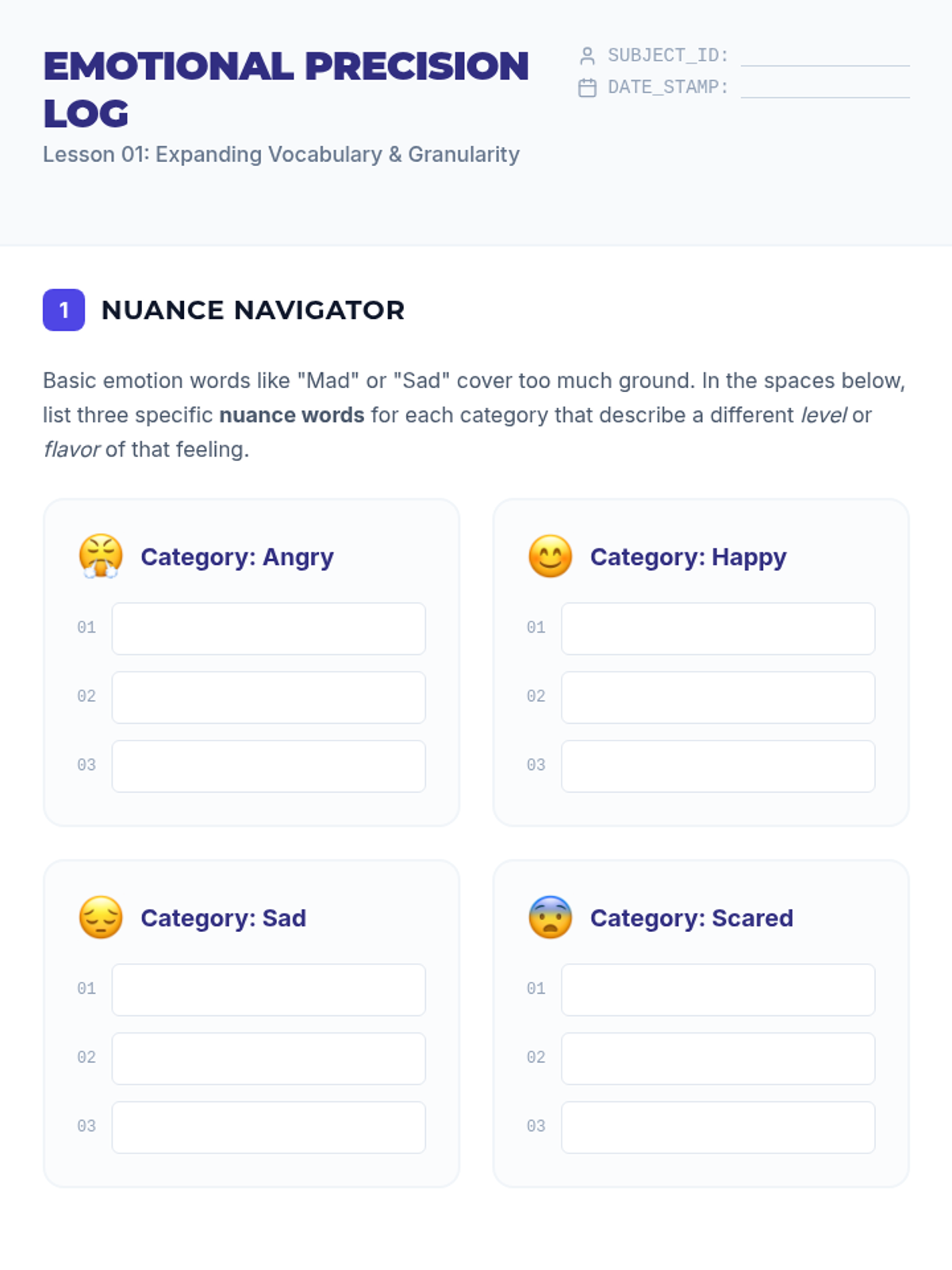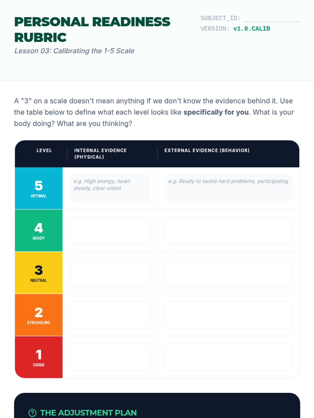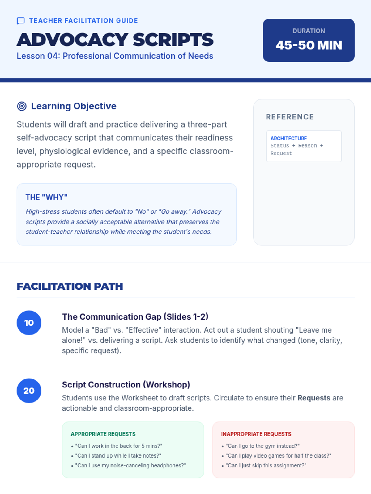 A 5-lesson sequence designed to help 9th-grade students develop emotional granularity, recognize physiological stress cues, and establish a reliable daily check-in routine for behavioral and academic success.