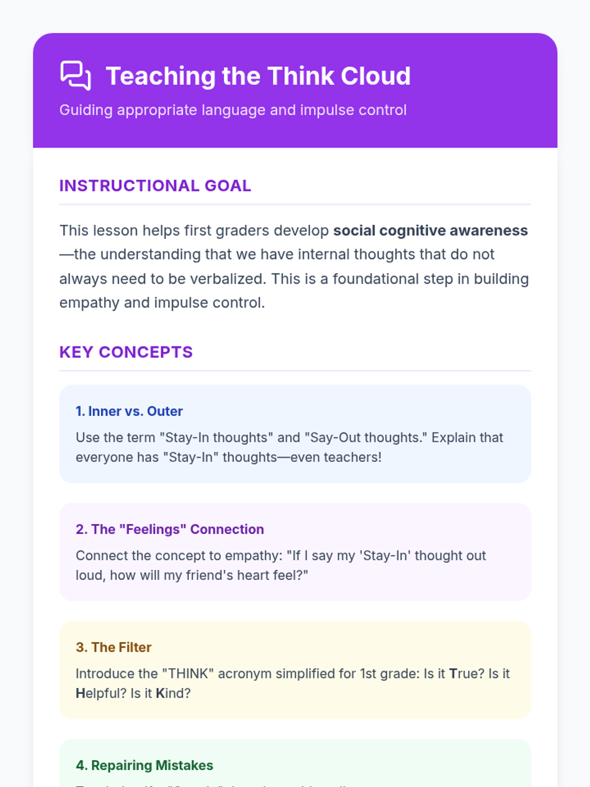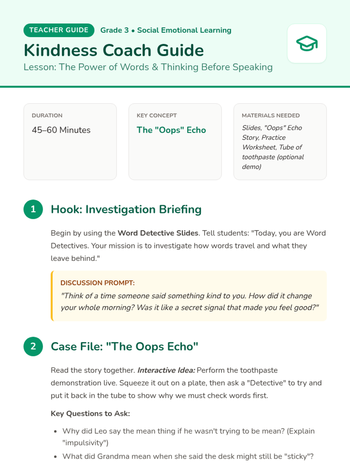 A social-emotional learning sequence focused on helping 3rd grade students understand the impact of their words and develop the habit of thinking before they speak.