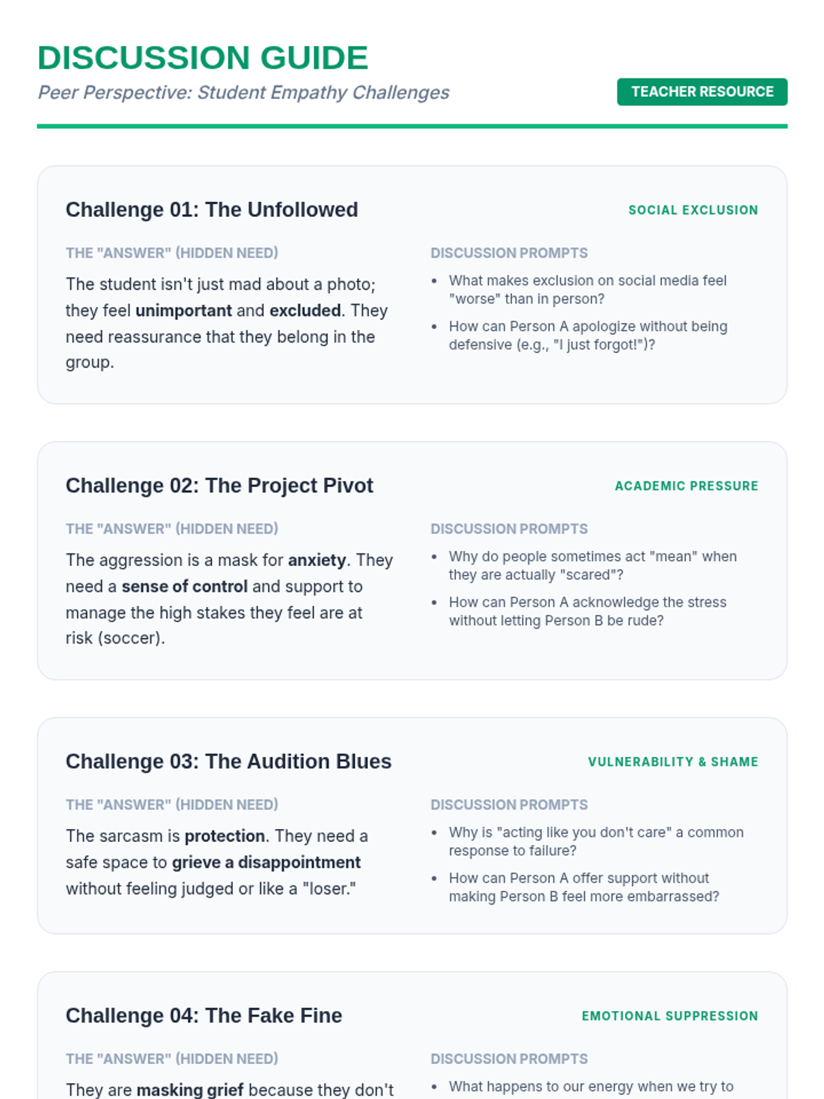 A comprehensive suite of empathy resources for an entire school community, including professional development for staff and instructional materials for students.