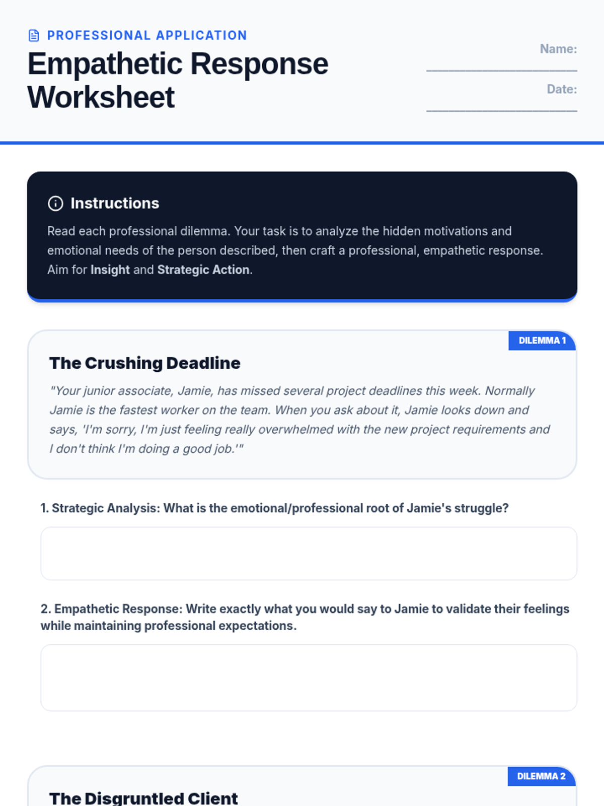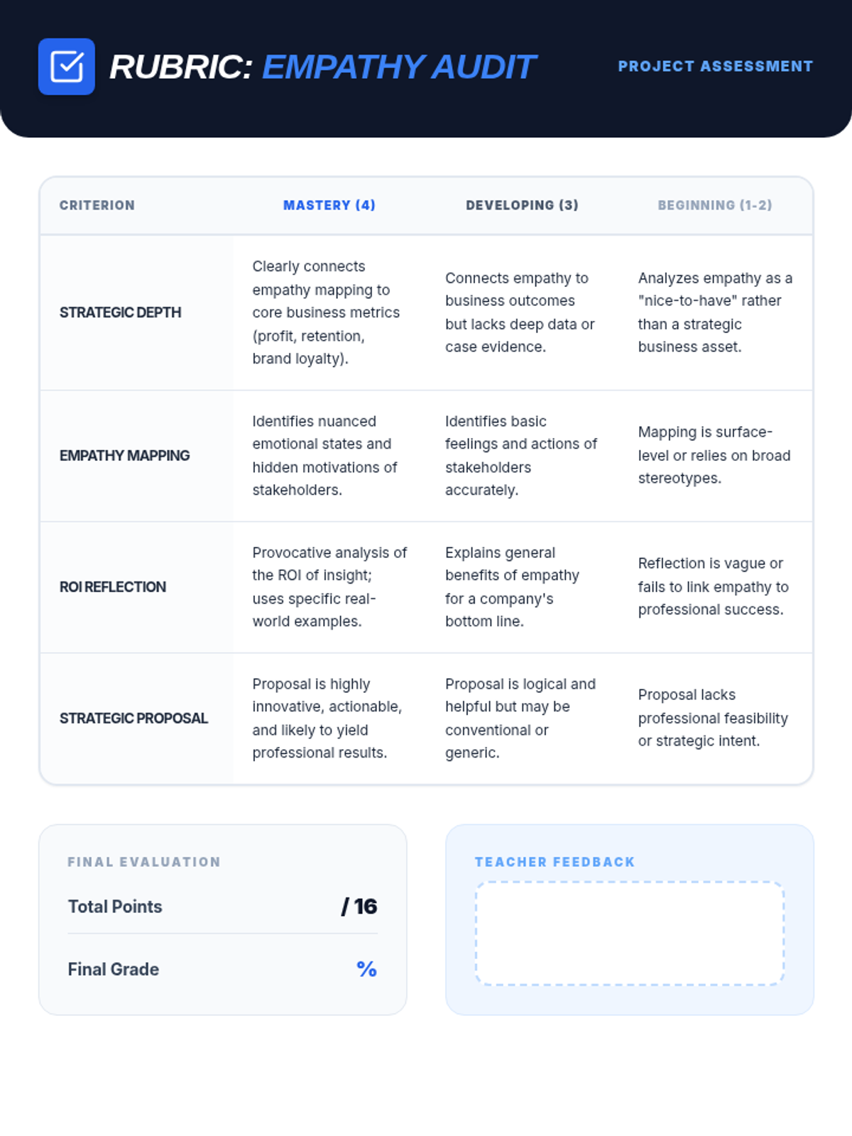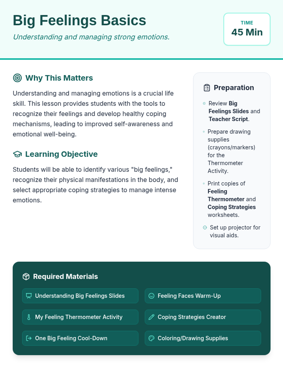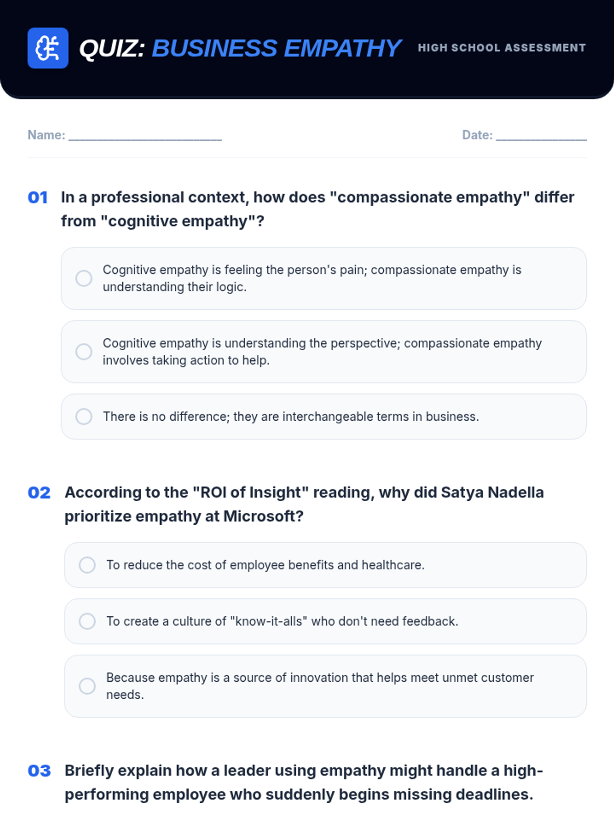 A comprehensive multi-level curriculum designed to build empathy skills from elementary to high school. Students learn to identify personal emotions, take perspectives in social situations, and apply empathetic communication as a professional superpower in business contexts.