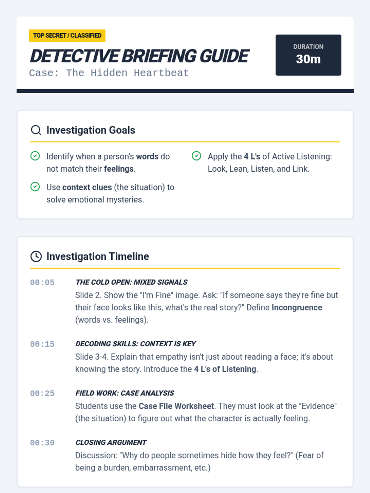 A social-emotional learning unit for 5th grade students that builds foundational empathy skills, from basic perspective-taking to advanced decoding of social context and active listening.