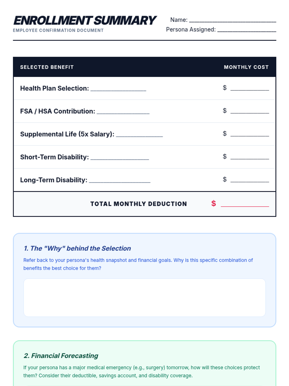 A comprehensive unit for seniors to navigate the complexities of employer-sponsored health and insurance benefits, moving from basic vocabulary to full-scale benefit selection simulations.
