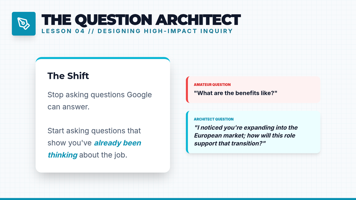 A comprehensive sequence designed to transform 9th-grade students from passive applicants into strategic partners by mastering employer research, job description analysis, and high-impact questioning techniques.