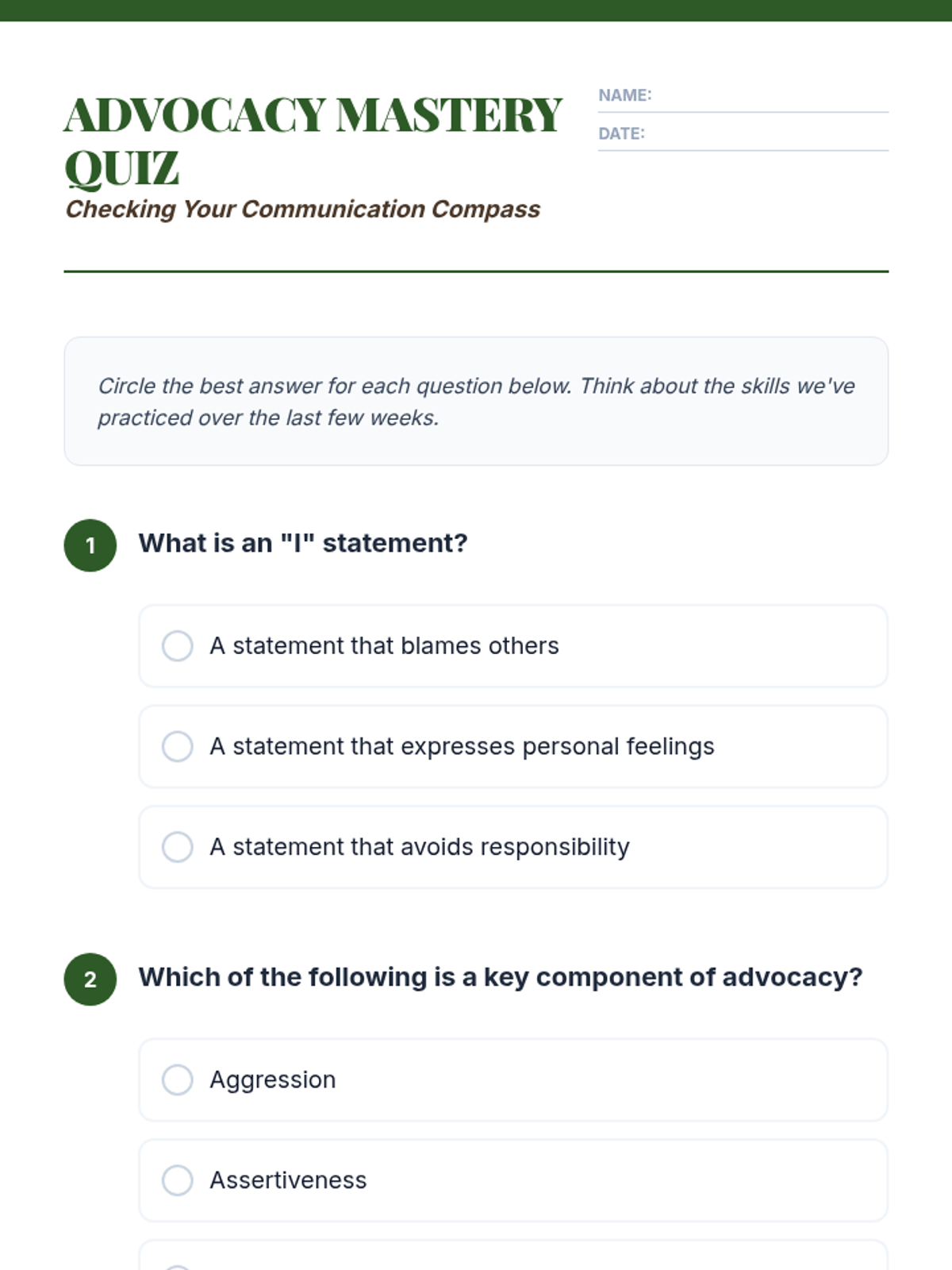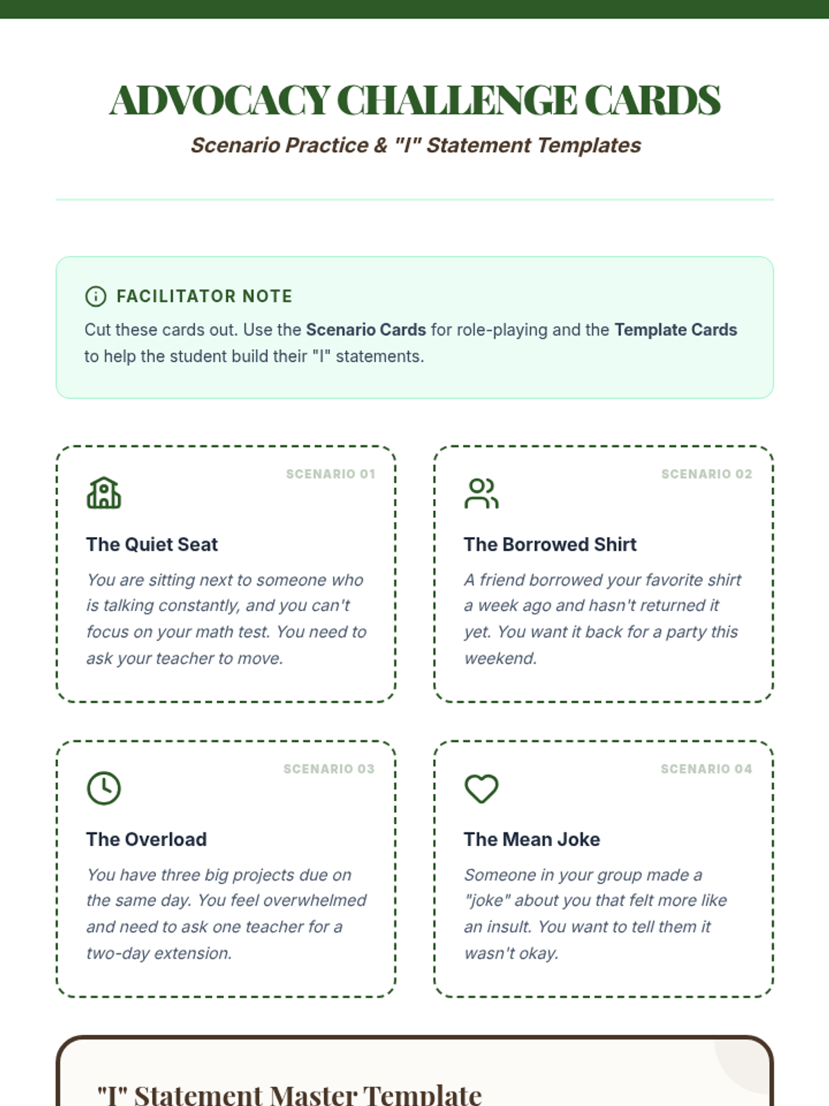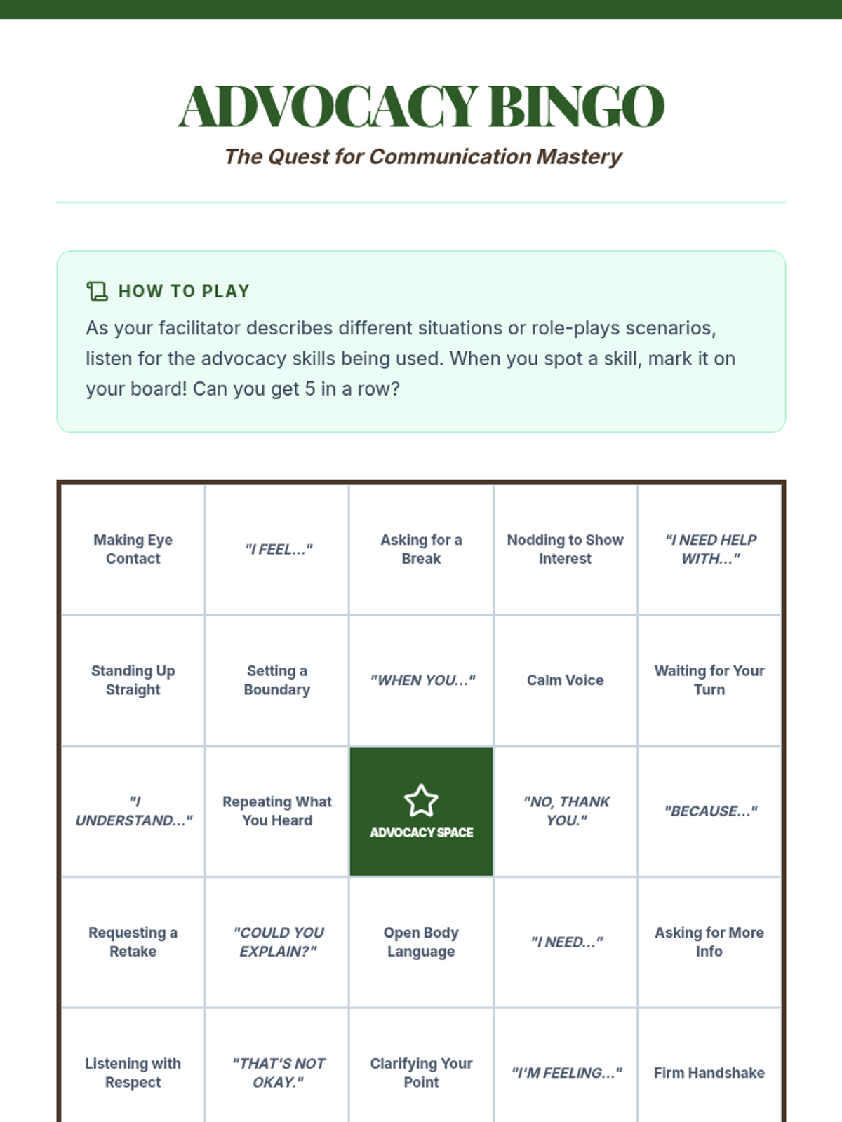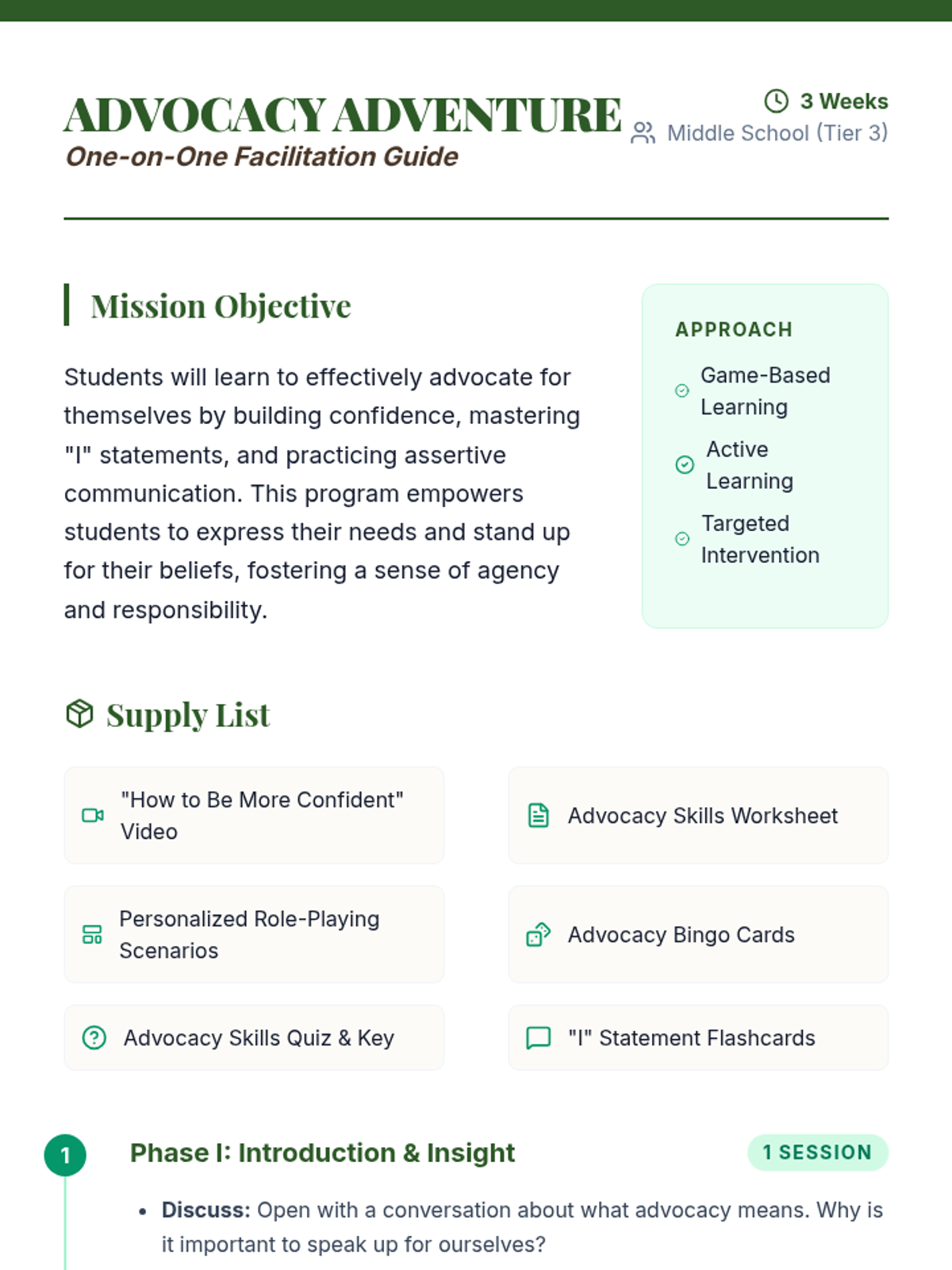 A targeted intervention sequence designed to empower students with the communication tools and self-assurance needed to advocate for their needs in school and life.