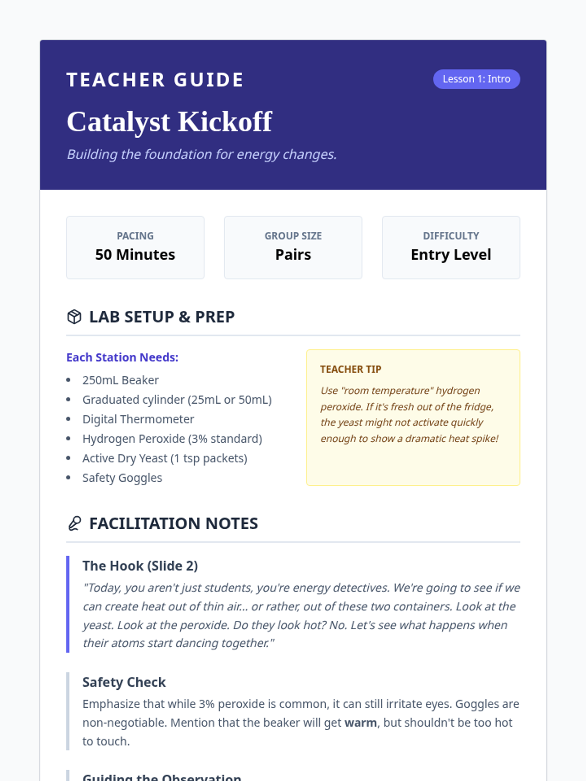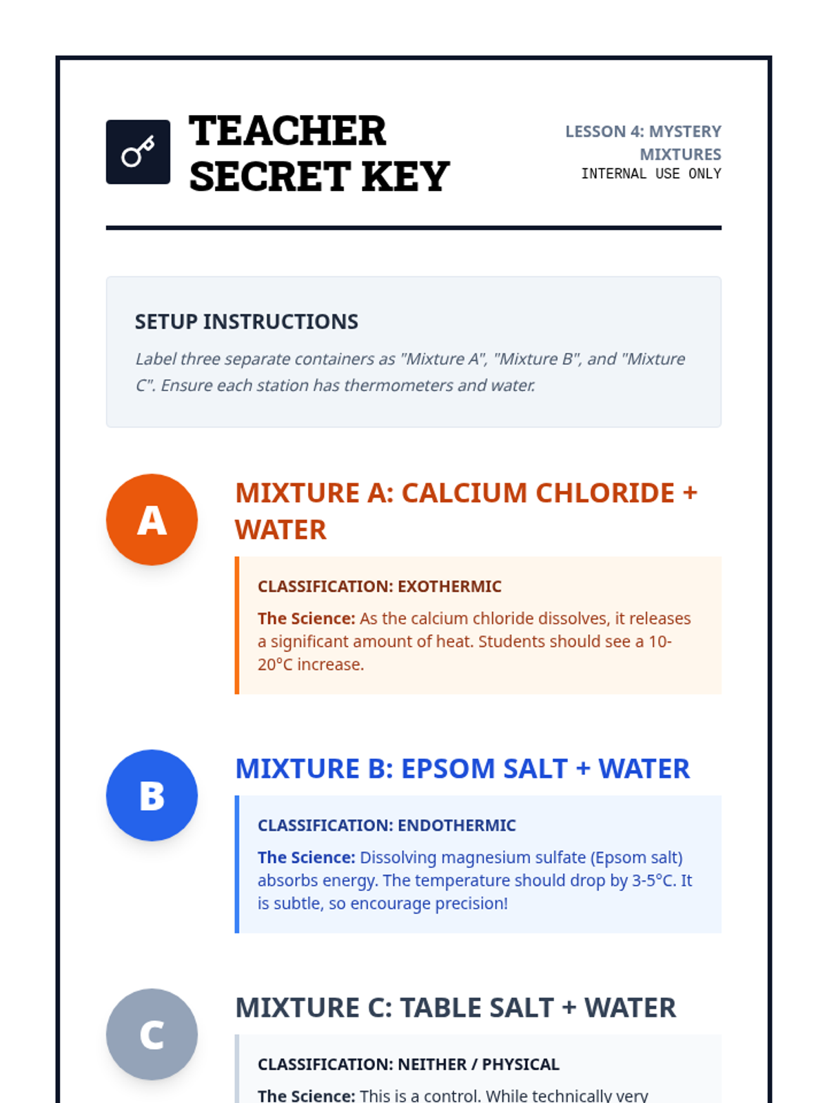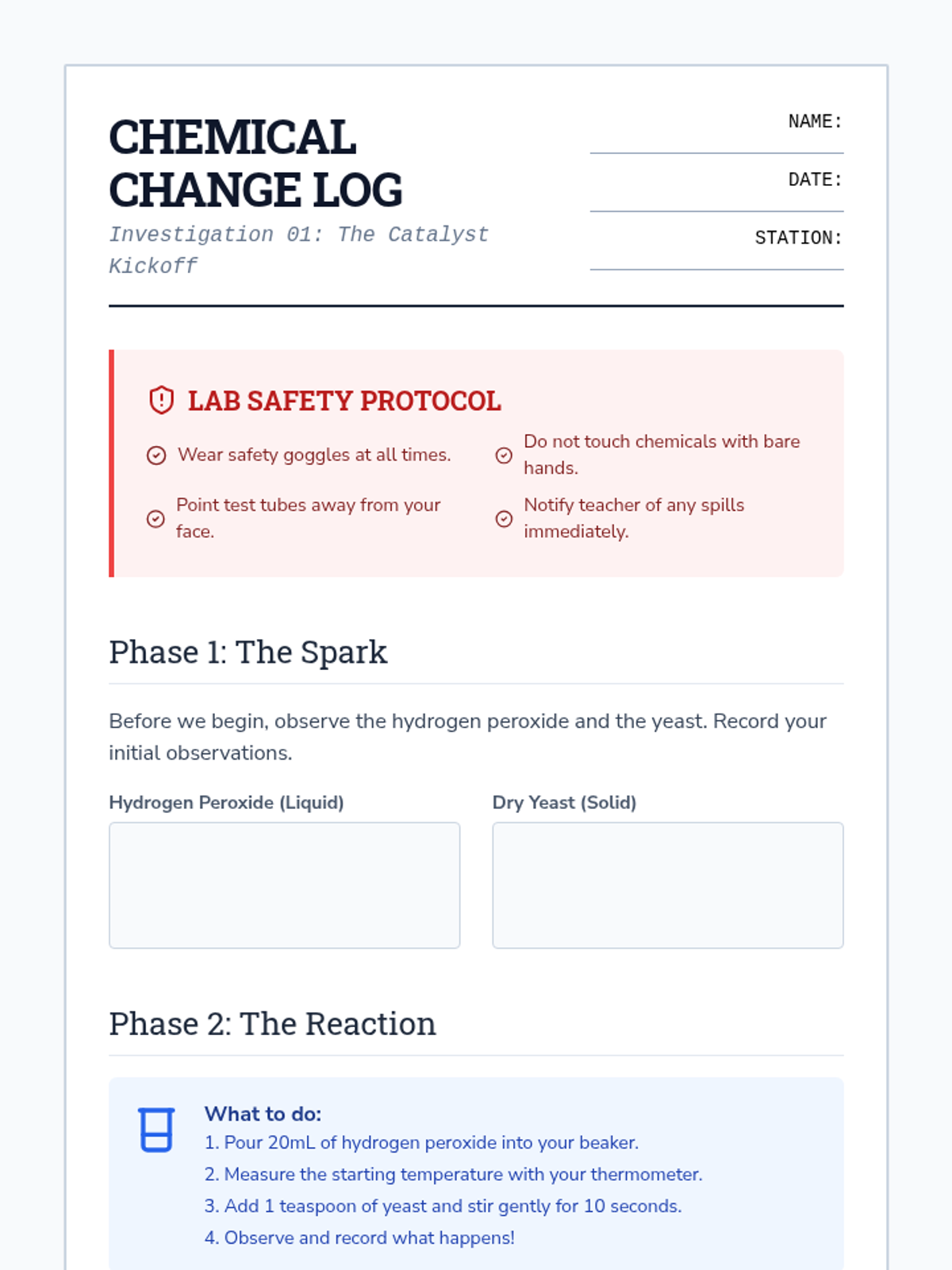An inquiry-based exploration of energy transfer in chemical reactions for 5th-grade students. This sequence covers identifying chemical changes, measuring exothermic and endothermic temperature shifts, and modeling the direction of heat flow.
