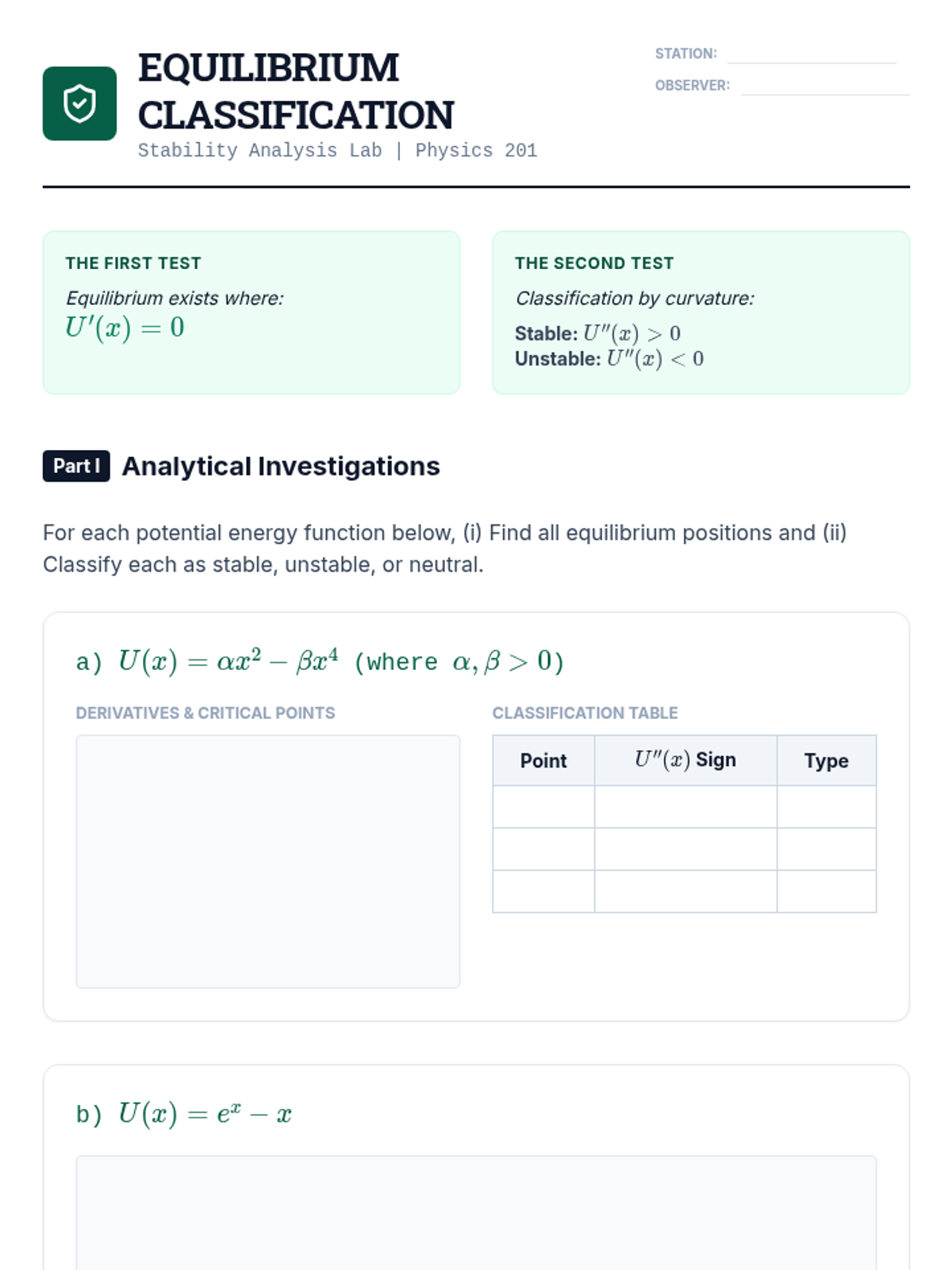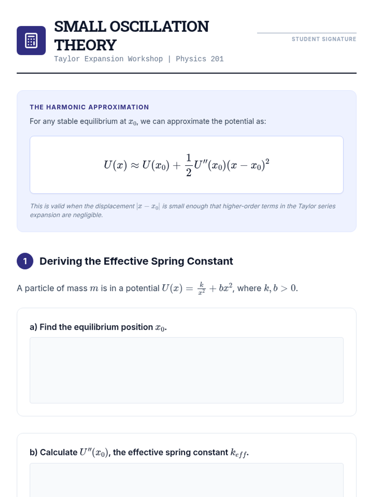 A calculus-based physics sequence for undergraduates focusing on the relationship between potential energy functions and physical forces, stability analysis, and mathematical modeling of physical systems from the atomic to the macroscopic scale.