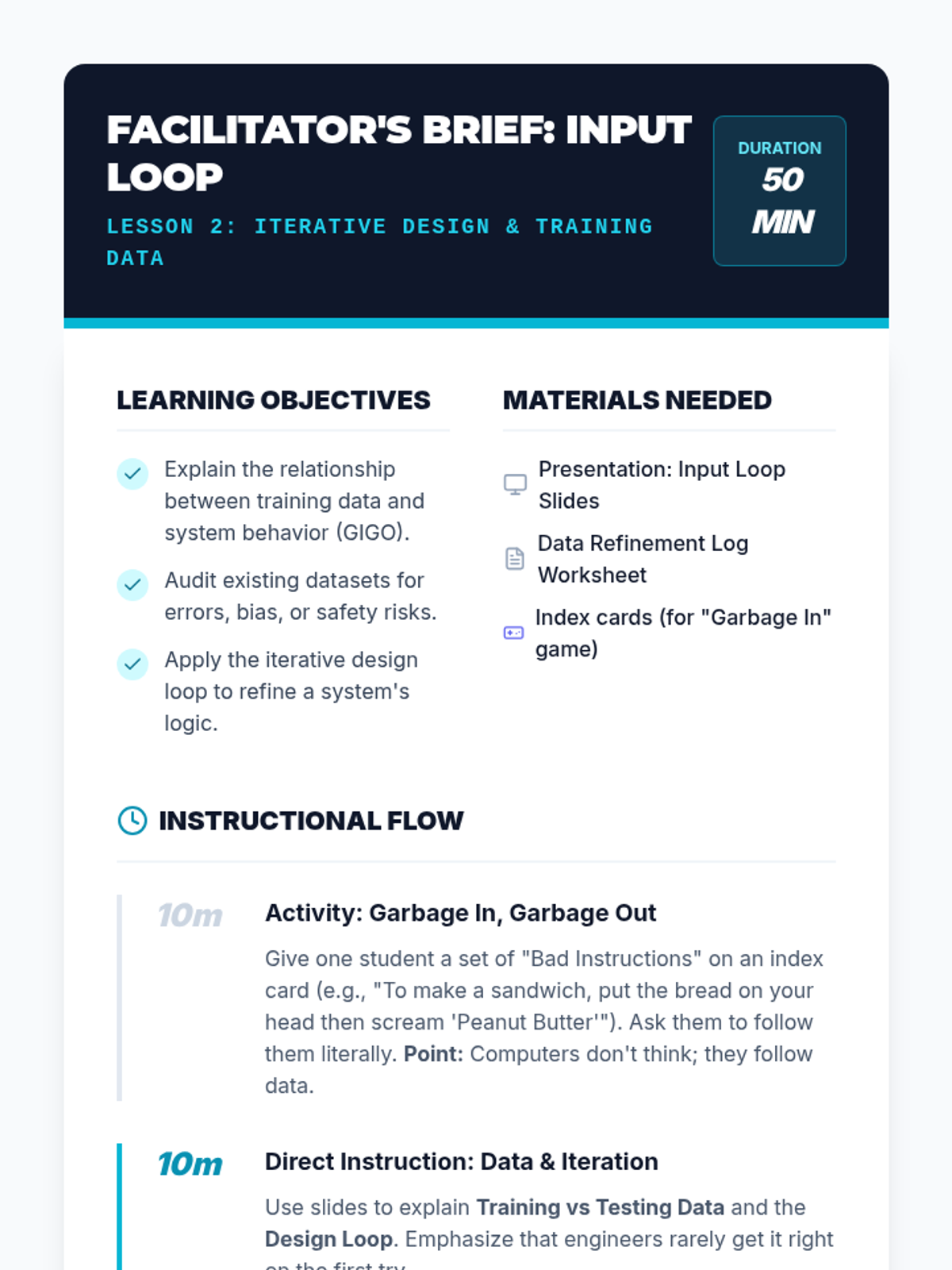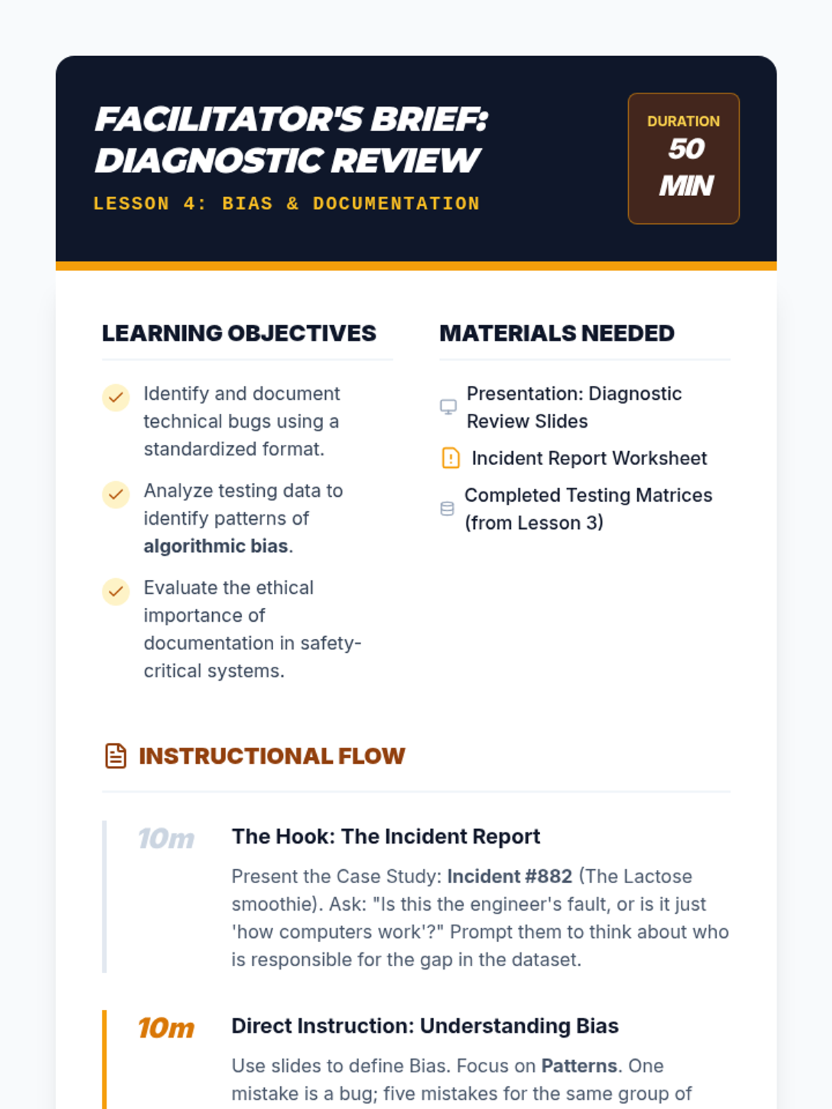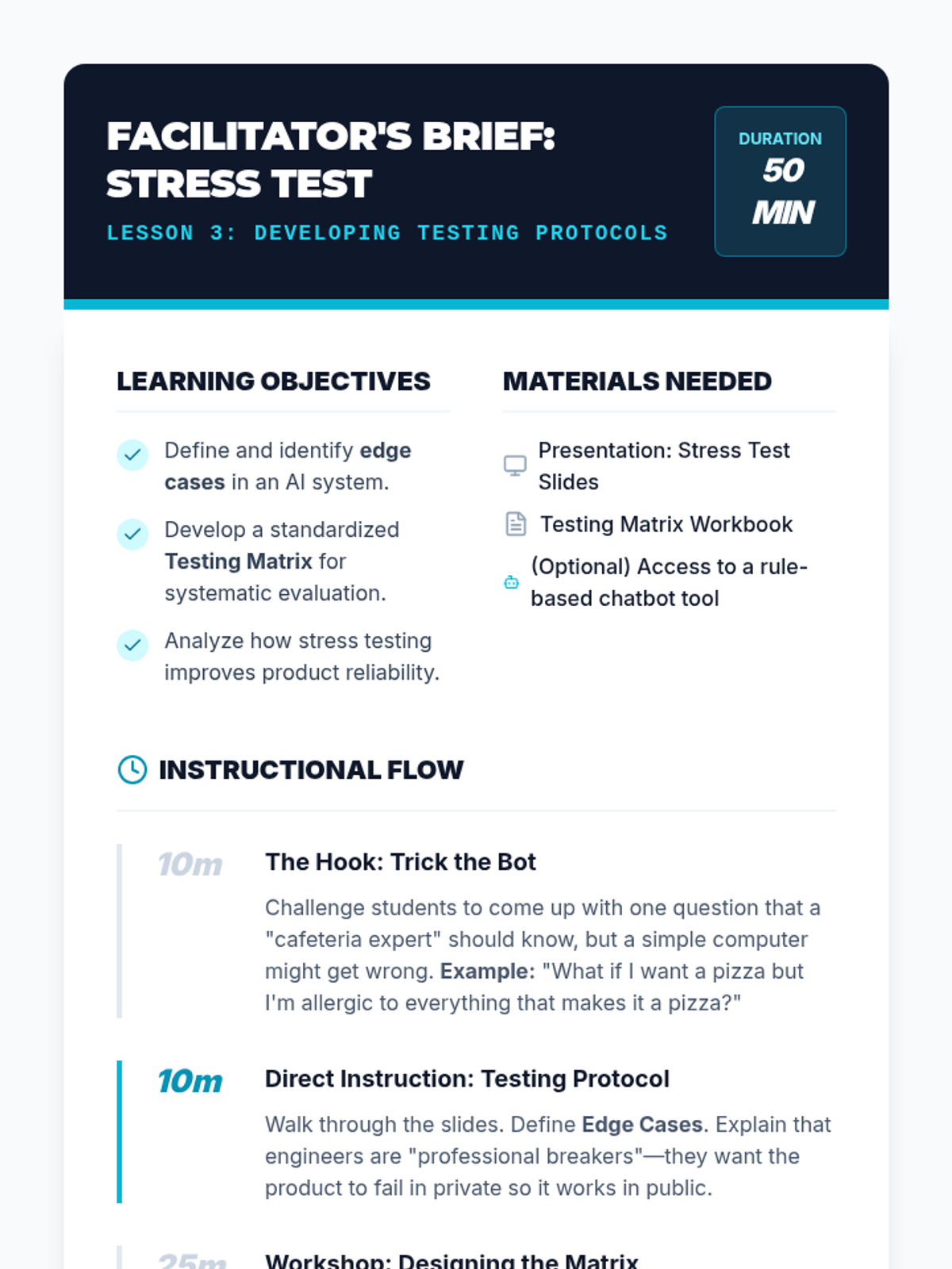 Students assume the role of Quality Assurance Engineers to audit and improve a flawed AI prototype through an iterative engineering lifecycle of testing, documentation, and refinement.