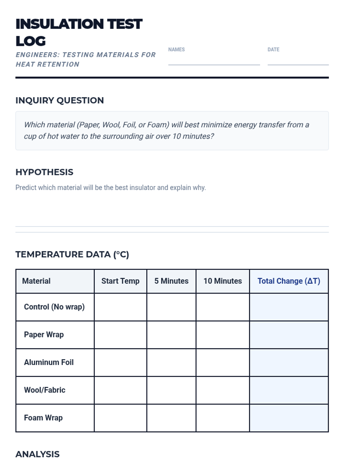 A comprehensive 4-day sequence focusing on the application of thermal energy concepts, including conduction, convection, radiation, and insulation through hands-on labs and real-world analysis.