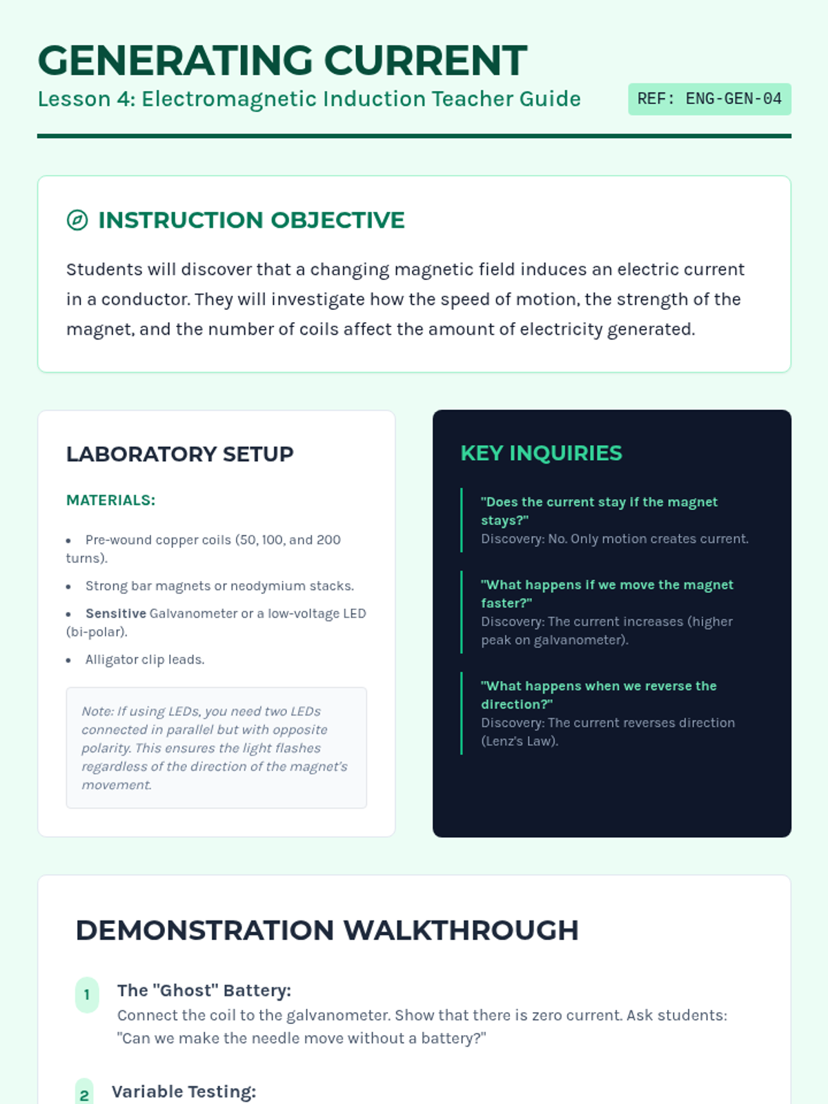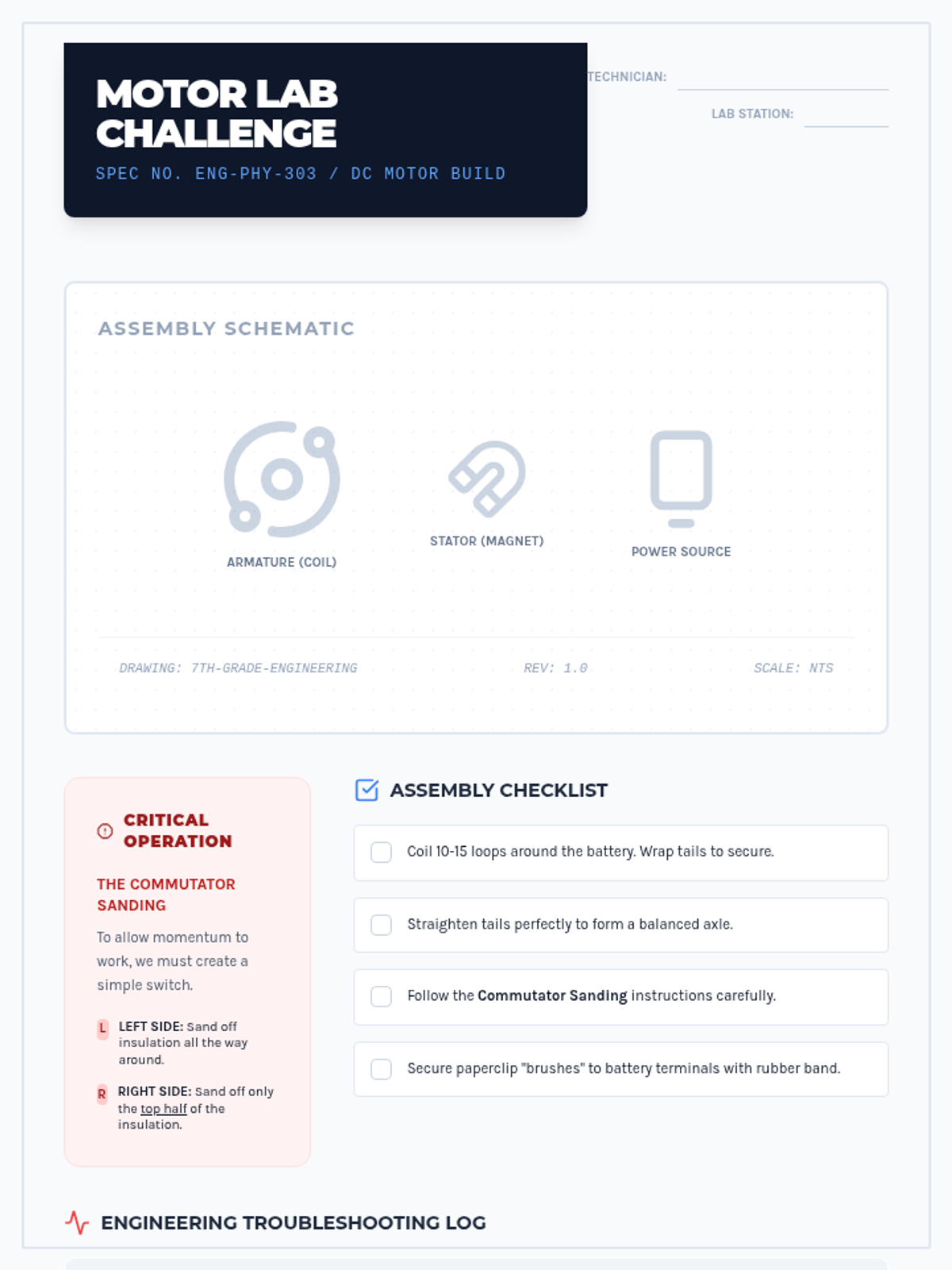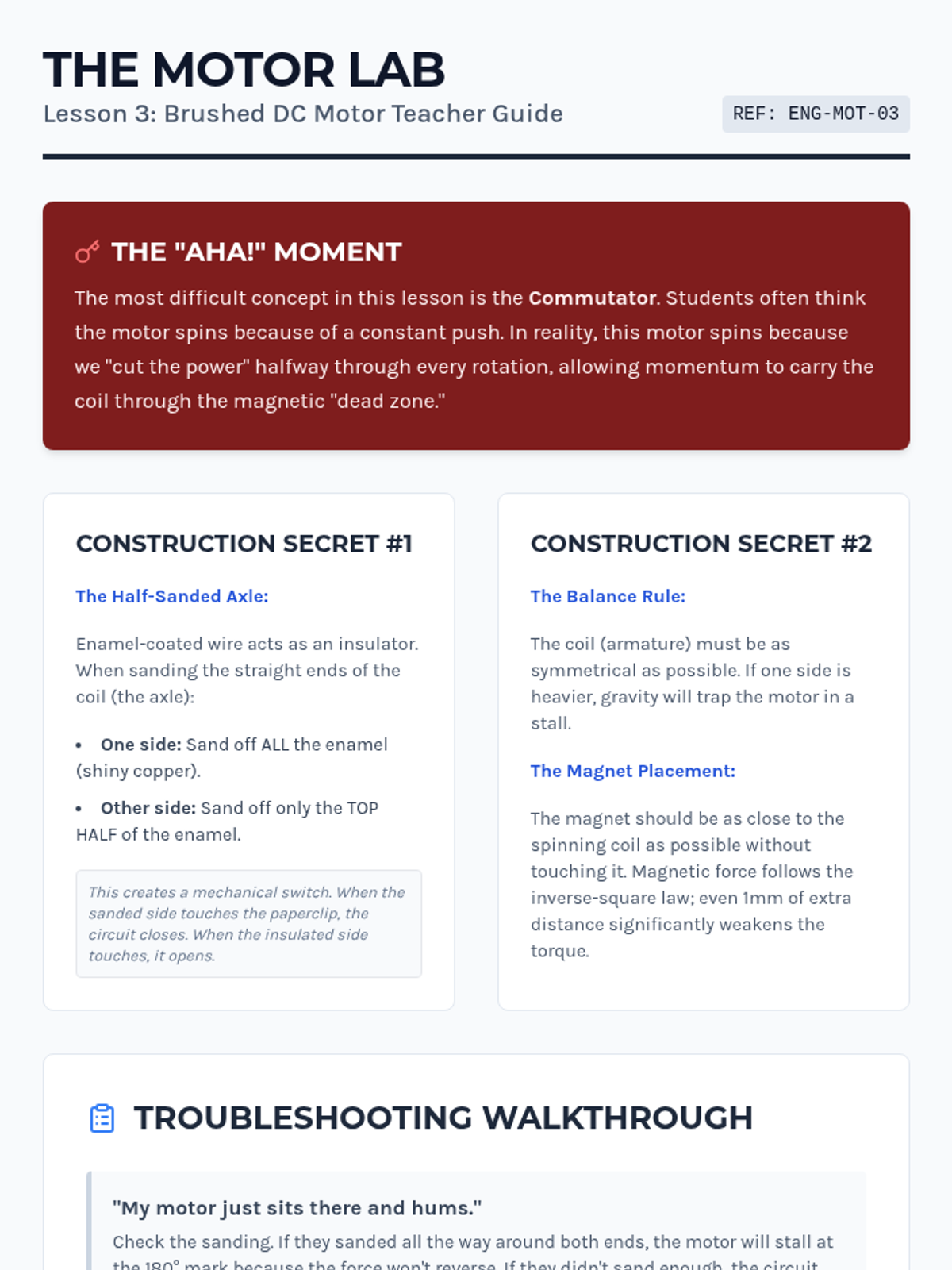 This 7th-grade engineering sequence explores the conversion between electrical and mechanical energy. Students progress from observing the Lorentz force to building simple and complex motors, eventually investigating electromagnetic induction and the reciprocal relationship between motors and generators.
