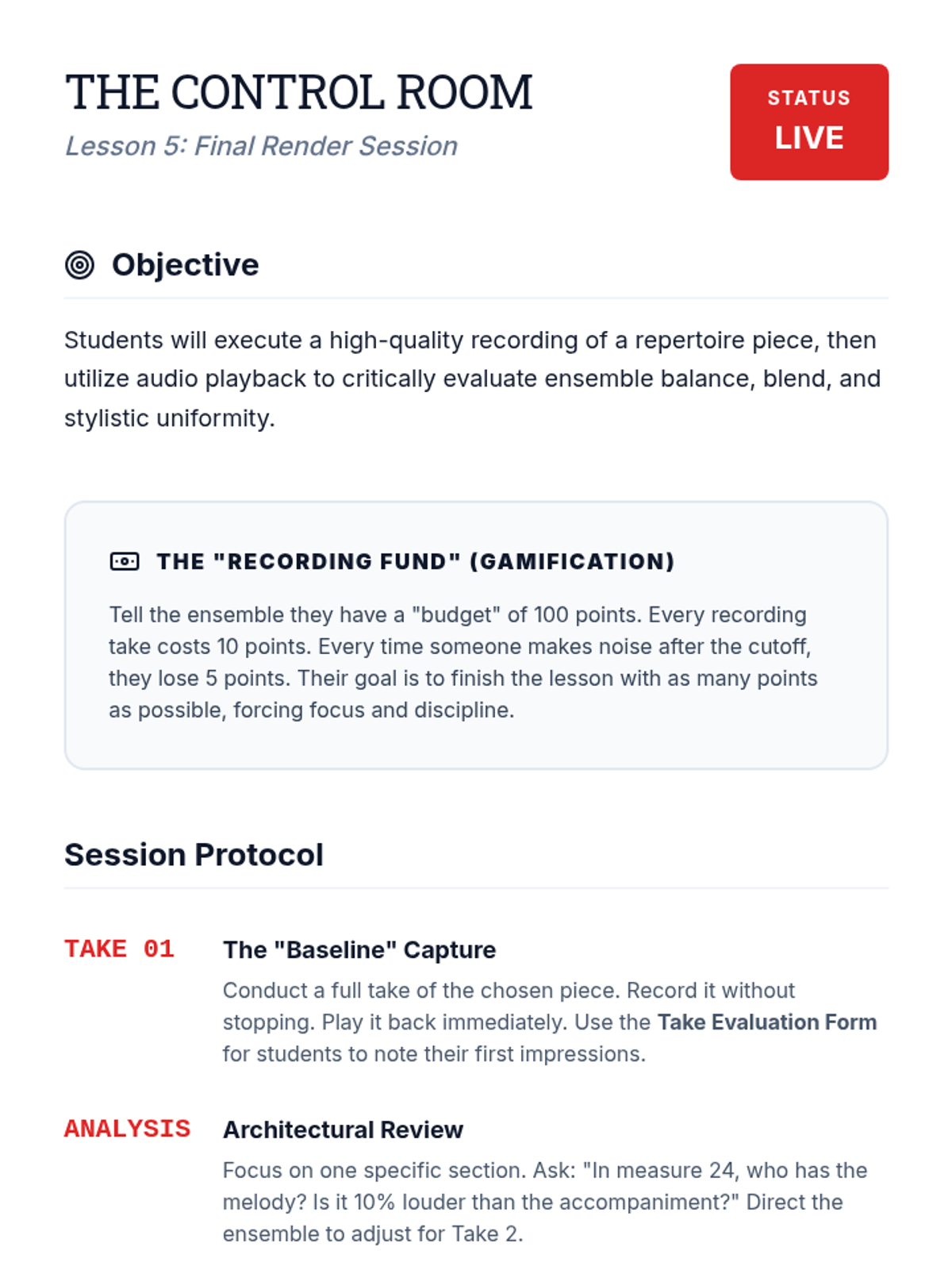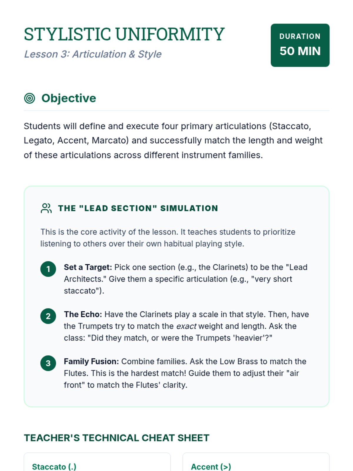 A comprehensive 5-lesson sequence for 9th-grade instrumental music students, focusing on the transition from individual proficiency to collective ensemble responsibilities through the lens of balance, blend, and articulation.