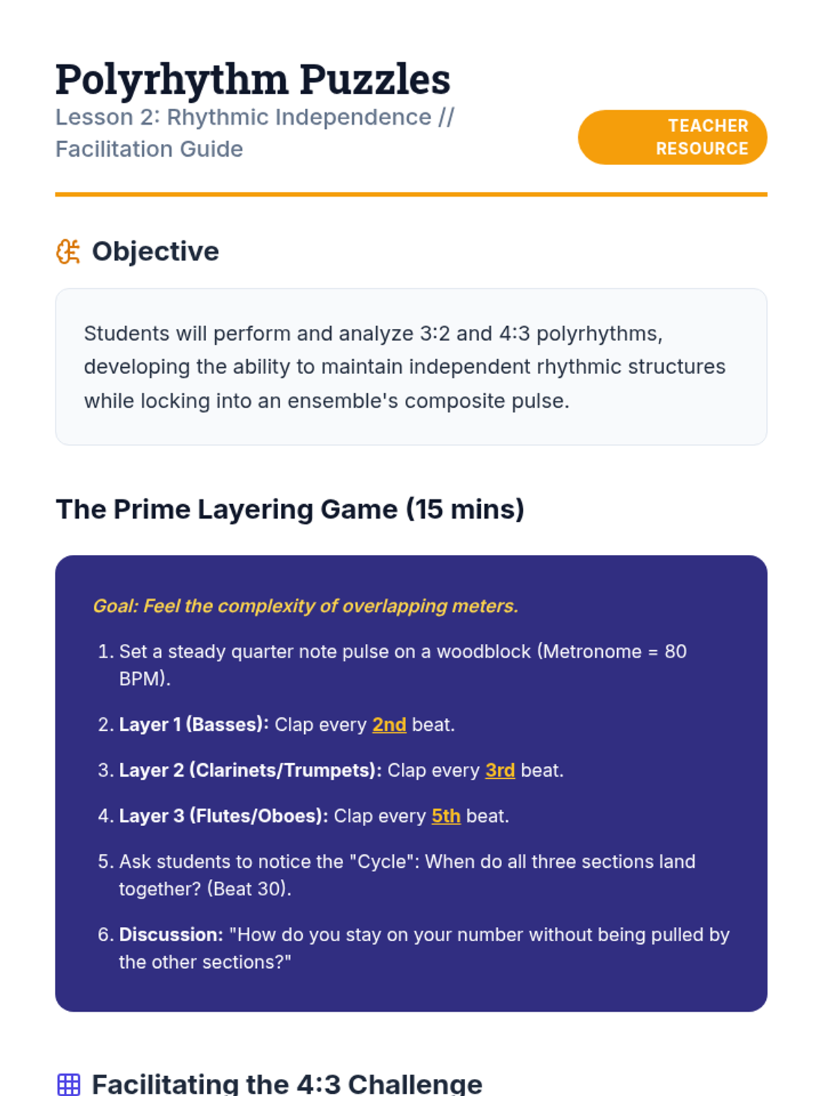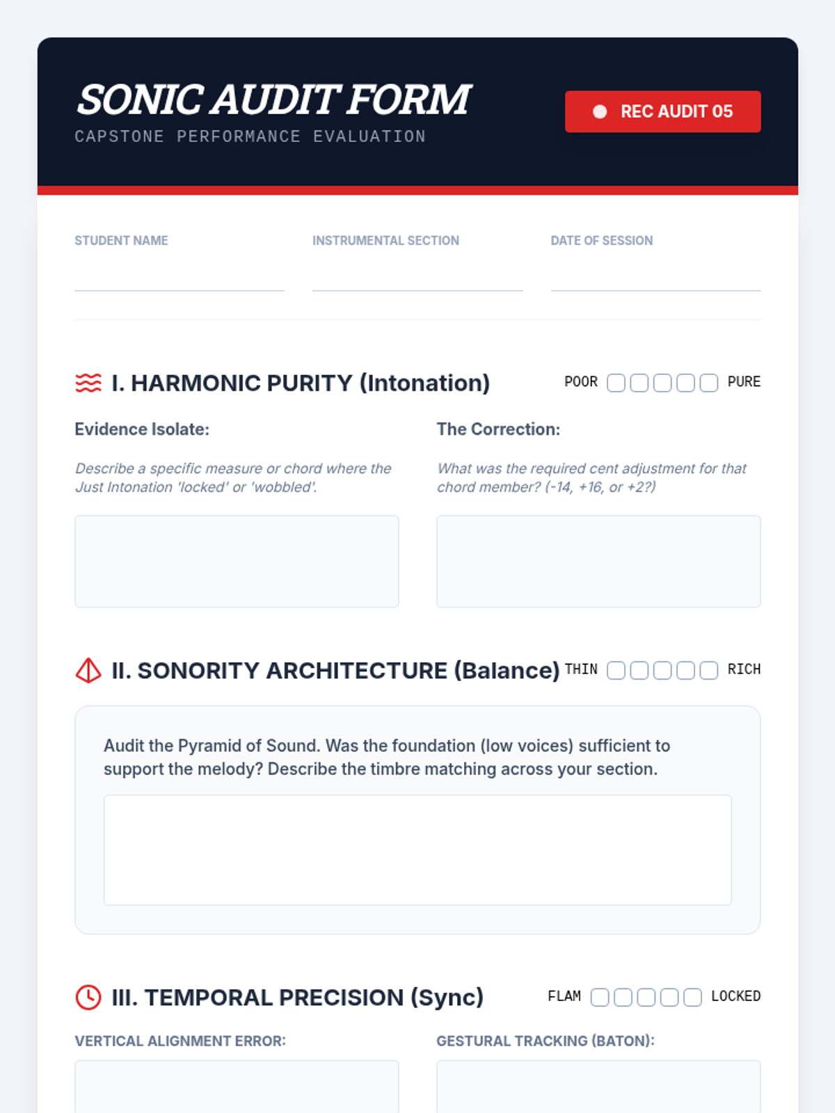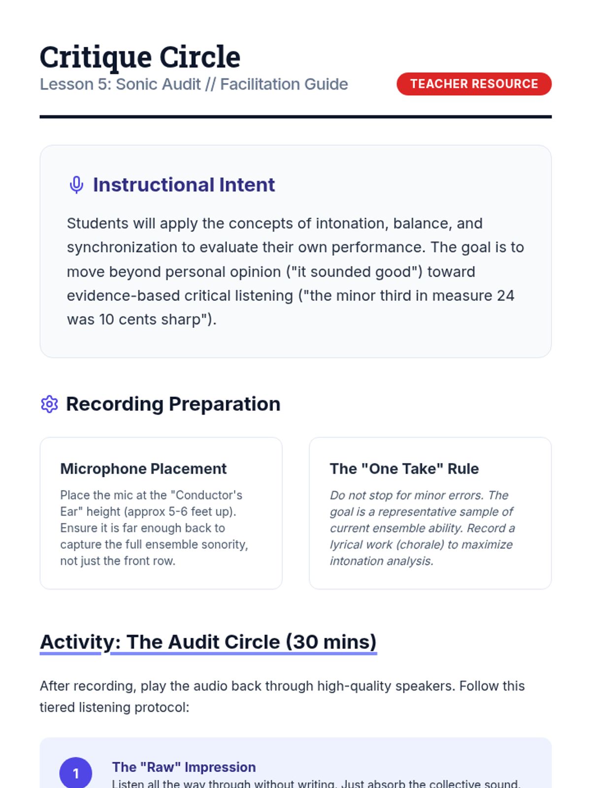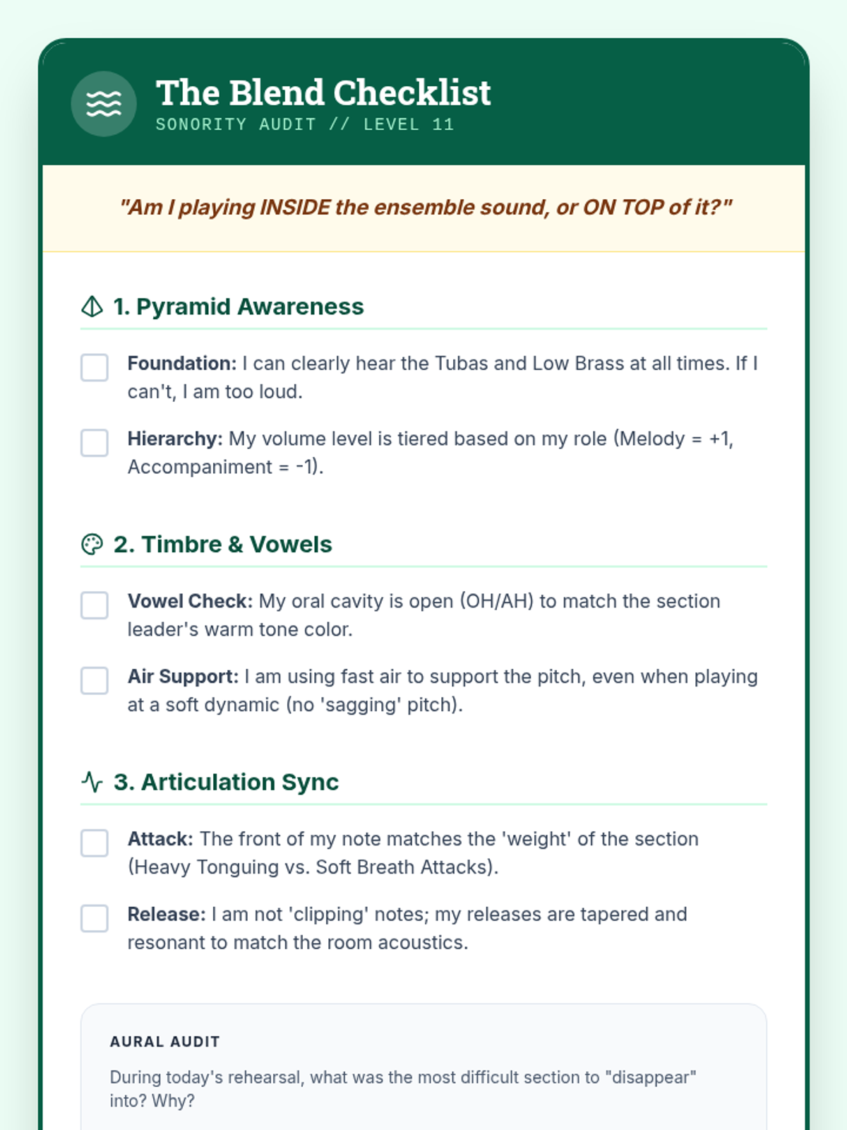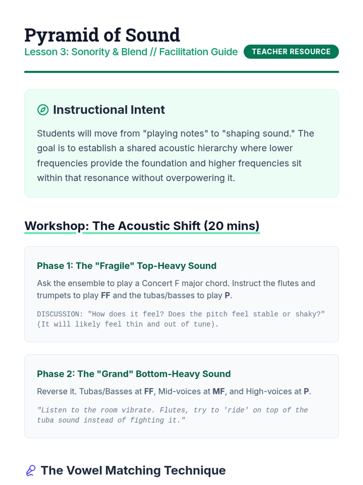 This sequence guides 11th-grade instrumentalists from individual technical proficiency to advanced ensemble cohesion. Students explore the physics of intonation, the mathematics of complex rhythms, and the artistry of non-verbal communication to create a unified 'professional' sound.