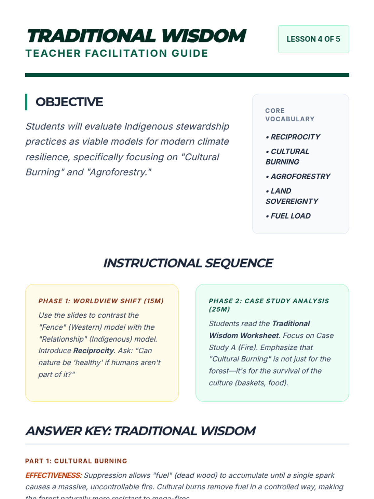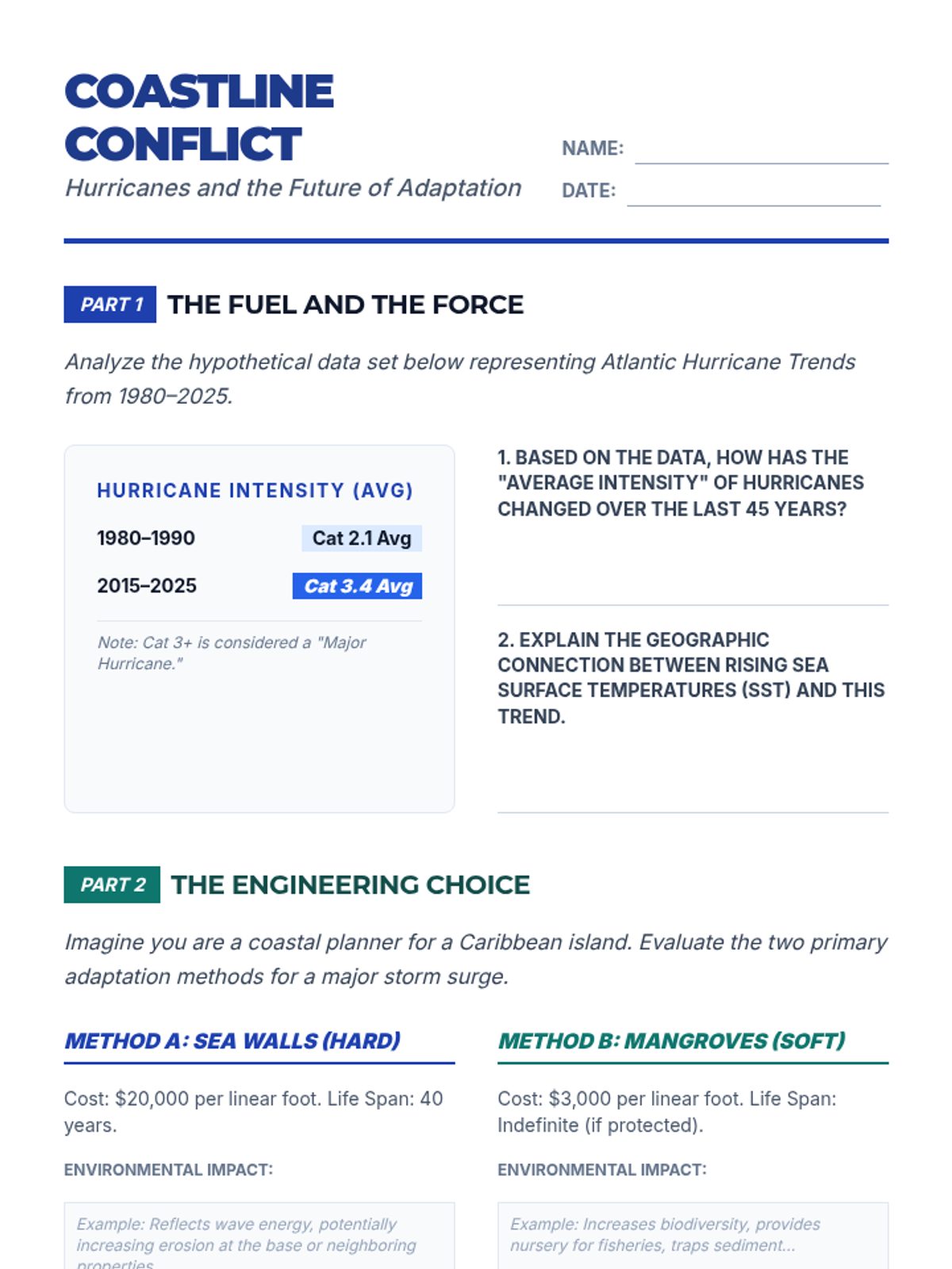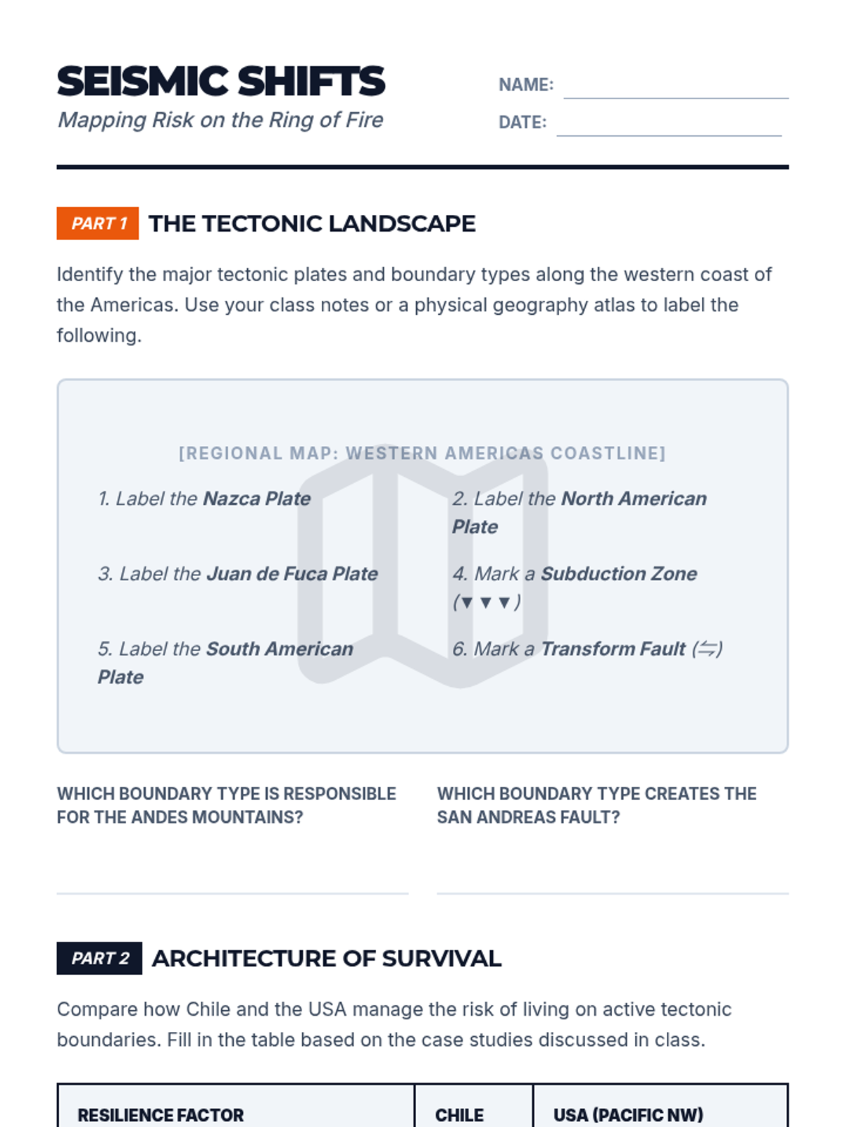 This 11th-grade geography sequence explores the intersection of climate change, natural disasters, and human adaptation across the Americas. Students analyze tectonic risks, hurricane patterns, glacial retreat in the Andes, and Indigenous land stewardship to develop integrated climate resilience policies.