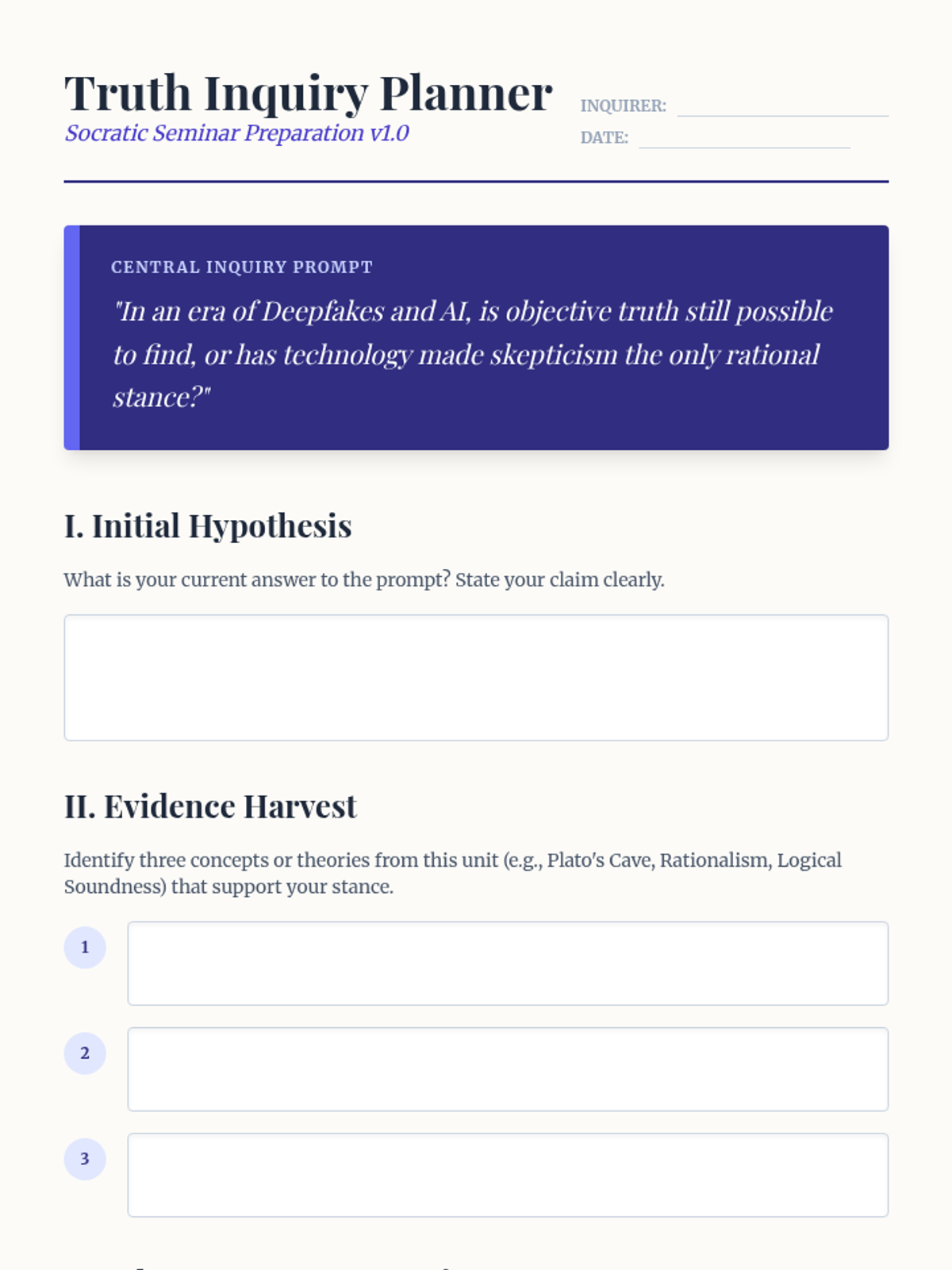 This sequence explores the foundations of epistemology and logic, from Plato's cave allegory to modern logical fallacies. Students will develop the critical thinking skills necessary to distinguish between perception and reality and evaluate the validity of arguments.