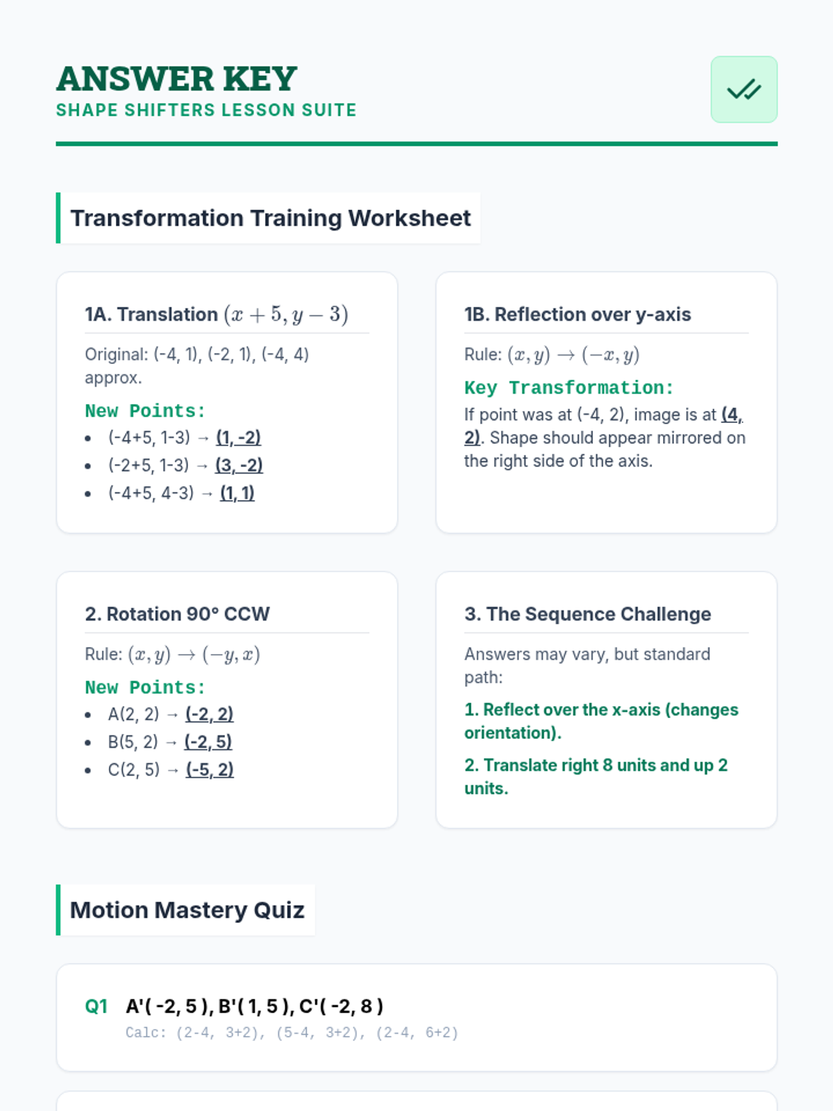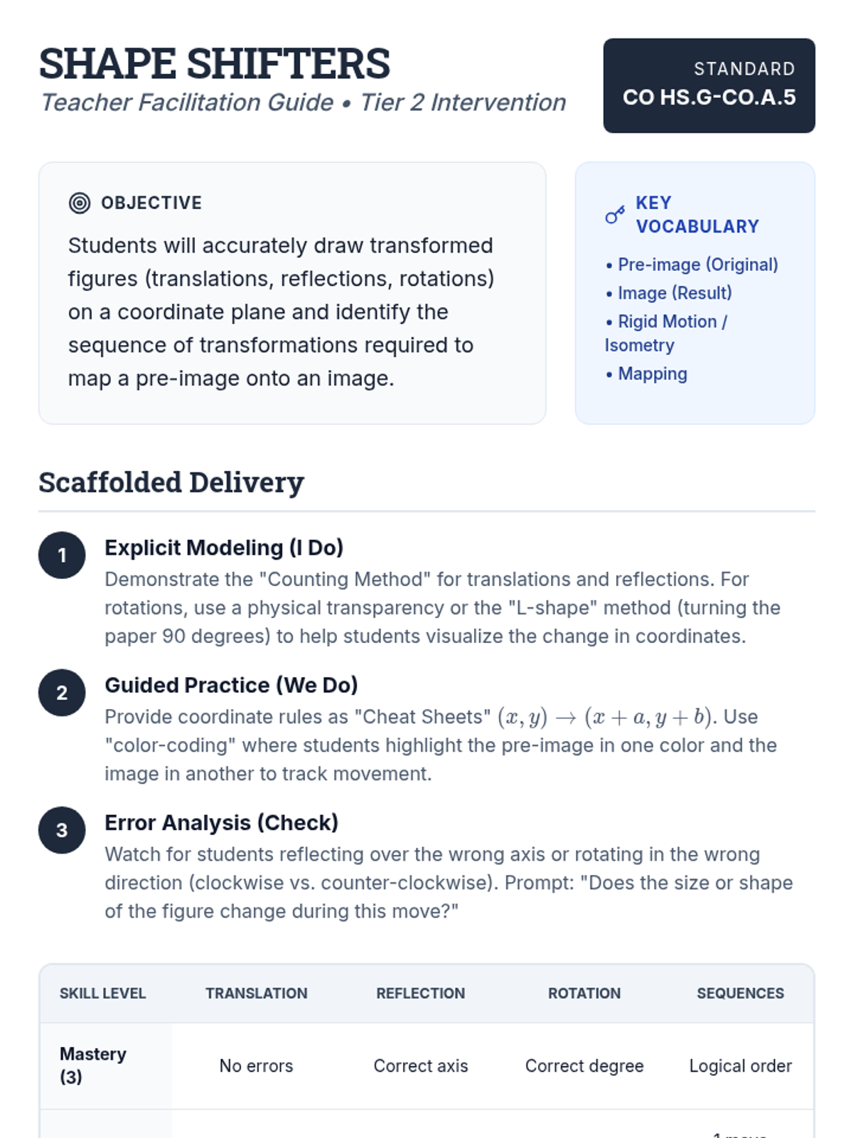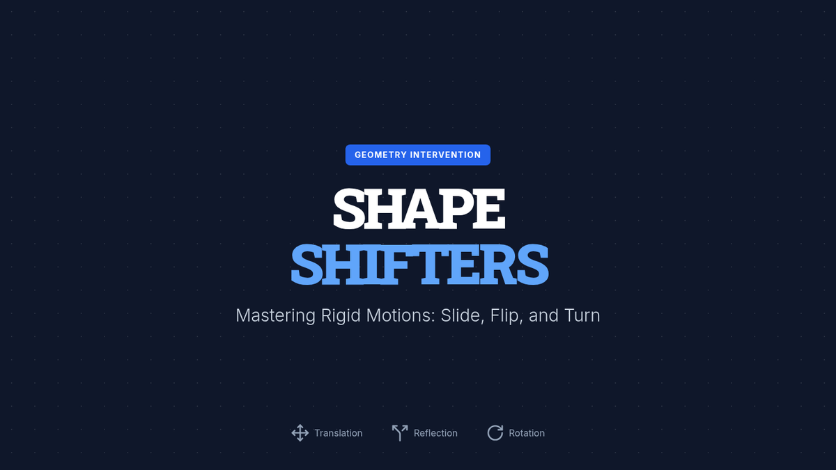 A targeted intervention sequence for high school geometry students focusing on mastering rigid transformations and sequences of motions to map figures. This unit provides scaffolded support for translation, reflection, and rotation, aligned with Colorado standard HS.G-CO.A.5.
