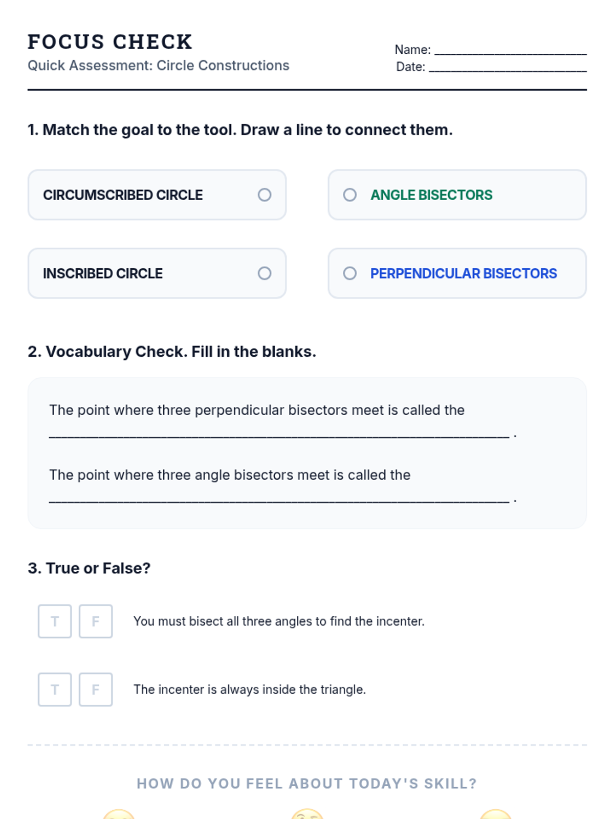 A targeted intervention sequence focusing on geometric constructions related to triangles and circles, specifically designed for Tier 2 support.