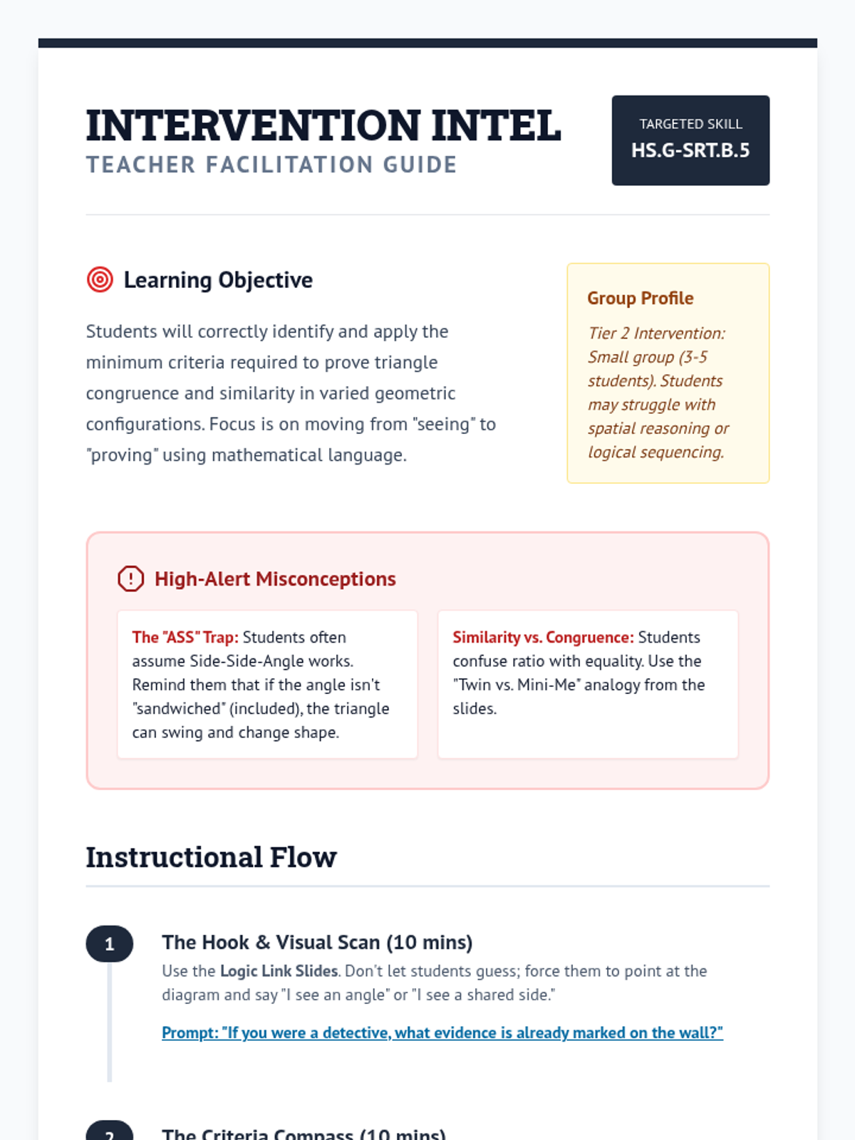 A targeted intervention sequence focused on helping students master triangle congruence and similarity criteria through scaffolded logic and collaborative problem-solving.