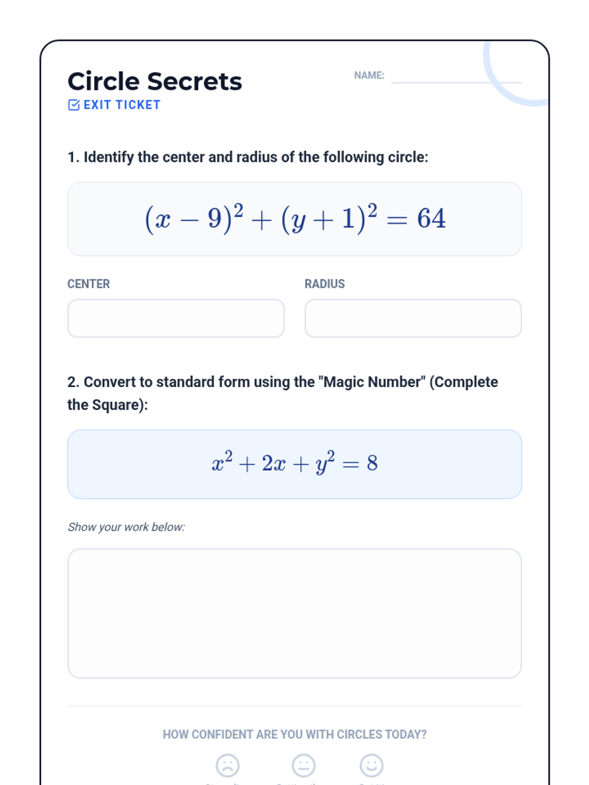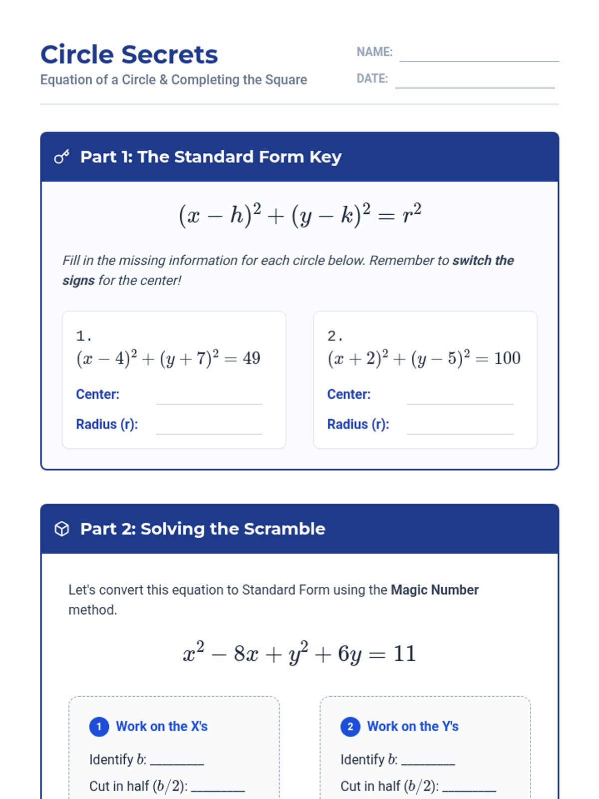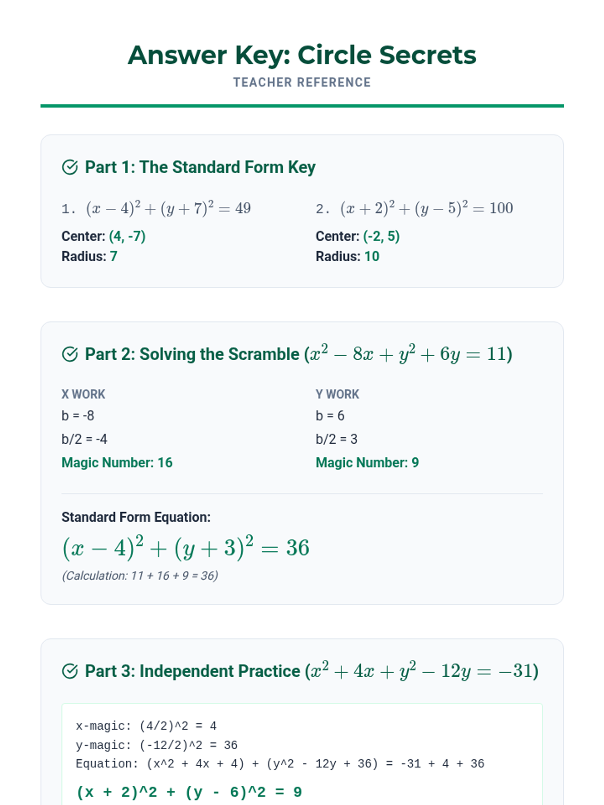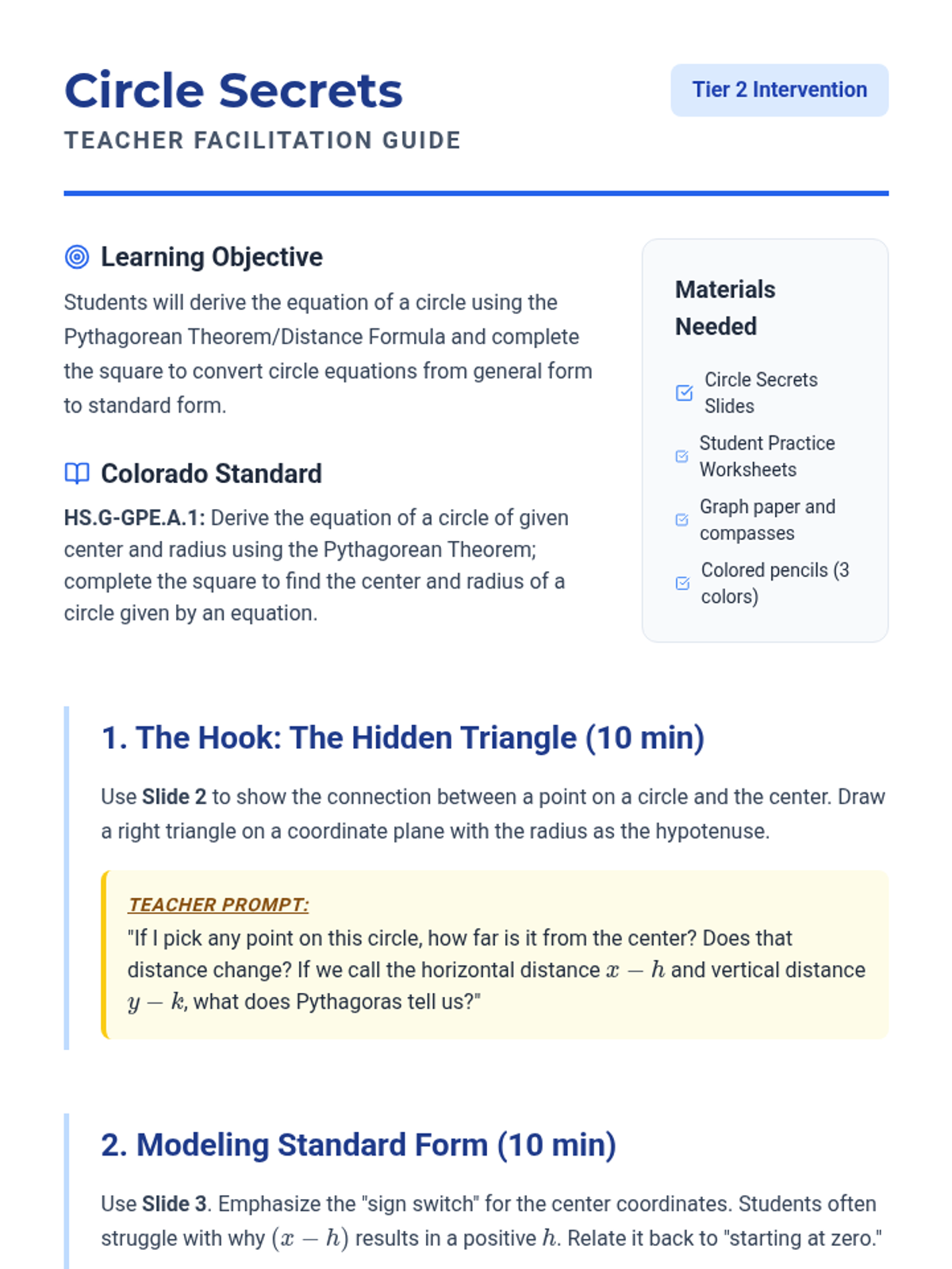 A targeted Tier 2 intervention for High School Geometry focusing on the derivation of the circle equation and completing the square. Includes scaffolded student worksheets and teacher facilitation guides designed for struggling learners.