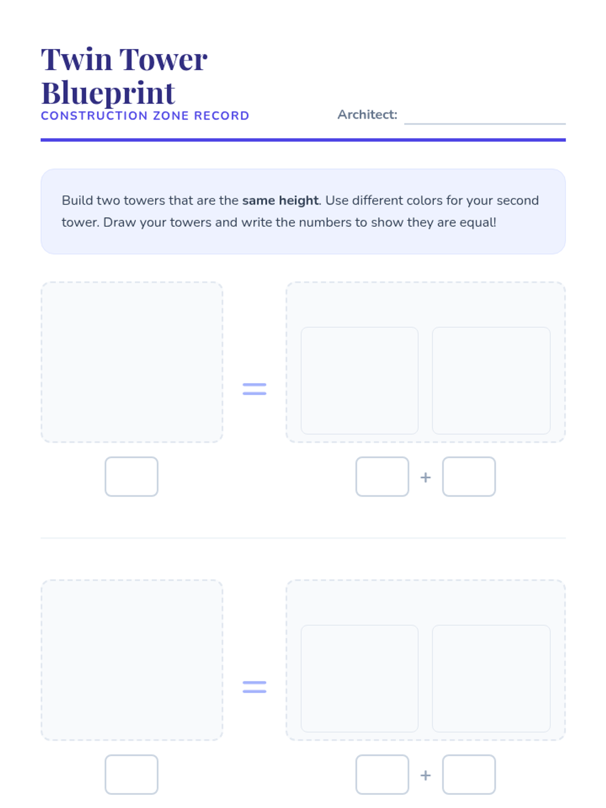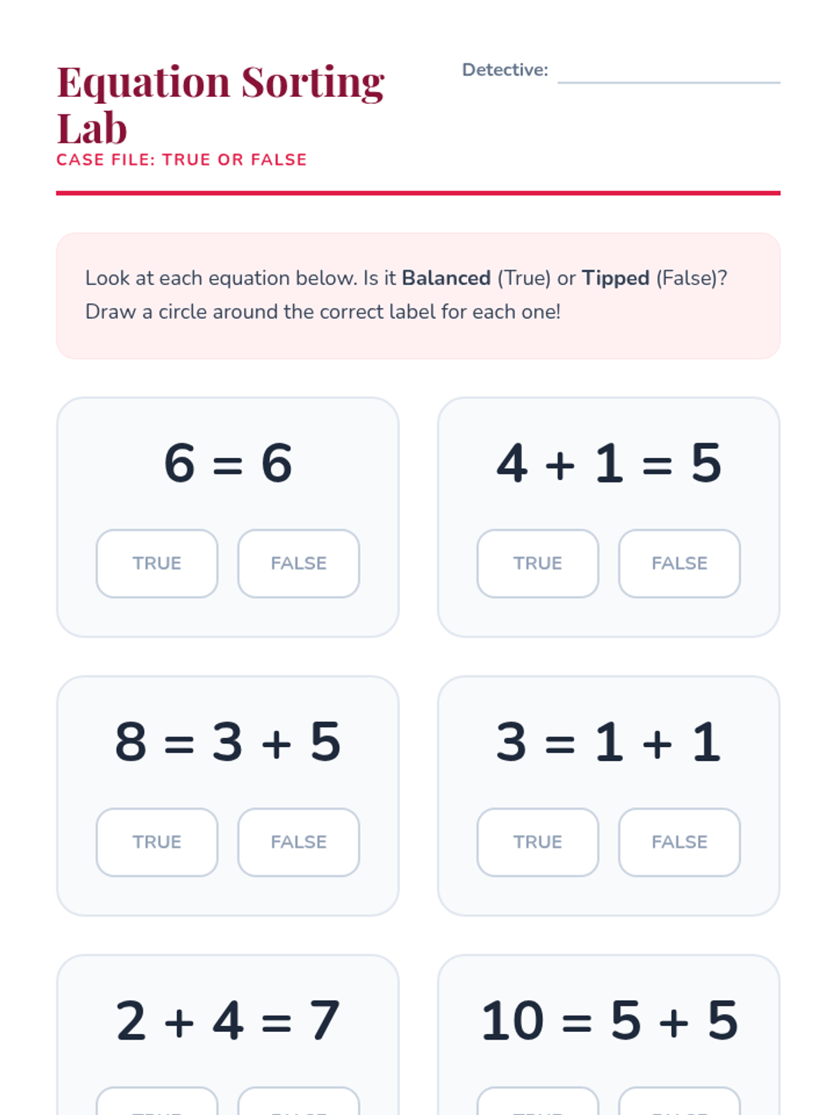 A foundational algebra sequence for 1st grade that shifts students' understanding of the equal sign from an 'answer' signal to a relational symbol of balance. Students use physical scales, visual manipulatives, and numeric equations to master quantitative relationships and solve for unknowns.