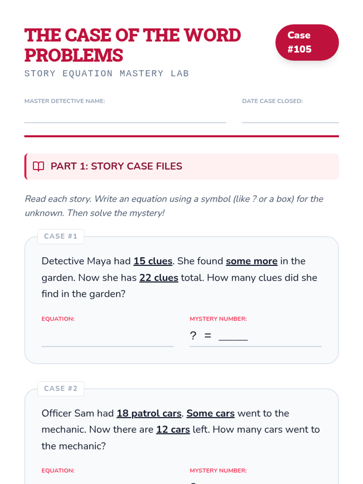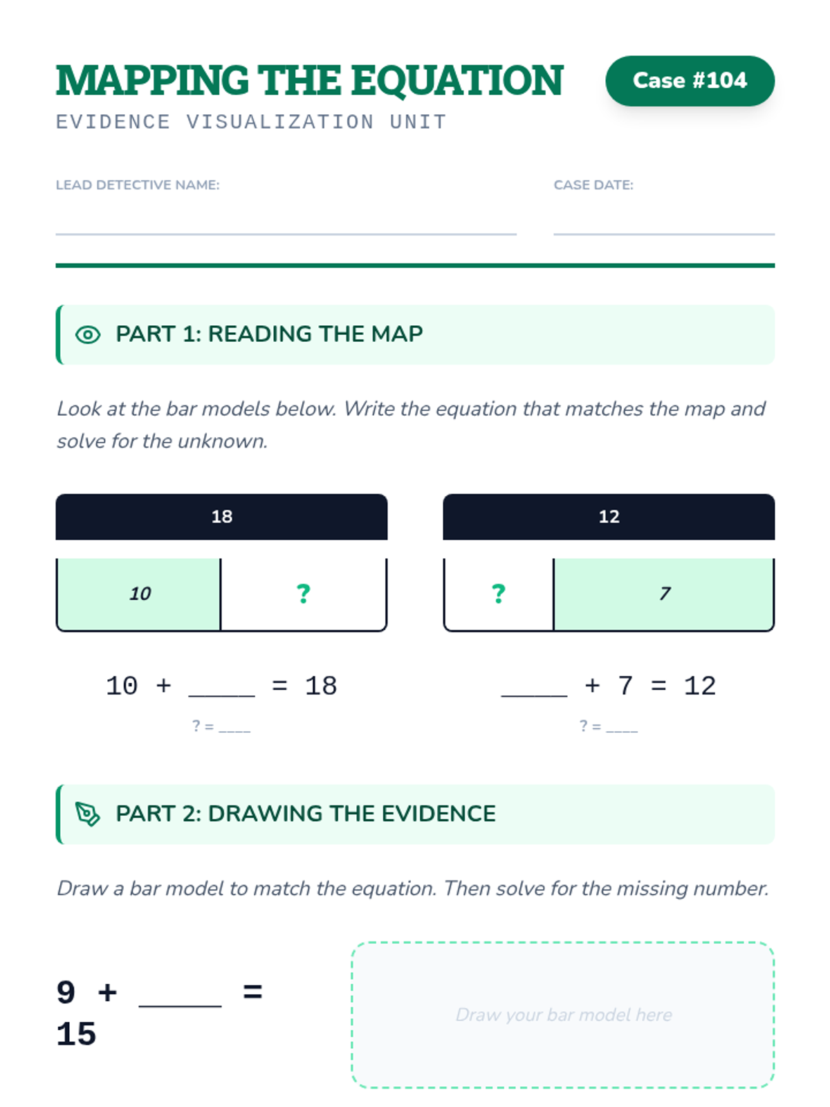 A comprehensive 2nd-grade math unit that transforms students into 'Equation Detectives' as they explore the concept of equality, missing numbers, and the relationship between addition and subtraction using balances, bar models, and real-world word problems.