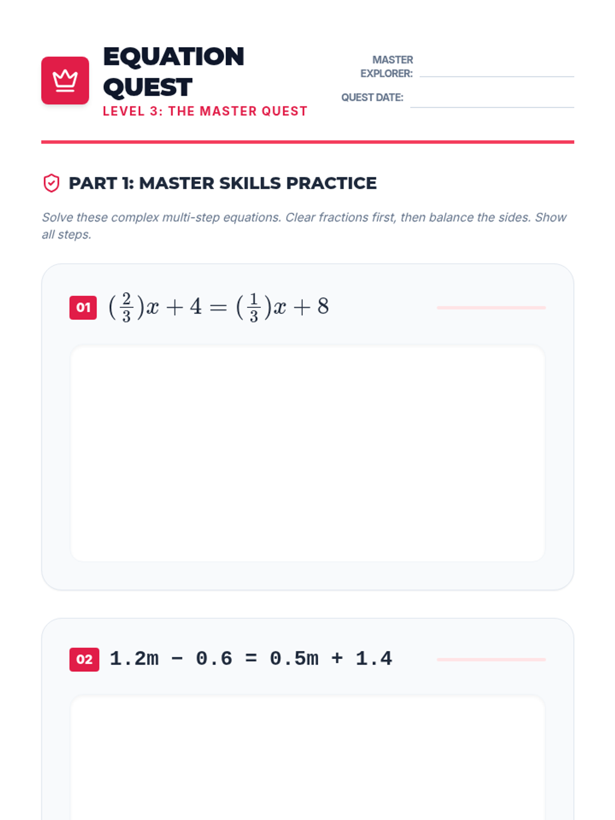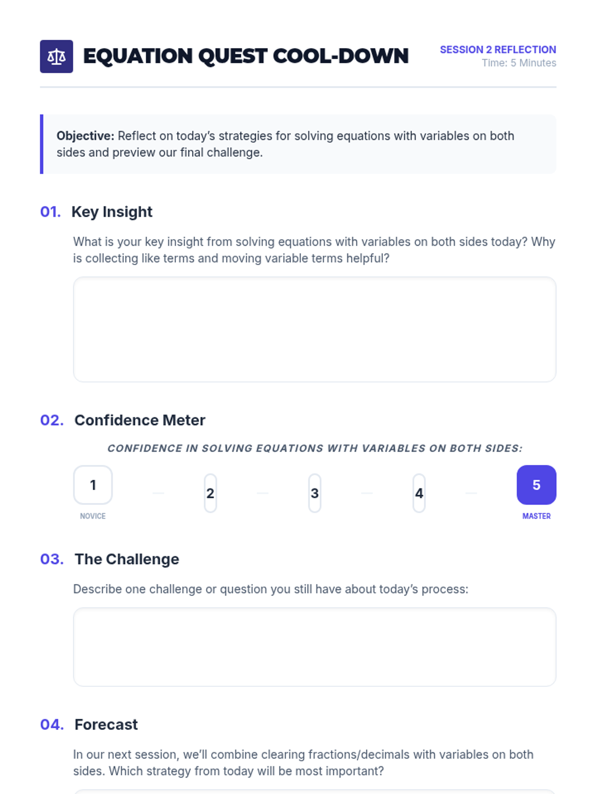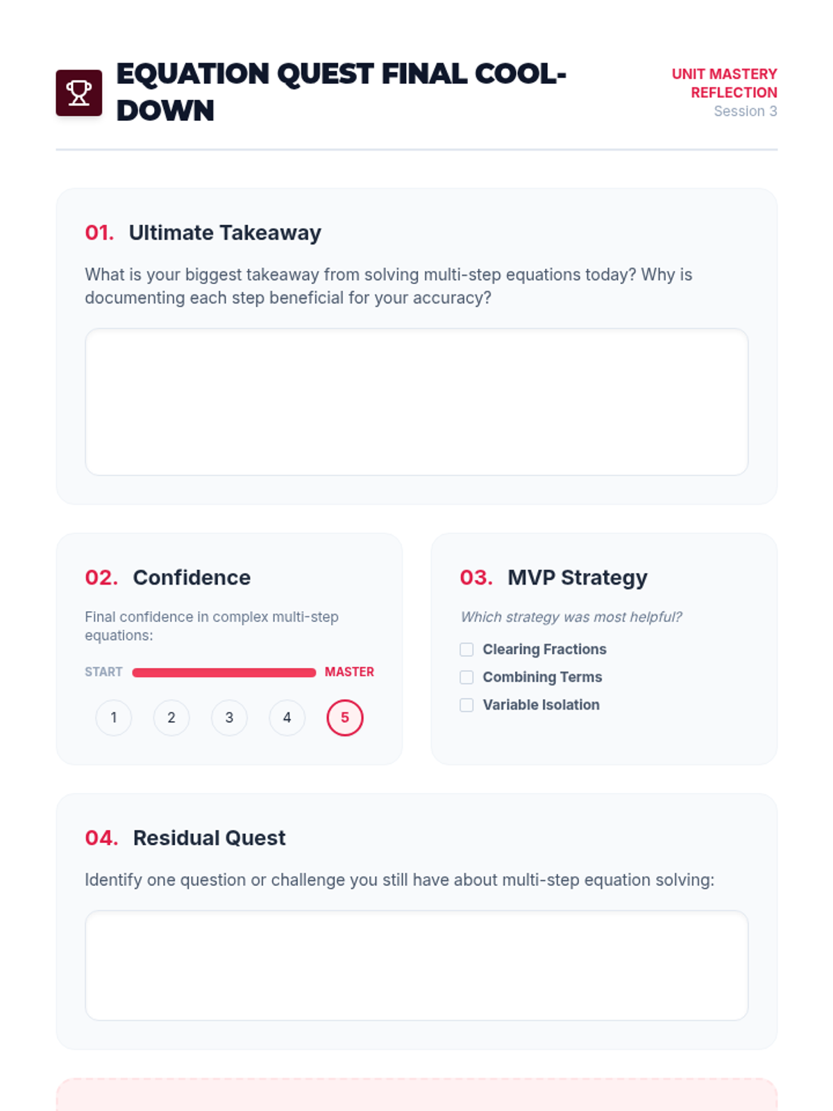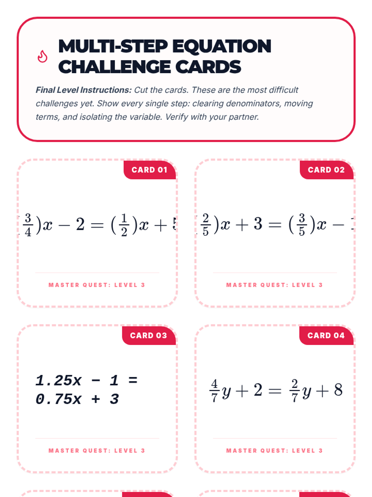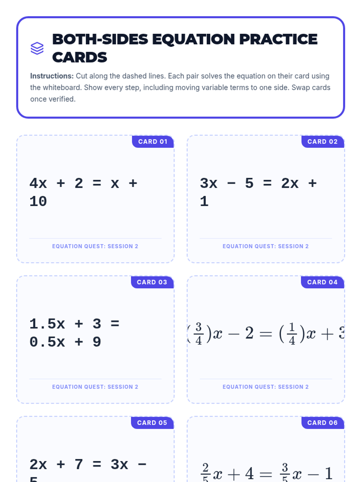 A three-session progression for mastering multi-step linear equations with rational coefficients, guiding 8th graders from foundational review to complex multi-step problem-solving.