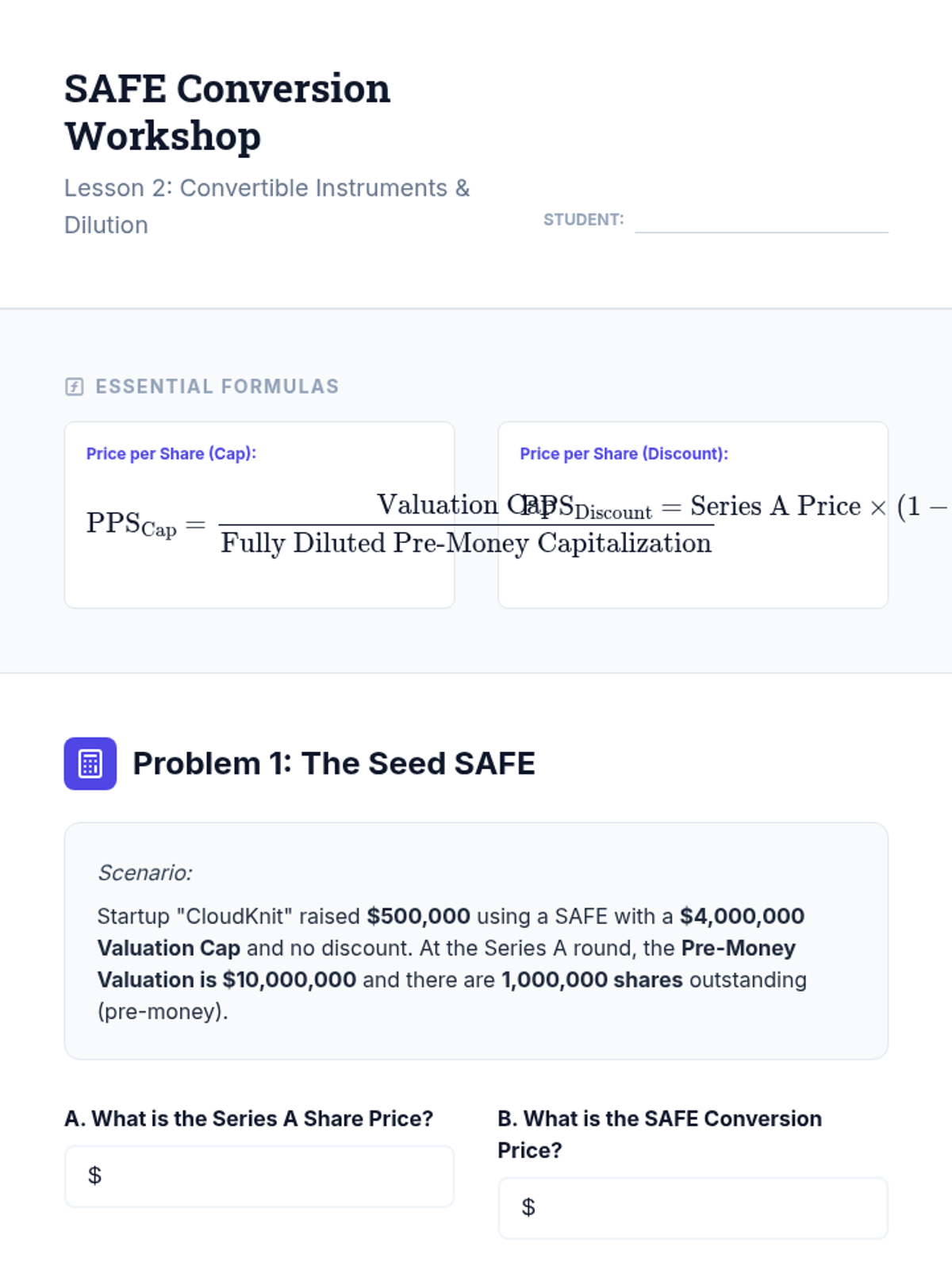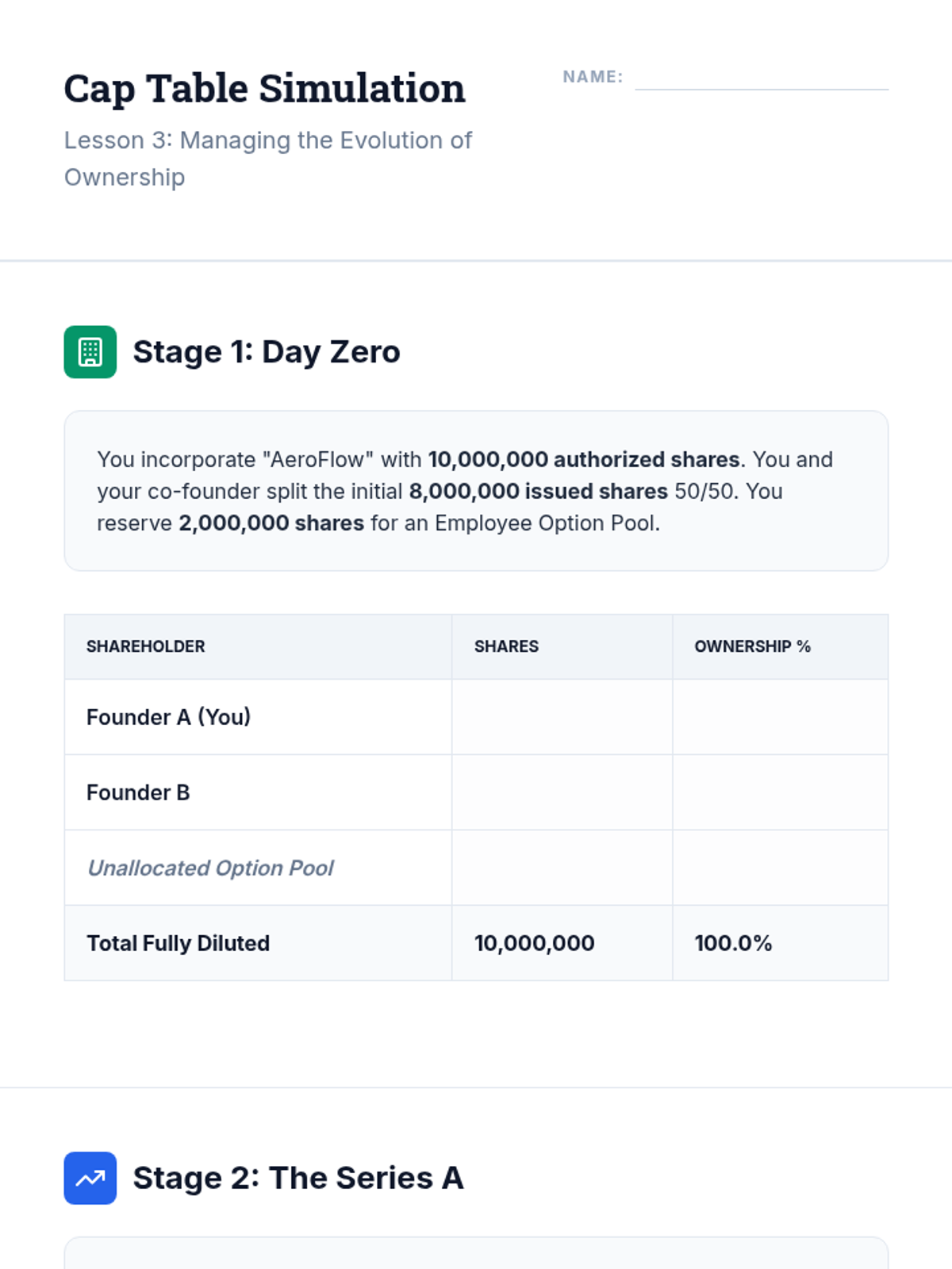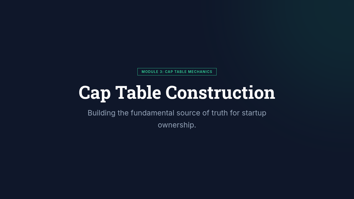 A graduate-level series on startup finance, focusing on the mechanics of equity distribution, financing instruments, and cap table management from founding to exit.
