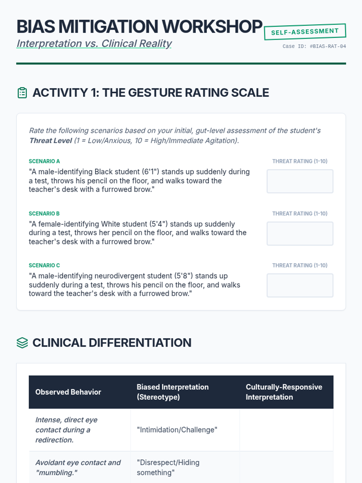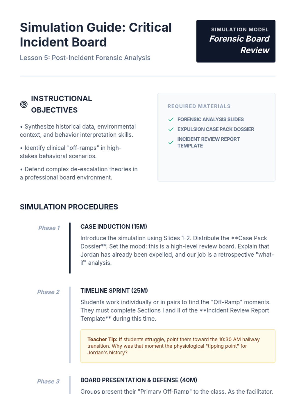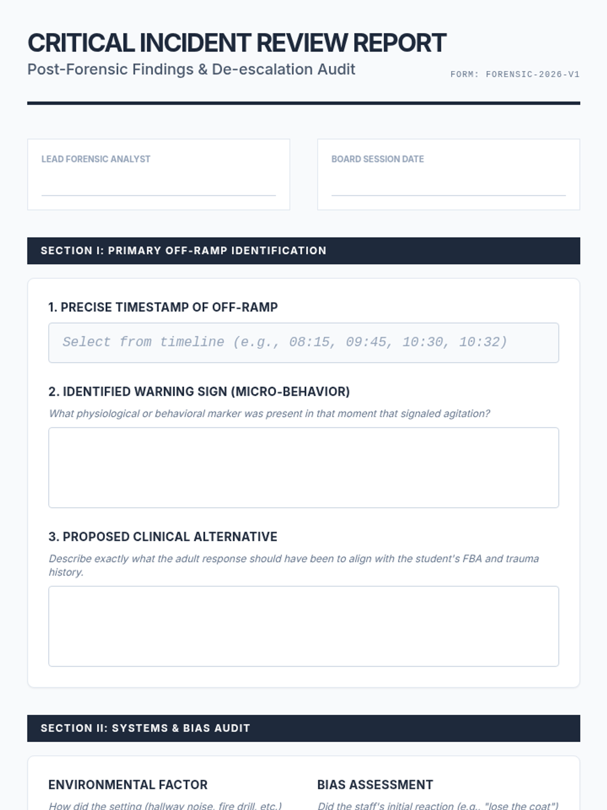 A graduate-level sequence focused on the forensic analysis of behavioral escalation. Students utilize case studies, FBA data, and cultural context to identify subtle warning signs and predict agitation patterns in diverse student populations.