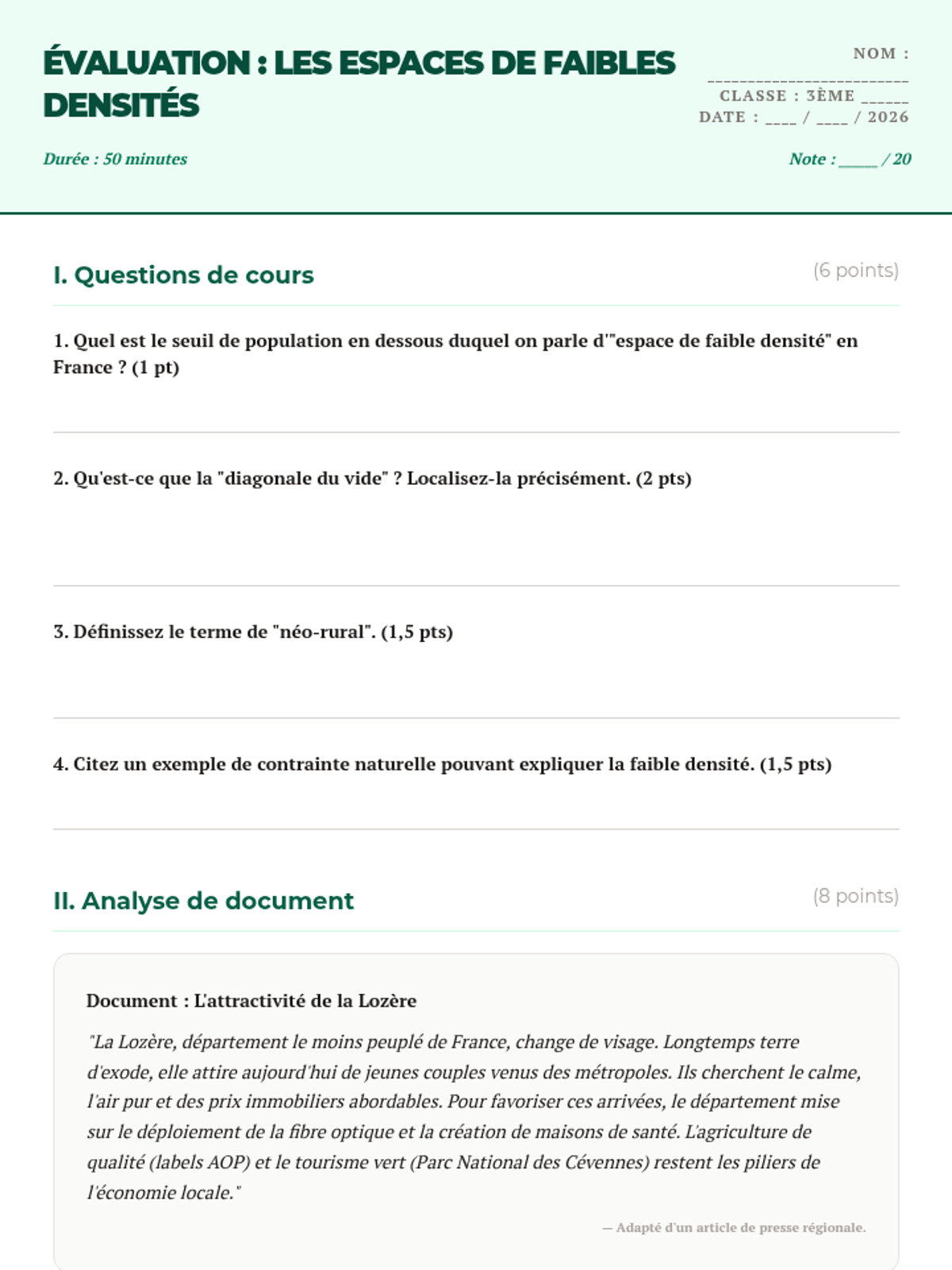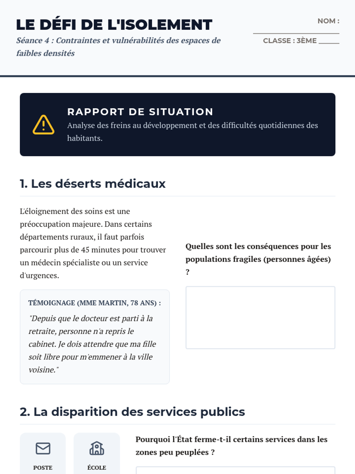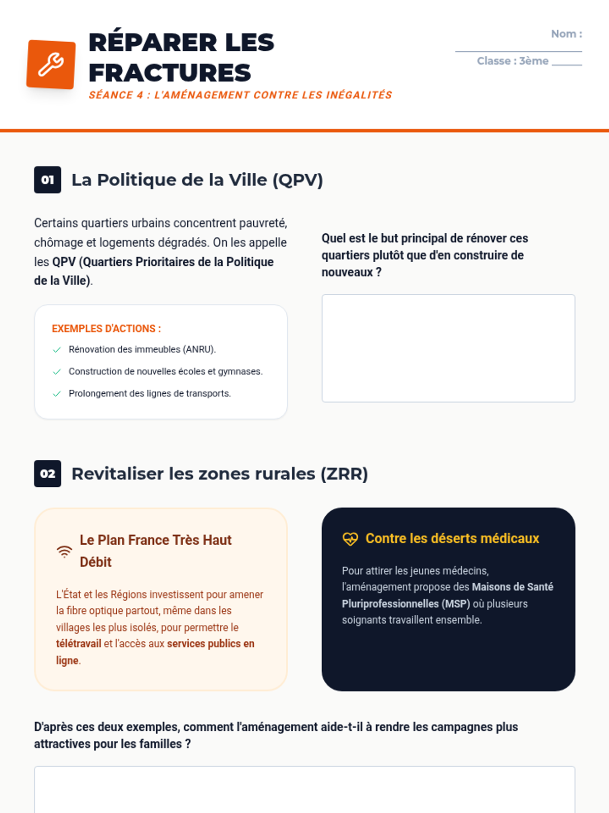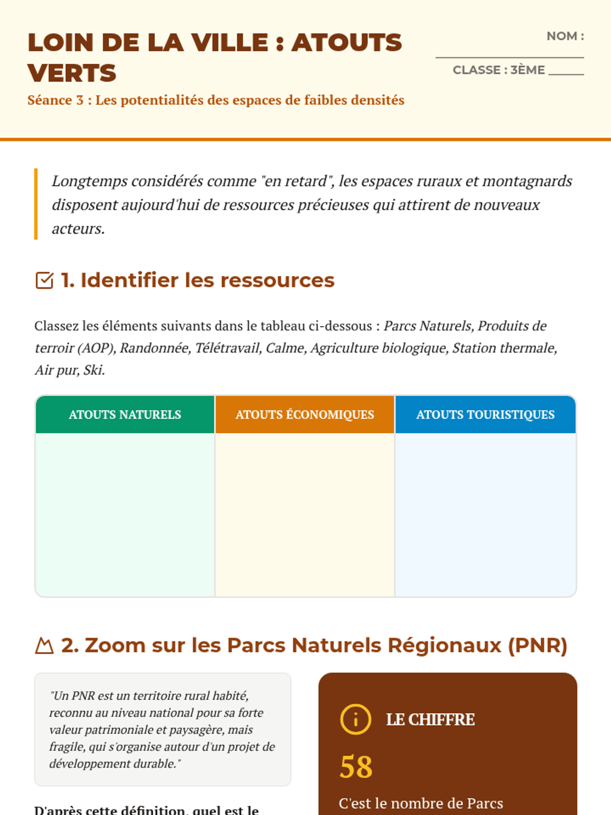 Une séquence complète de 5 séances pour explorer les espaces de faibles densités en France, leurs dynamiques, leurs contraintes et leurs atouts, se terminant par une réalisation cartographique de synthèse.
