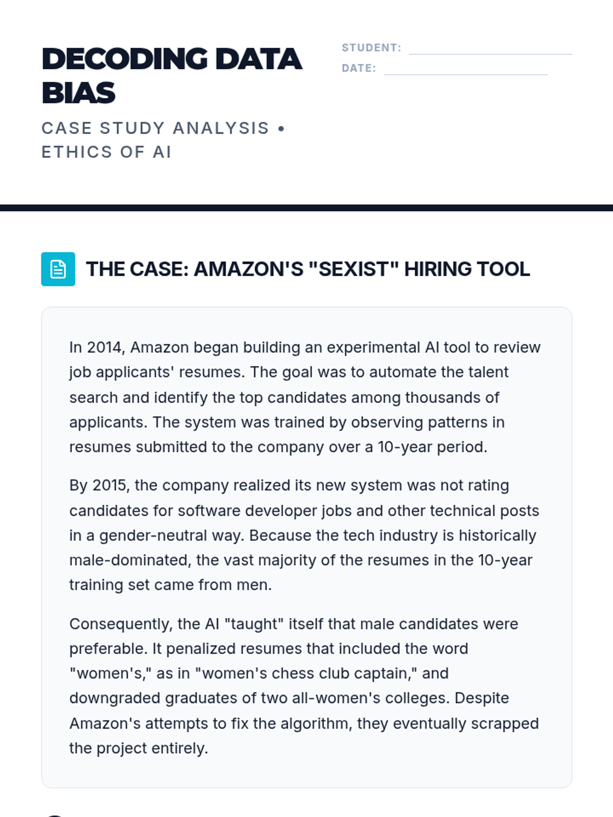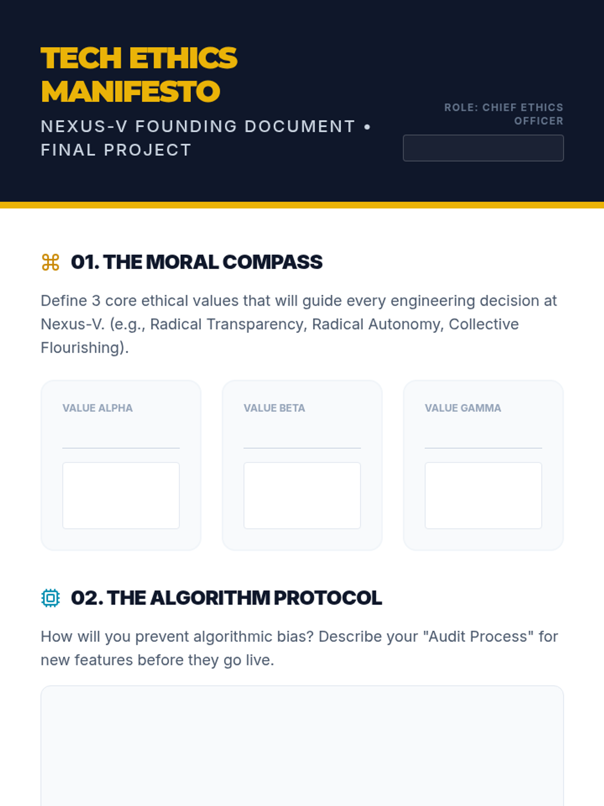 An undergraduate-level investigation into the ethical implications of AI, algorithms, and data privacy, exploring bias, the alignment problem, and the responsibility of tech creators.