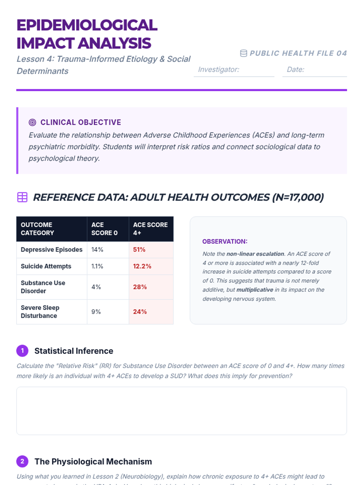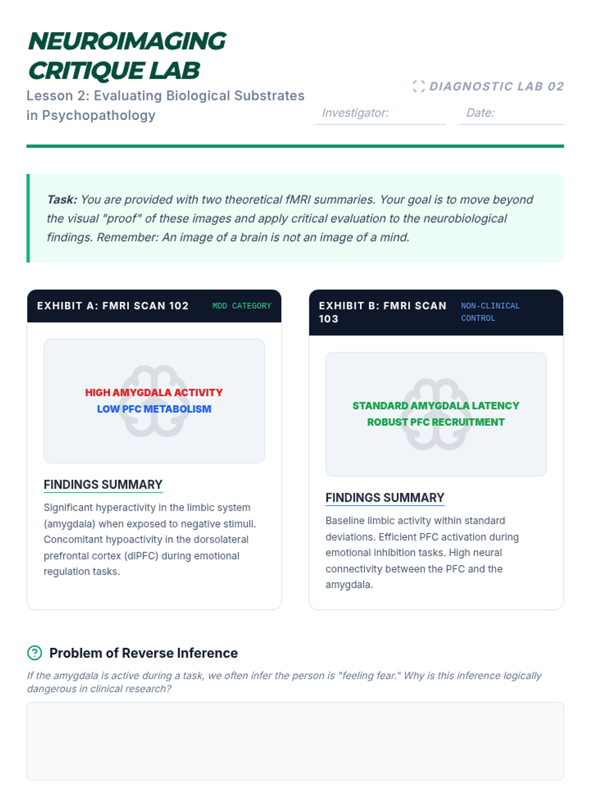 An undergraduate-level clinical psychology sequence exploring the biopsychosocial etiology of mental disorders. Students move beyond linear models to analyze the complex interplay of biology, environment, and psychology, culminating in a professional case formulation project.