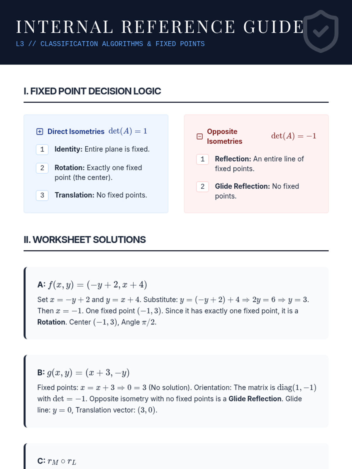 A rigorous exploration of planar geometry through the lens of group theory, covering isometries, the Three Reflections Theorem, and the classification of finite and infinite symmetry groups.