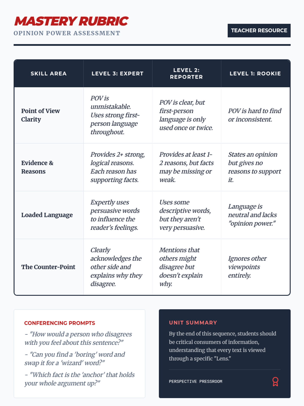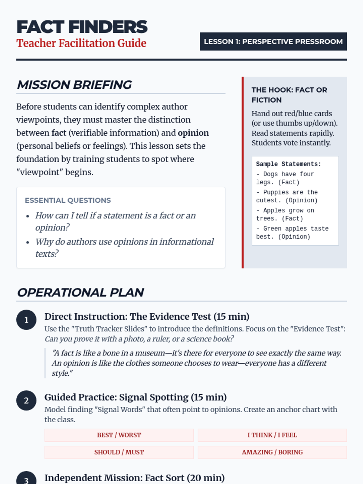Students explore how an author's purpose and personal stance influence how facts are presented in nonfiction. They analyze articles, ads, and opinion pieces to identify point of view and distinguish it from their own.