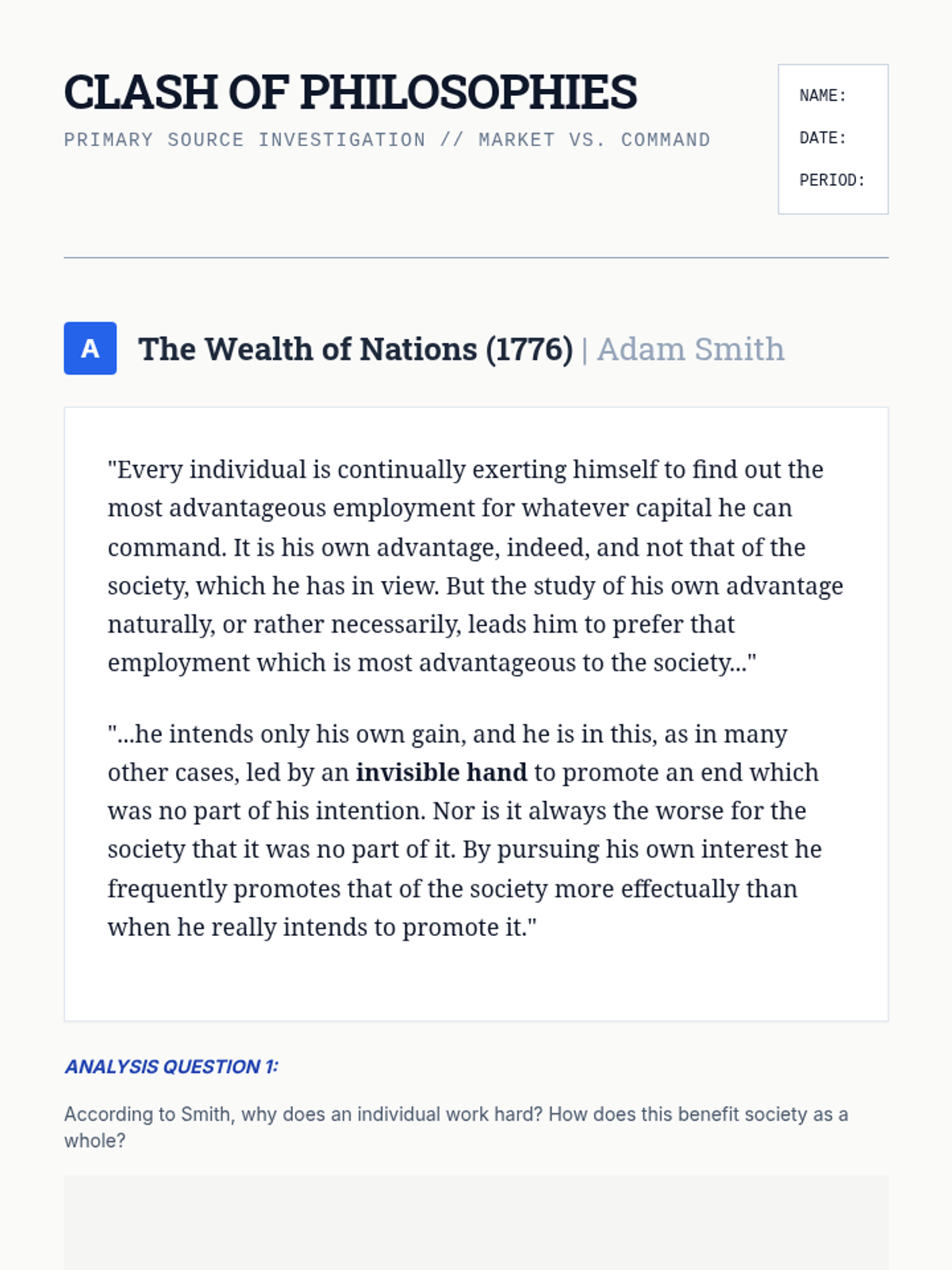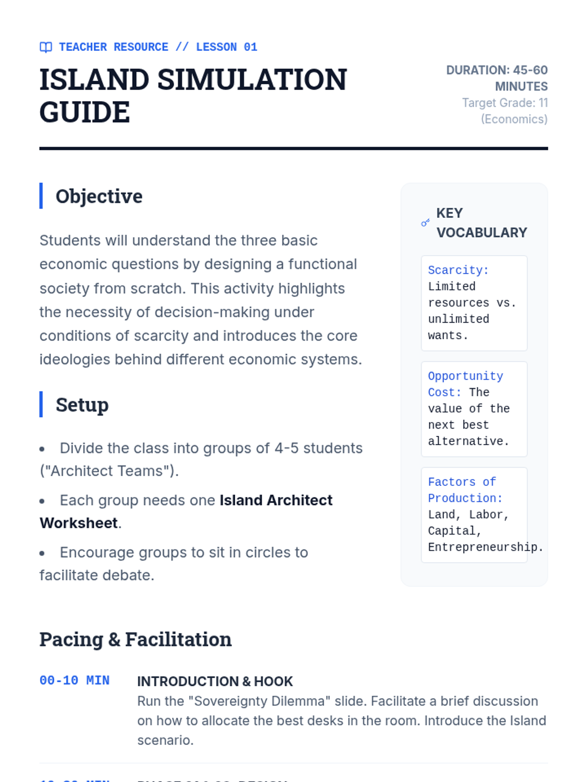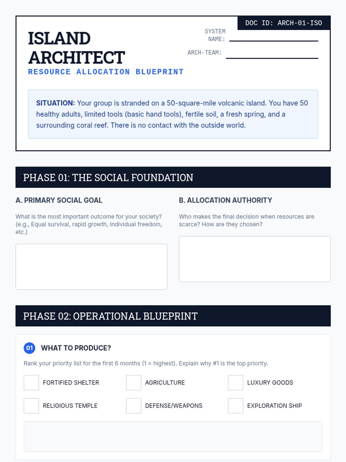 This sequence explores how societies organize the production and distribution of resources. Students move from abstract concepts like the three basic economic questions to evaluating the efficiency, equity, and stability of command, market, and mixed economies, concluding with an analysis of how institutions drive economic development.