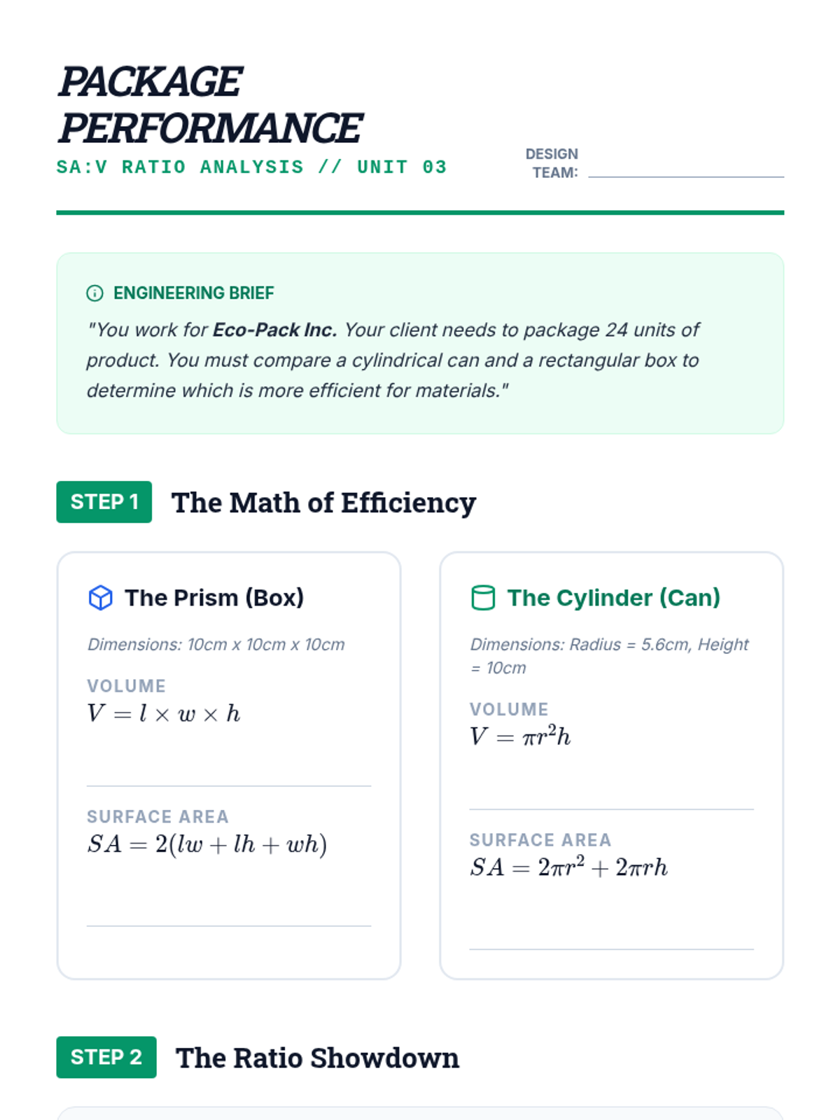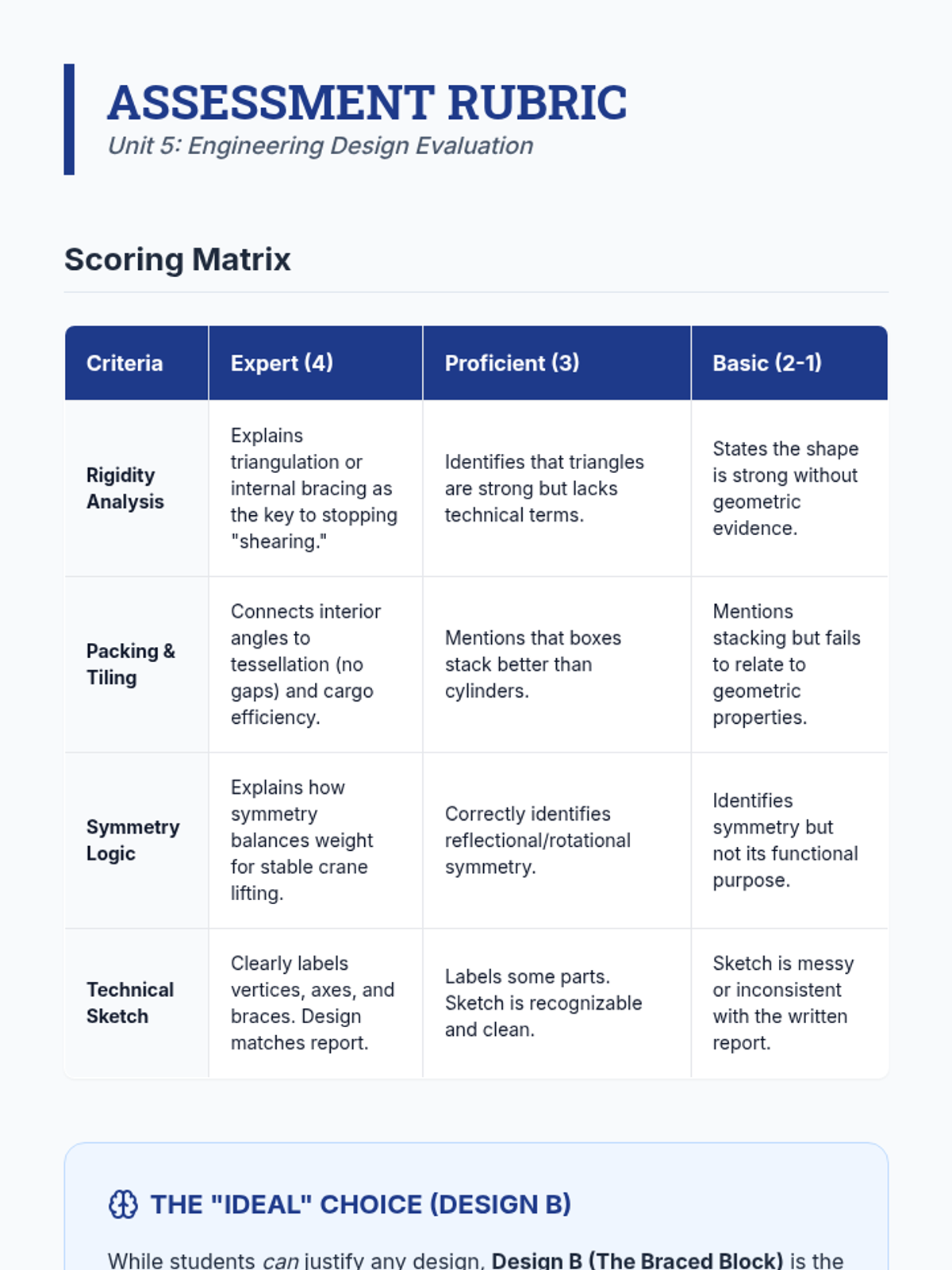 This sequence bridges geometry and physics, investigating the structural properties of 2D and 3D shapes. Students analyze rigidity, tessellation, and surface area-to-volume ratios to understand how geometric attributes influence physical performance in engineering and nature.