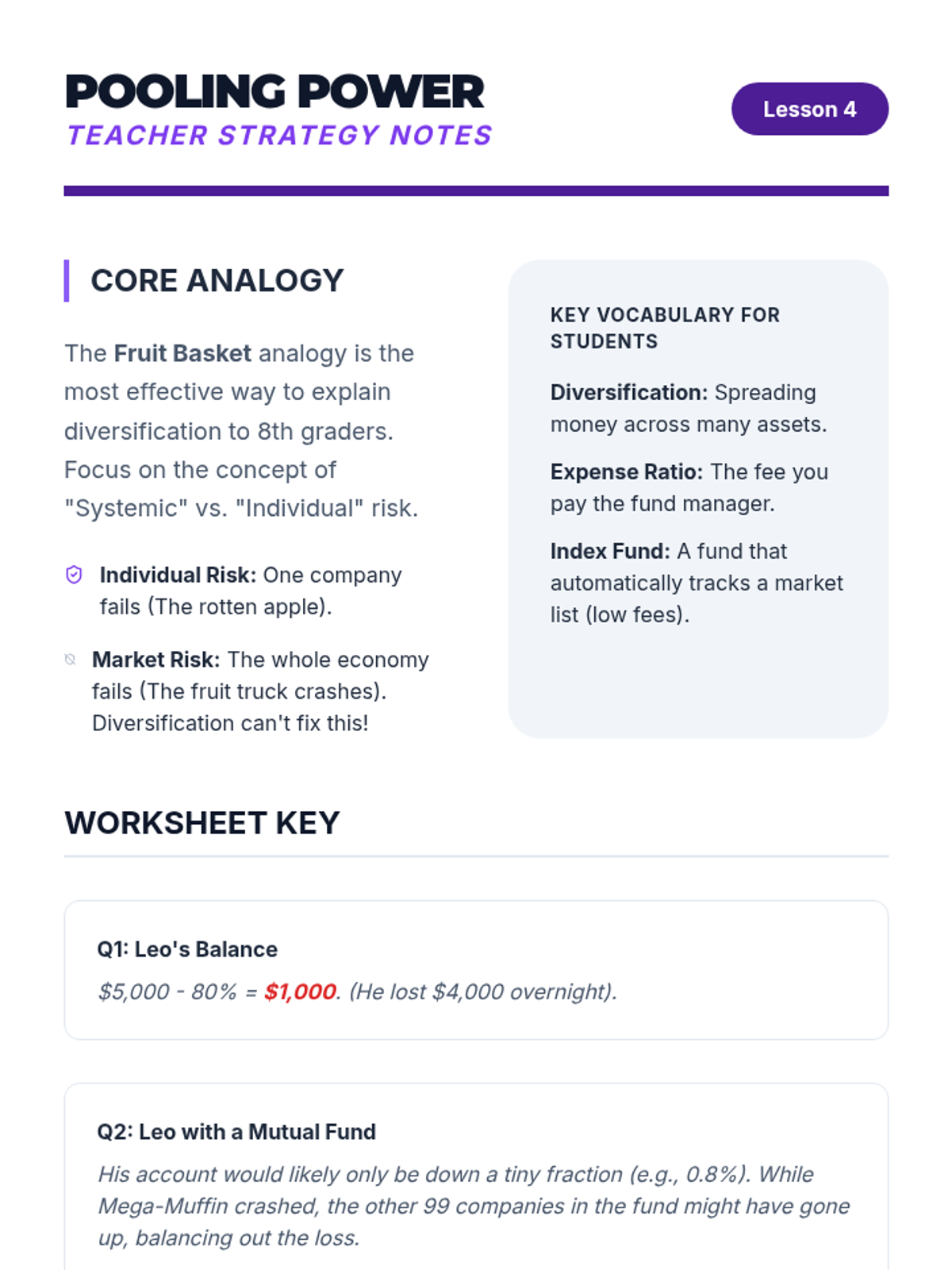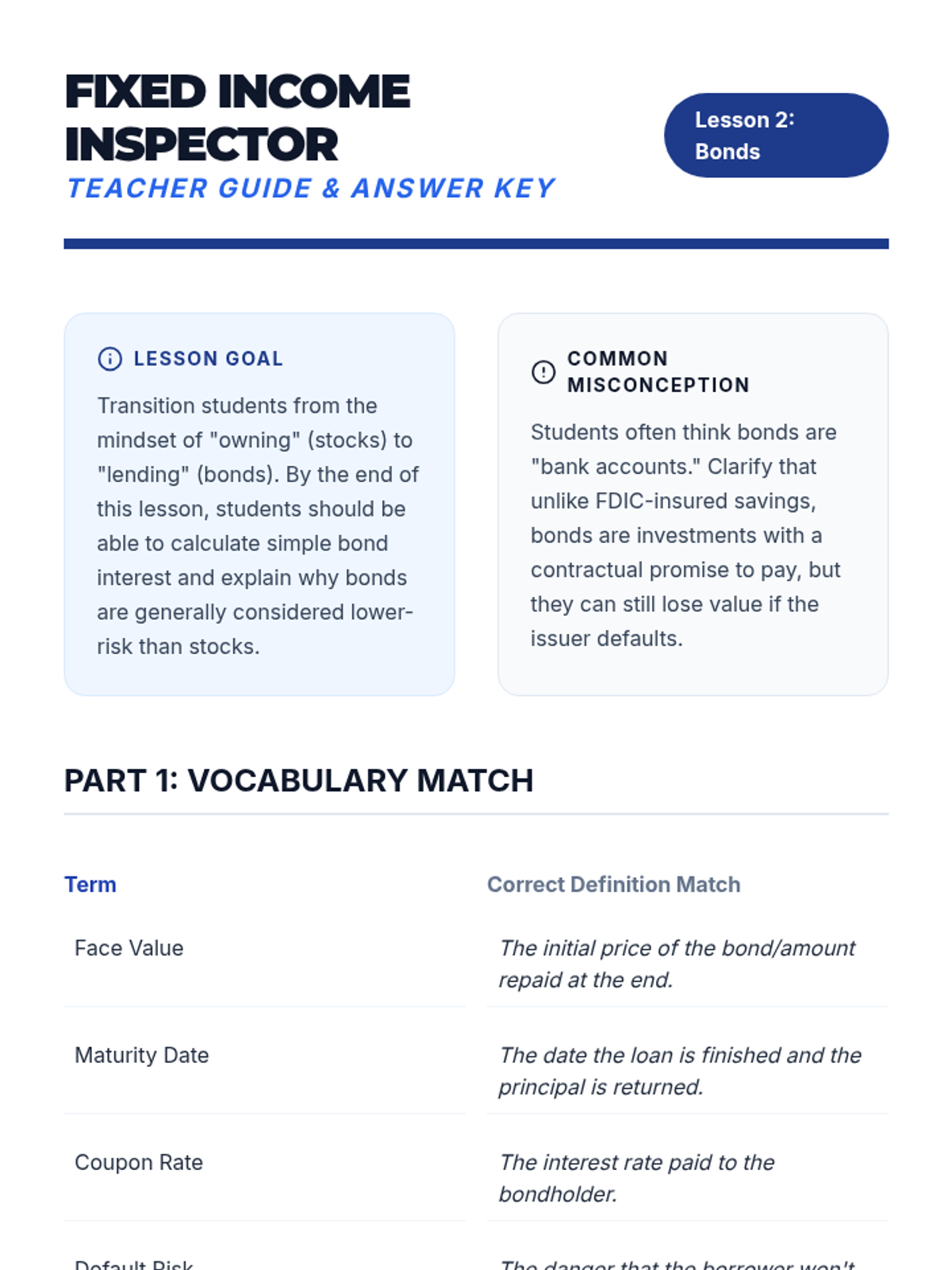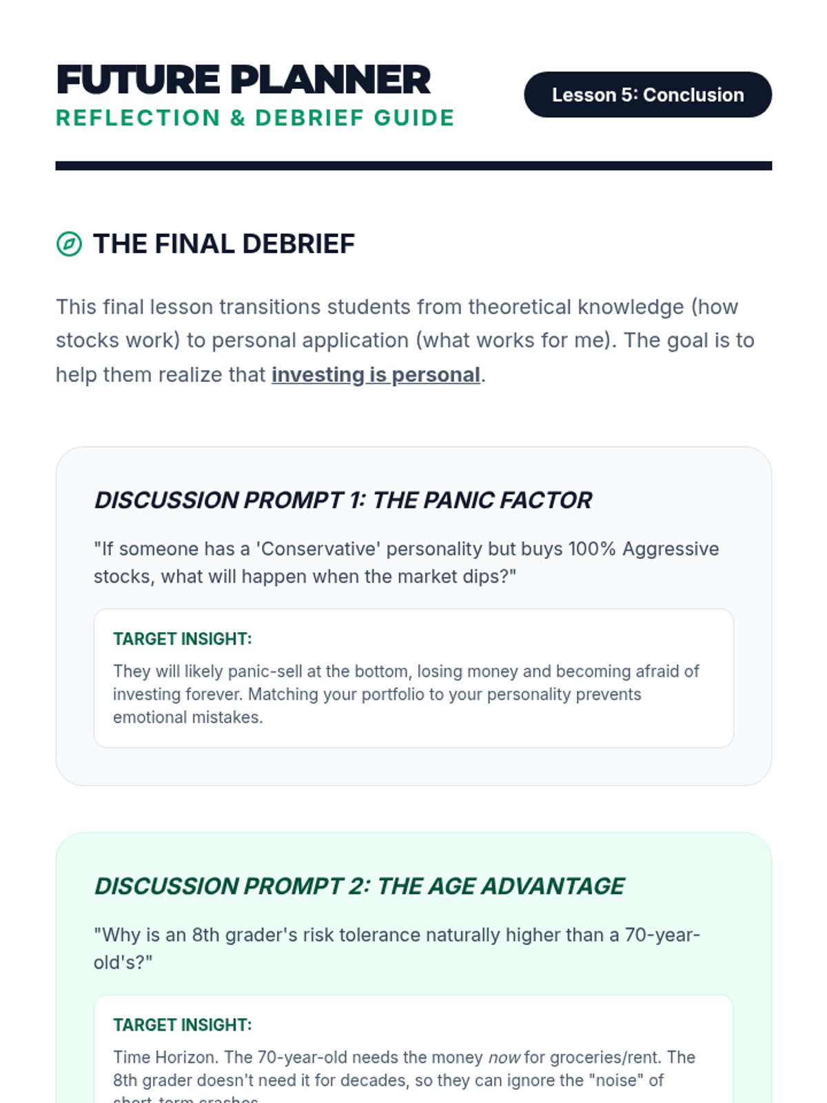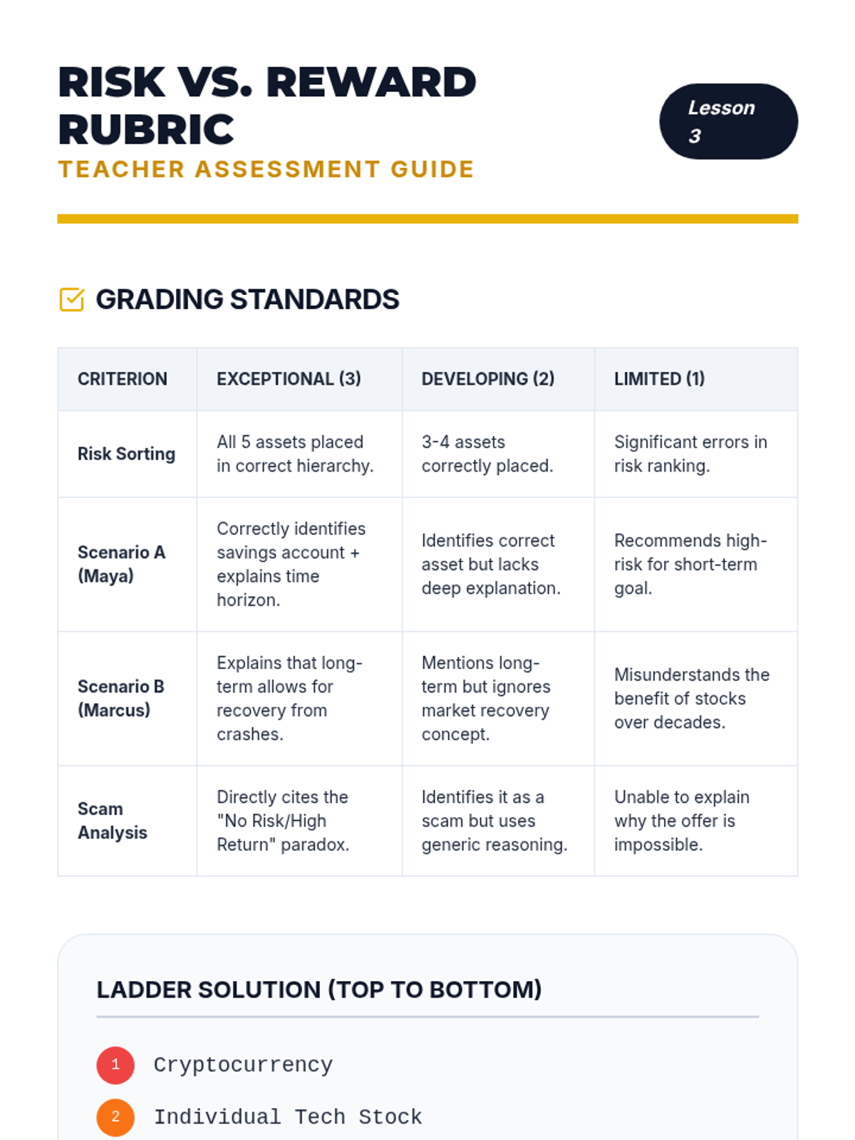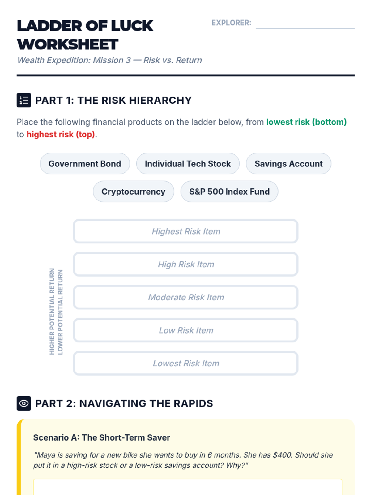 This sequence introduces 8th-grade students to the fundamentals of investing, covering stocks, bonds, and mutual funds while emphasizing the critical relationship between risk and return. Students will engage in simulations and self-assessments to understand how to build and manage a personal investment strategy.