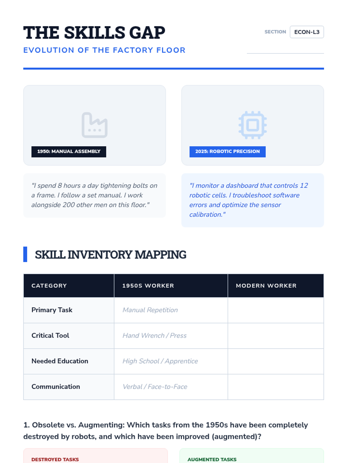 This sequence explores the relationship between labor, technology, and bargaining power. Students analyze microeconomic hiring theories, the historical role of unions, and the transformative impact of automation and AI on the future workforce.