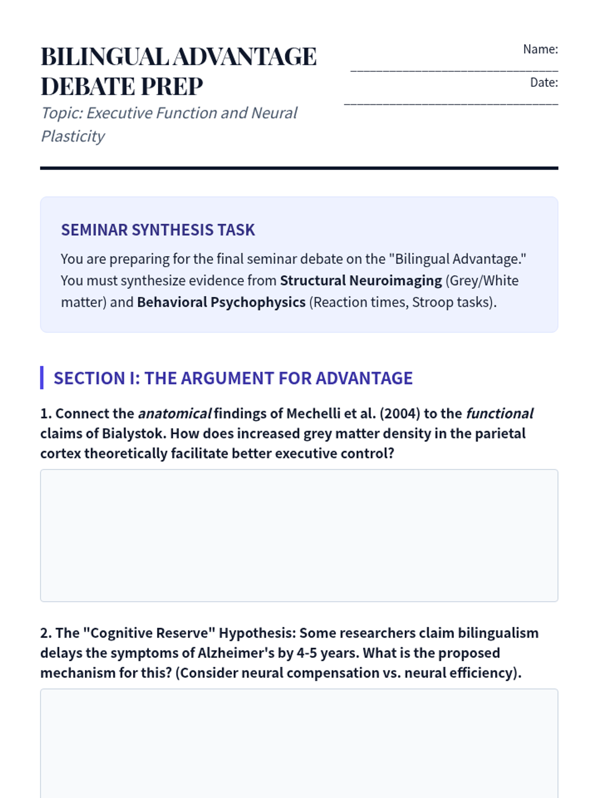 A comprehensive unit focused on the psychological debate of Nature vs. Nurture, culminating in a major literature review research paper. Students will explore theoretical frameworks and synthesize existing research.