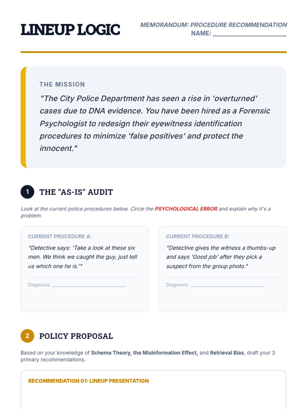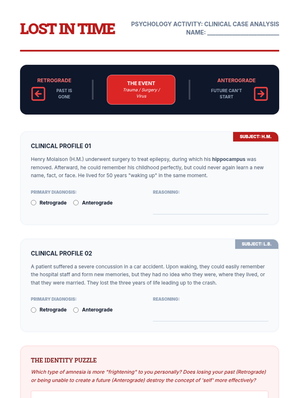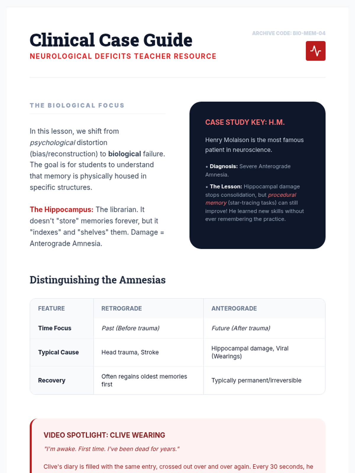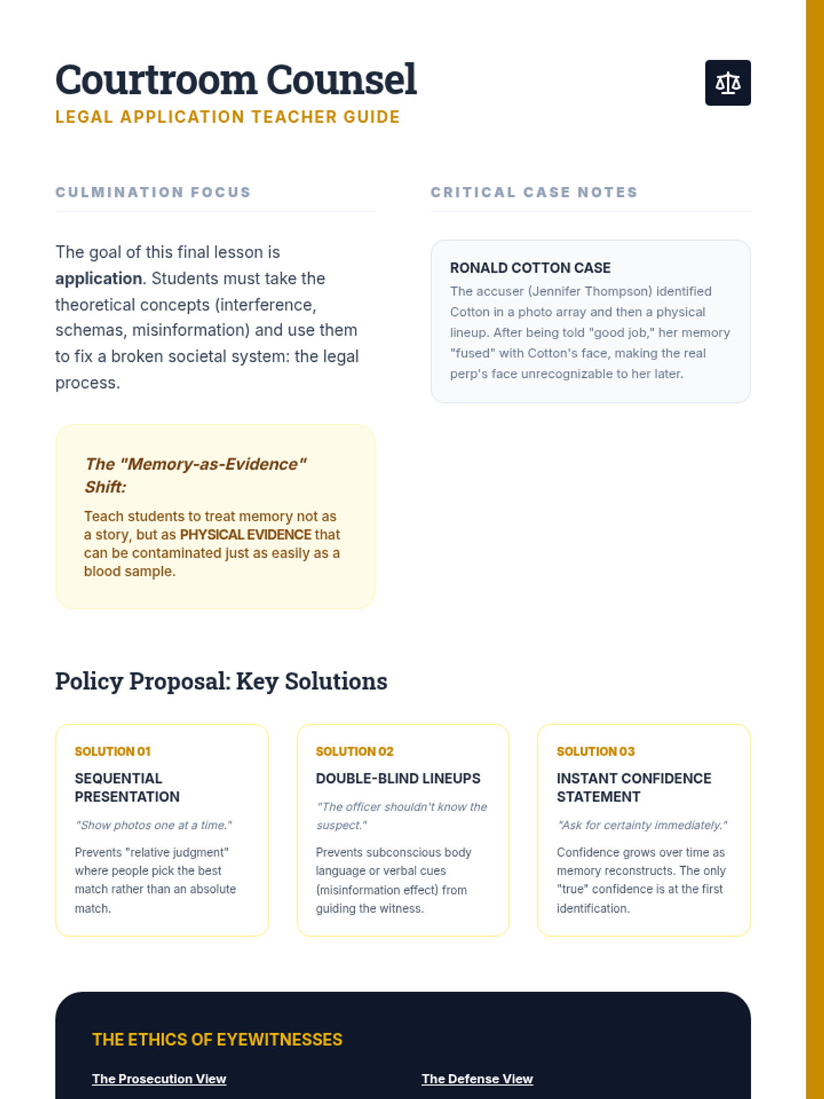 A 12th-grade psychology unit exploring the reconstructive nature of memory, focusing on theories of forgetting, memory distortion, the misinformation effect, and the impact of amnesia on the legal system.