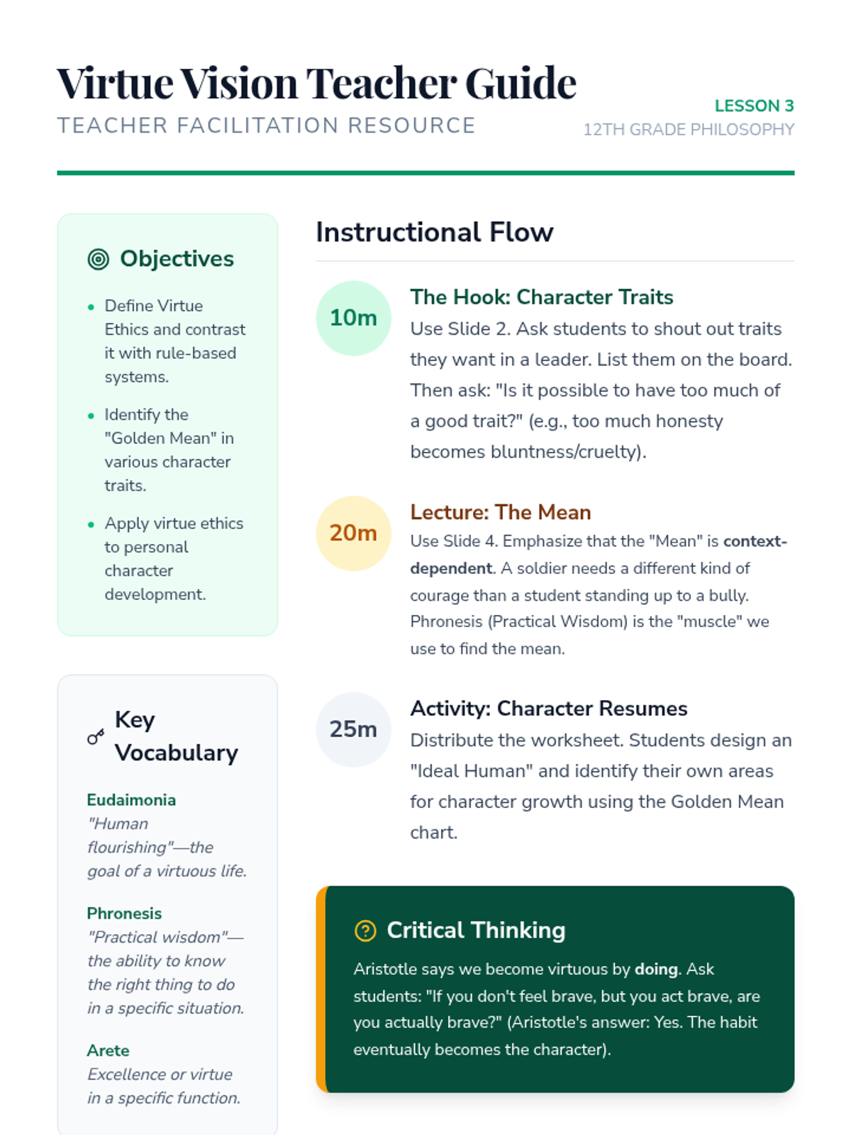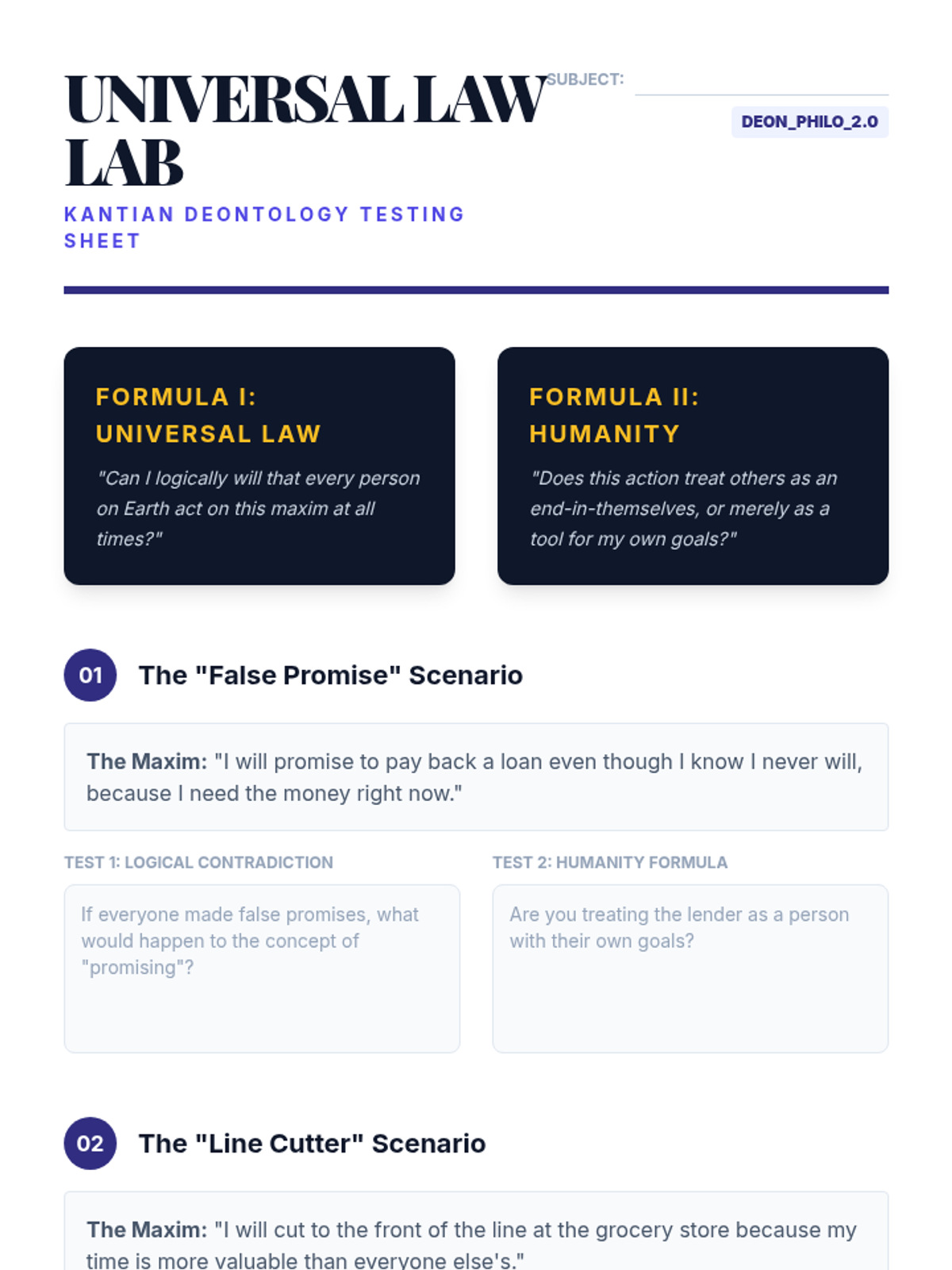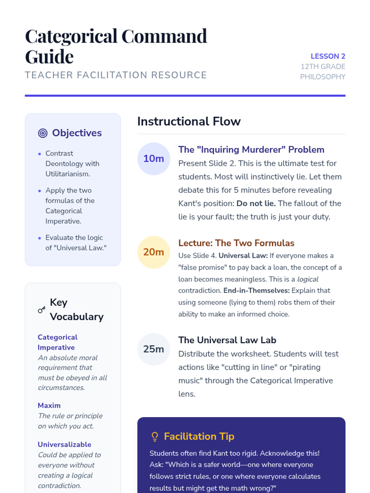 A comprehensive 12th-grade philosophy sequence that explores Utilitarianism, Deontology, and Virtue Ethics through simulations and contemporary dilemmas. Students will analyze how different ethical frameworks impact decision-making in personal, legal, and technological contexts.