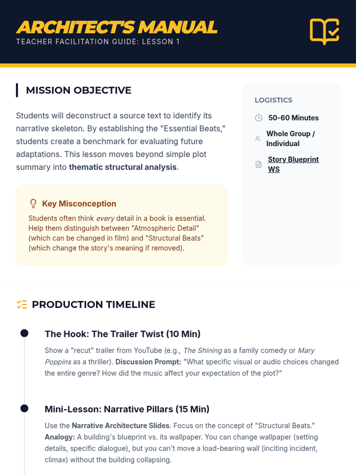An 8th-grade ELA unit exploring narrative structure and thematic shifts when stories are adapted across mediums like film, audio, and text. Students analyze the 'language' of different mediums and culminate in a creative adaptation pitch project.