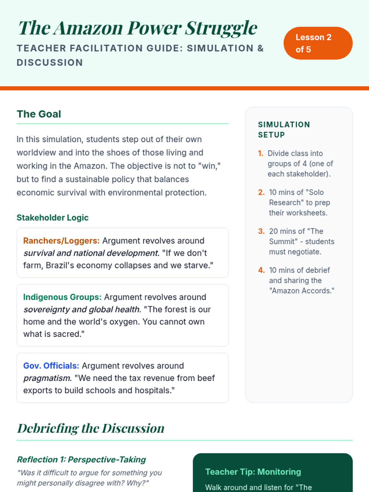 Students explore the economic and ethical complexities of resource management in the Americas, balancing economic growth with environmental preservation through case studies of deforestation, mining, and sustainable tourism.